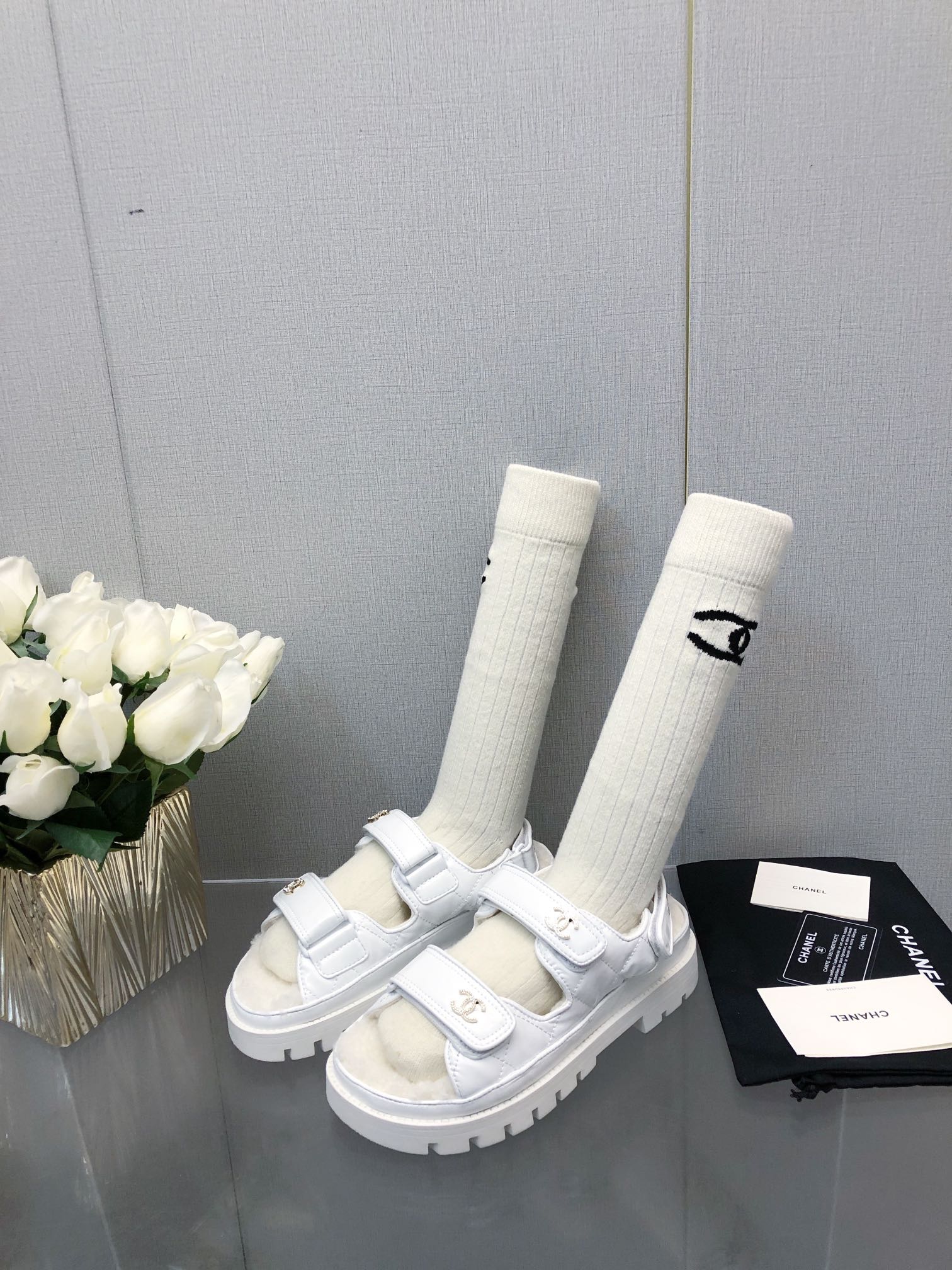 CC 25 Flip Flop Sandals White Calfskin Espadrilles
