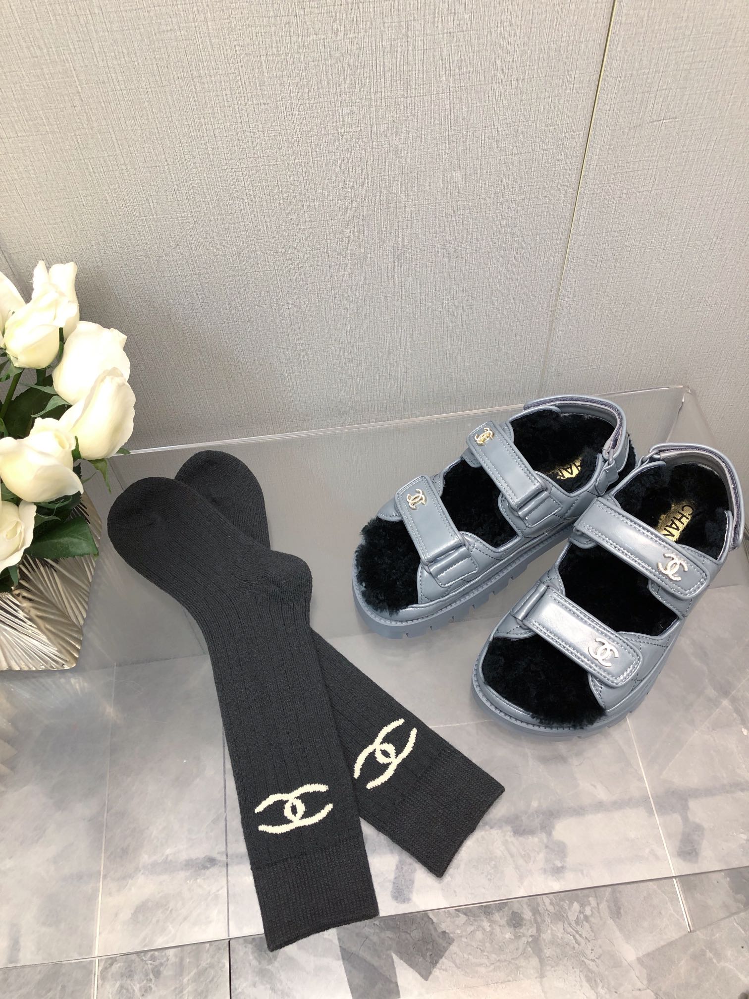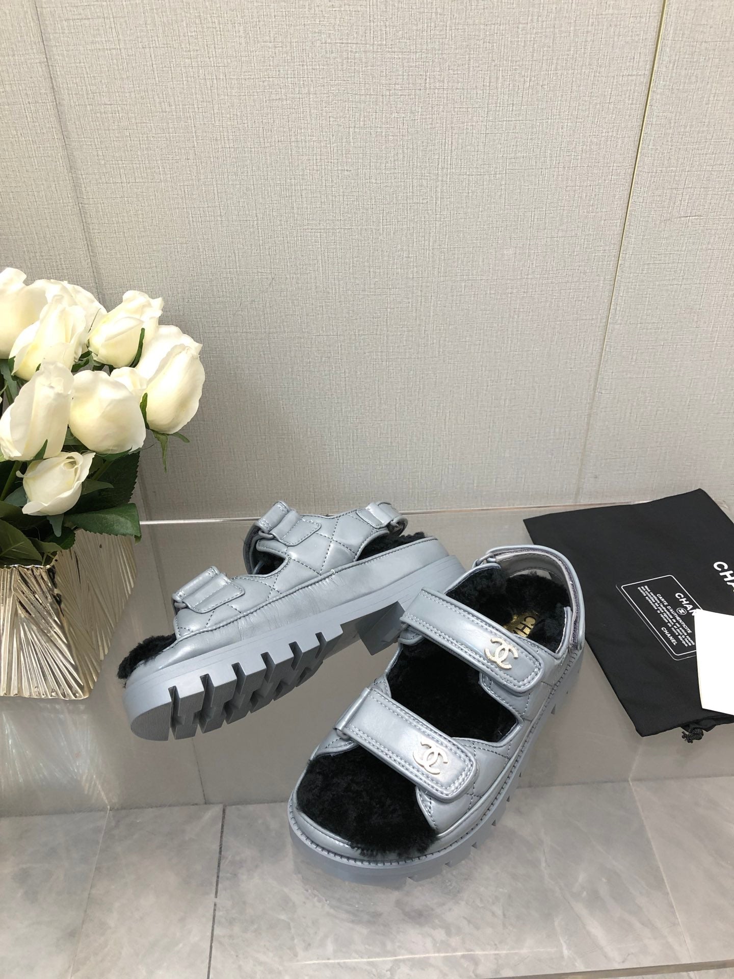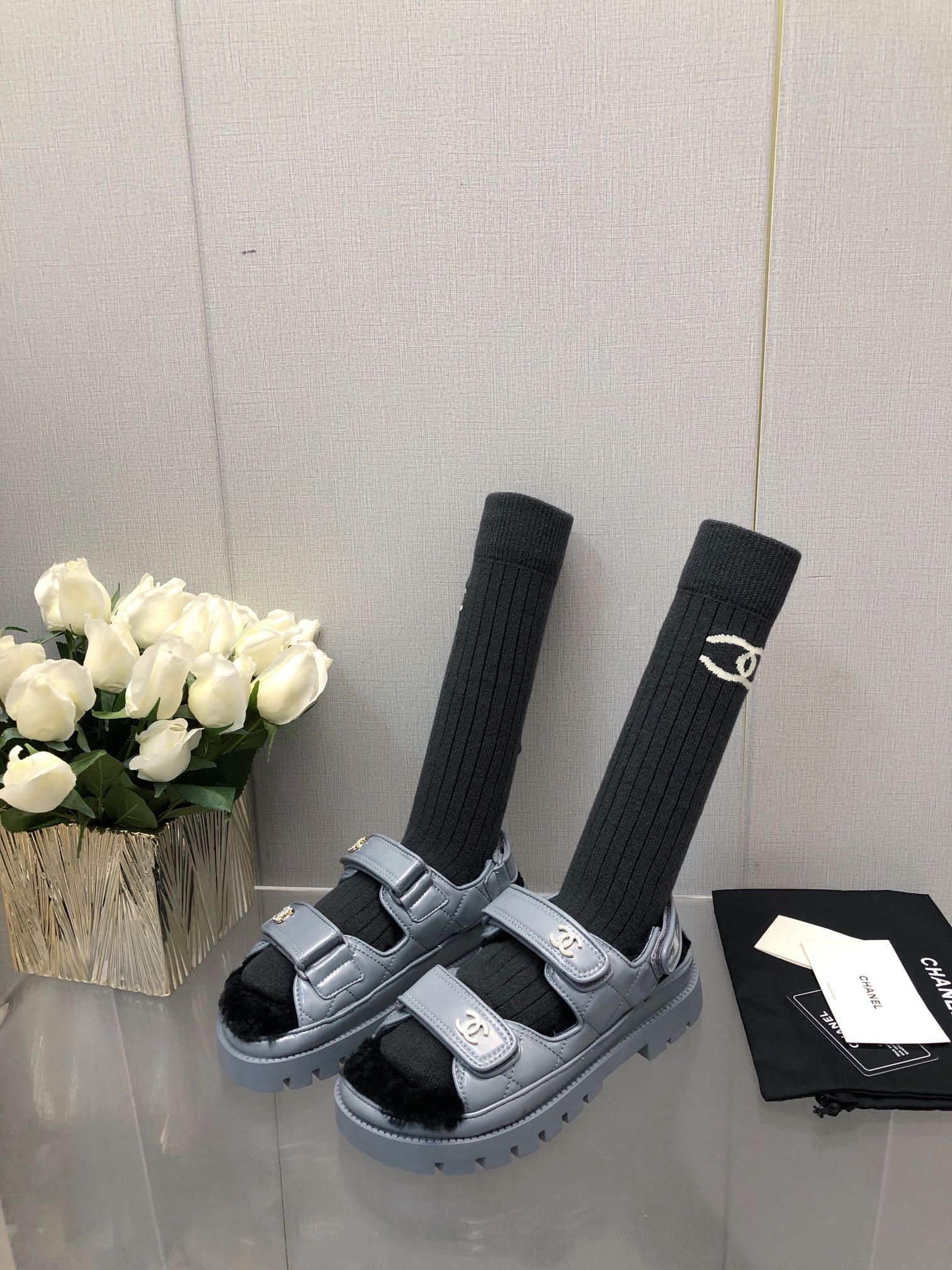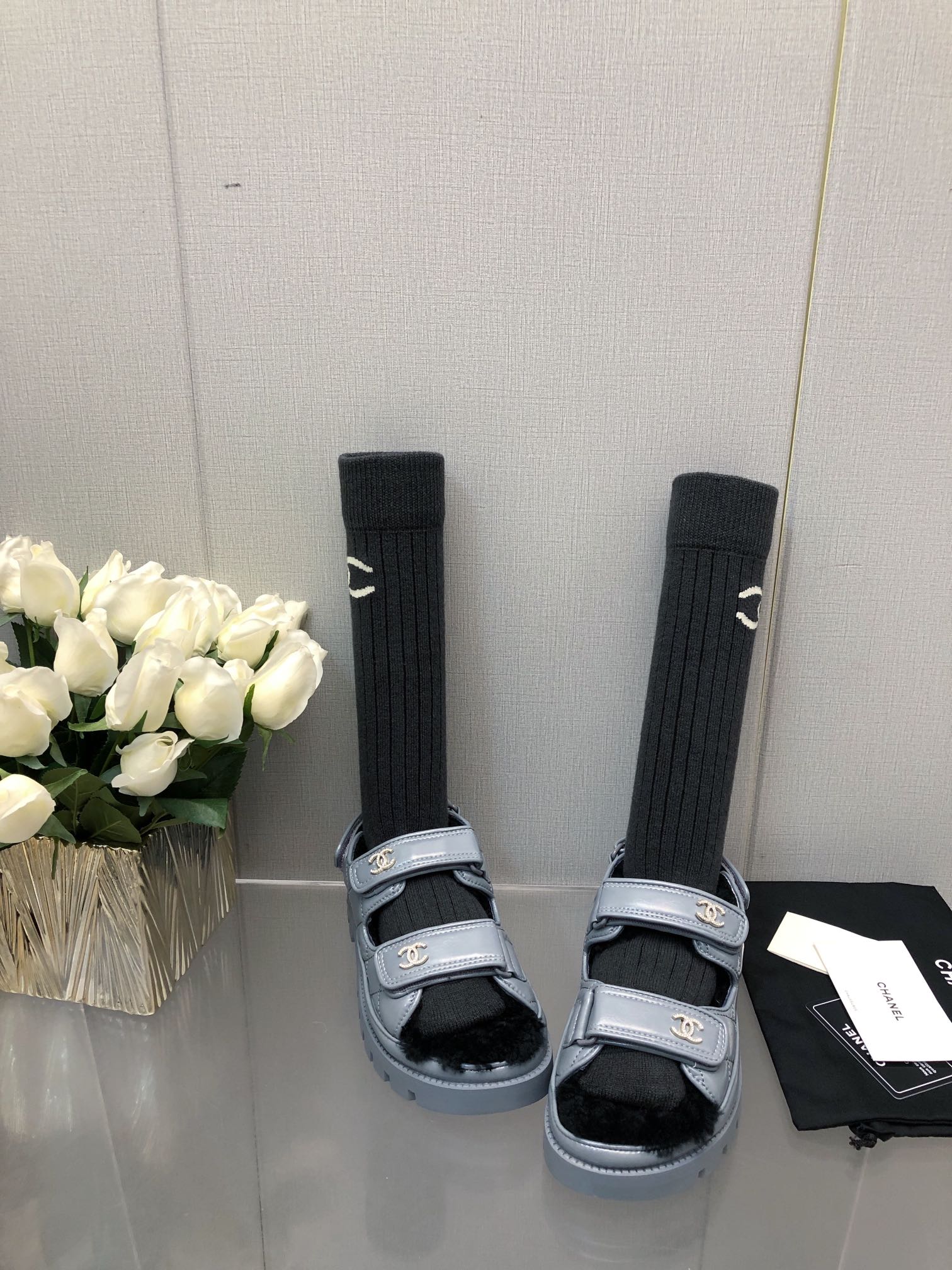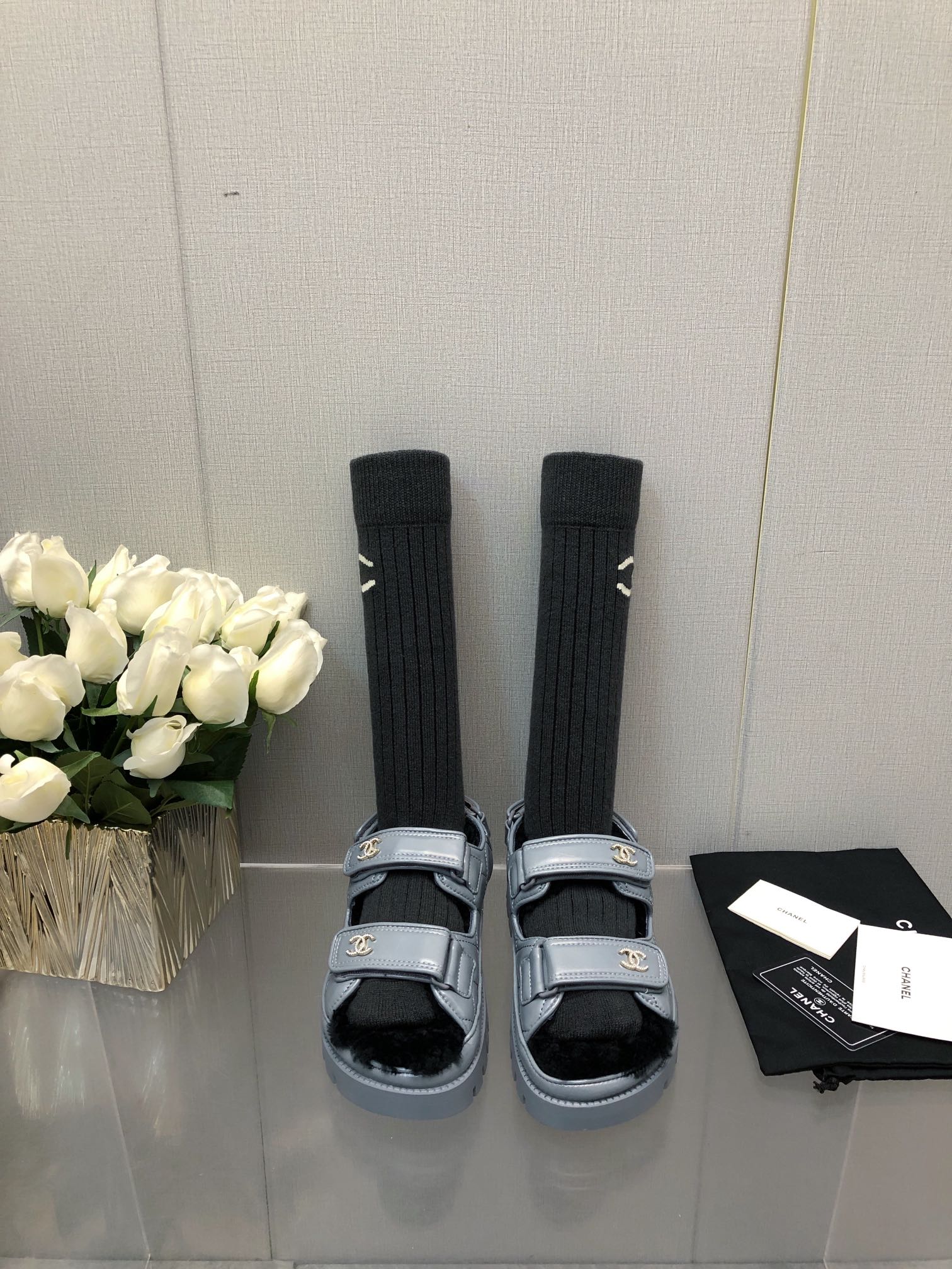 CC 25 Flip Flop Sandals Black Suede Calfskin Espadrilles