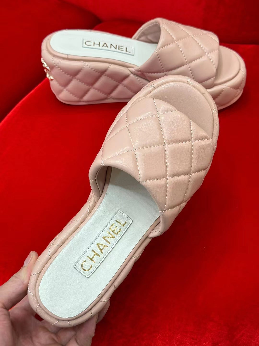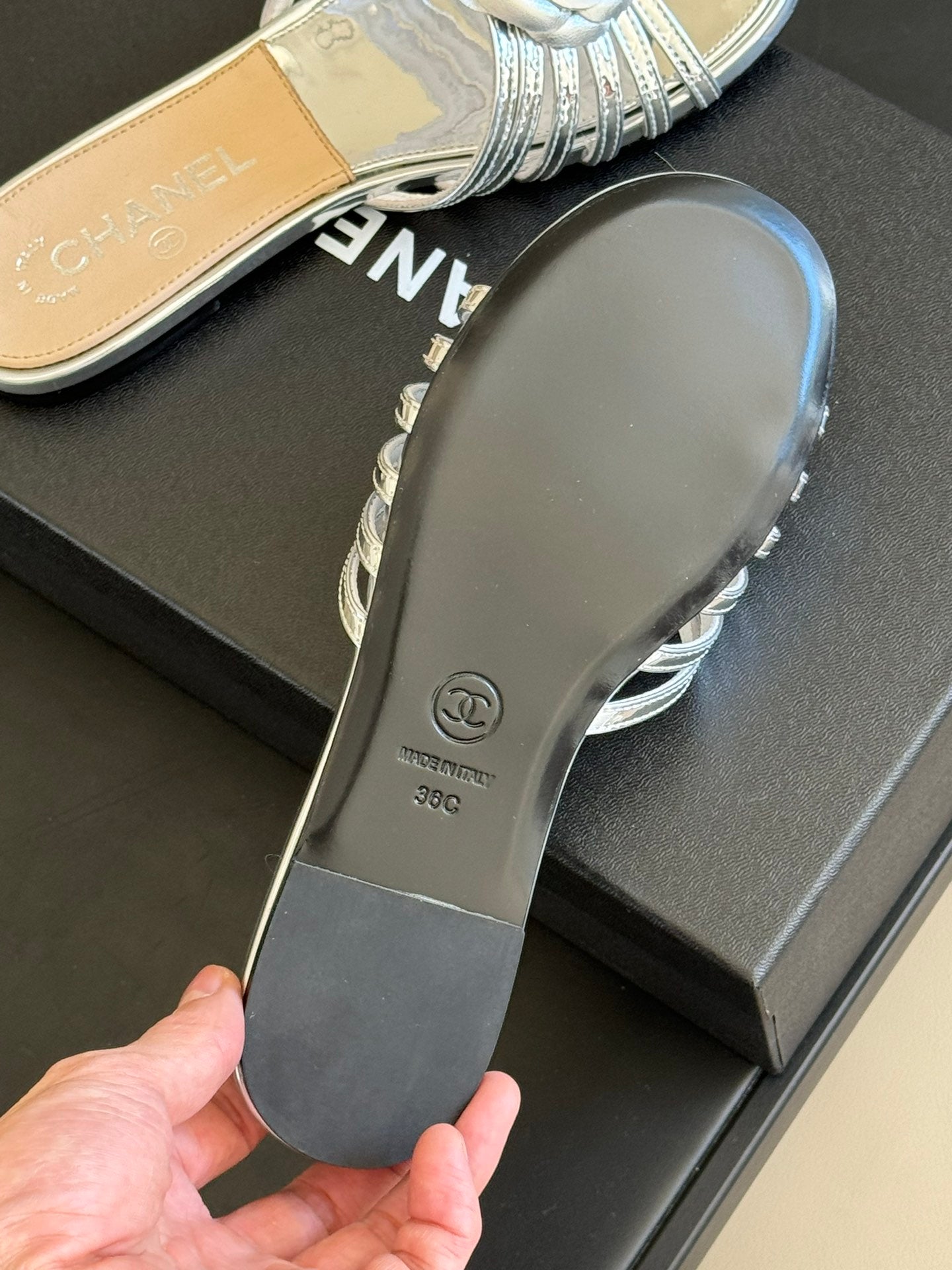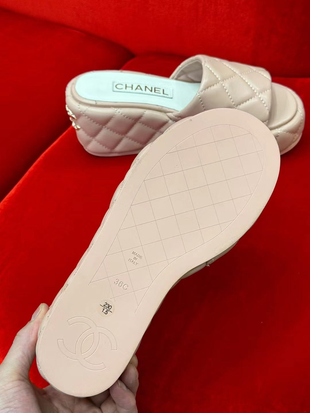 CC 25 Flip Flop Sandals Beige Calfskin Espadrilles