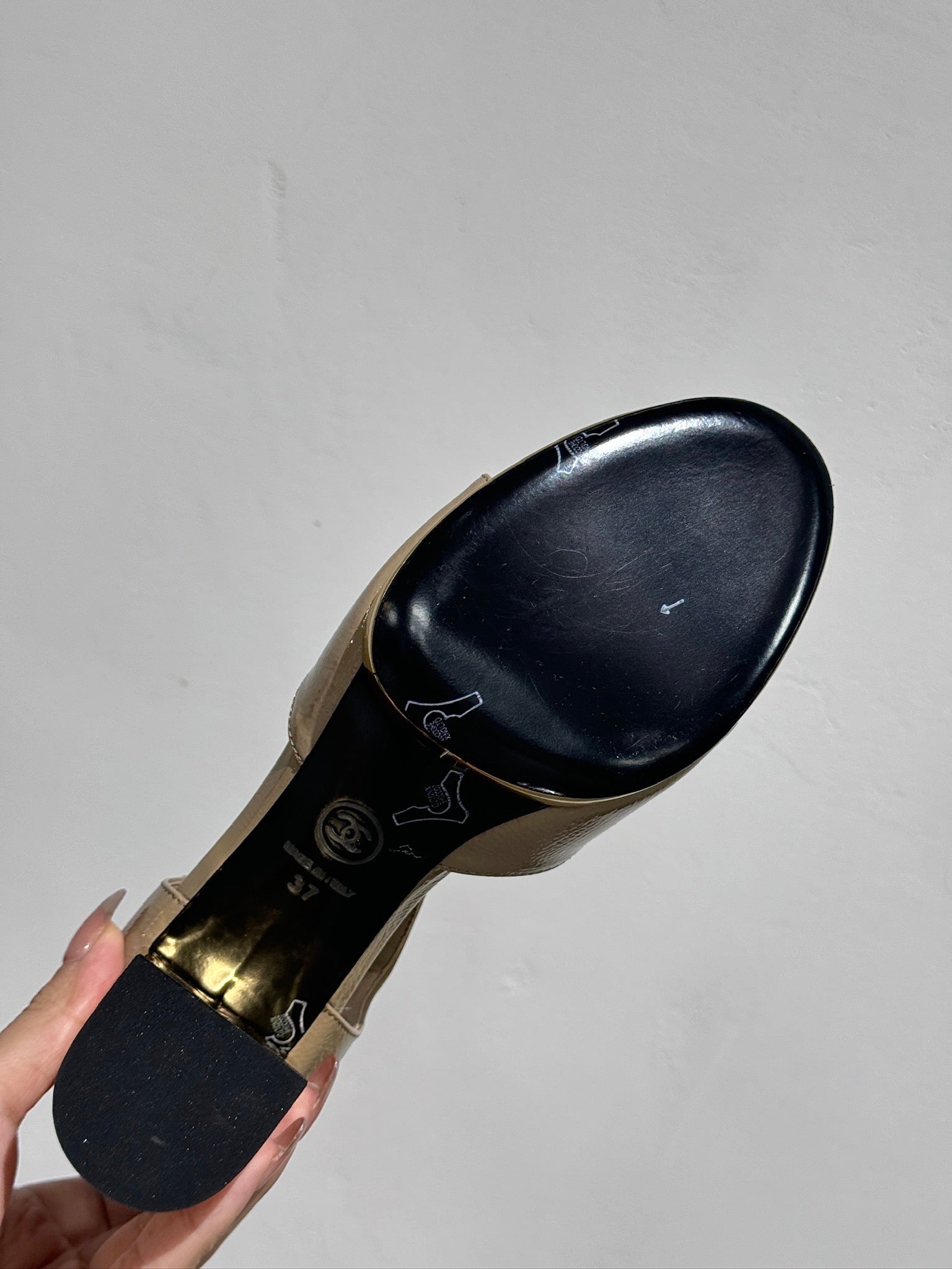 CC 25 Mule Dark Brown Calfskin Gold Double C