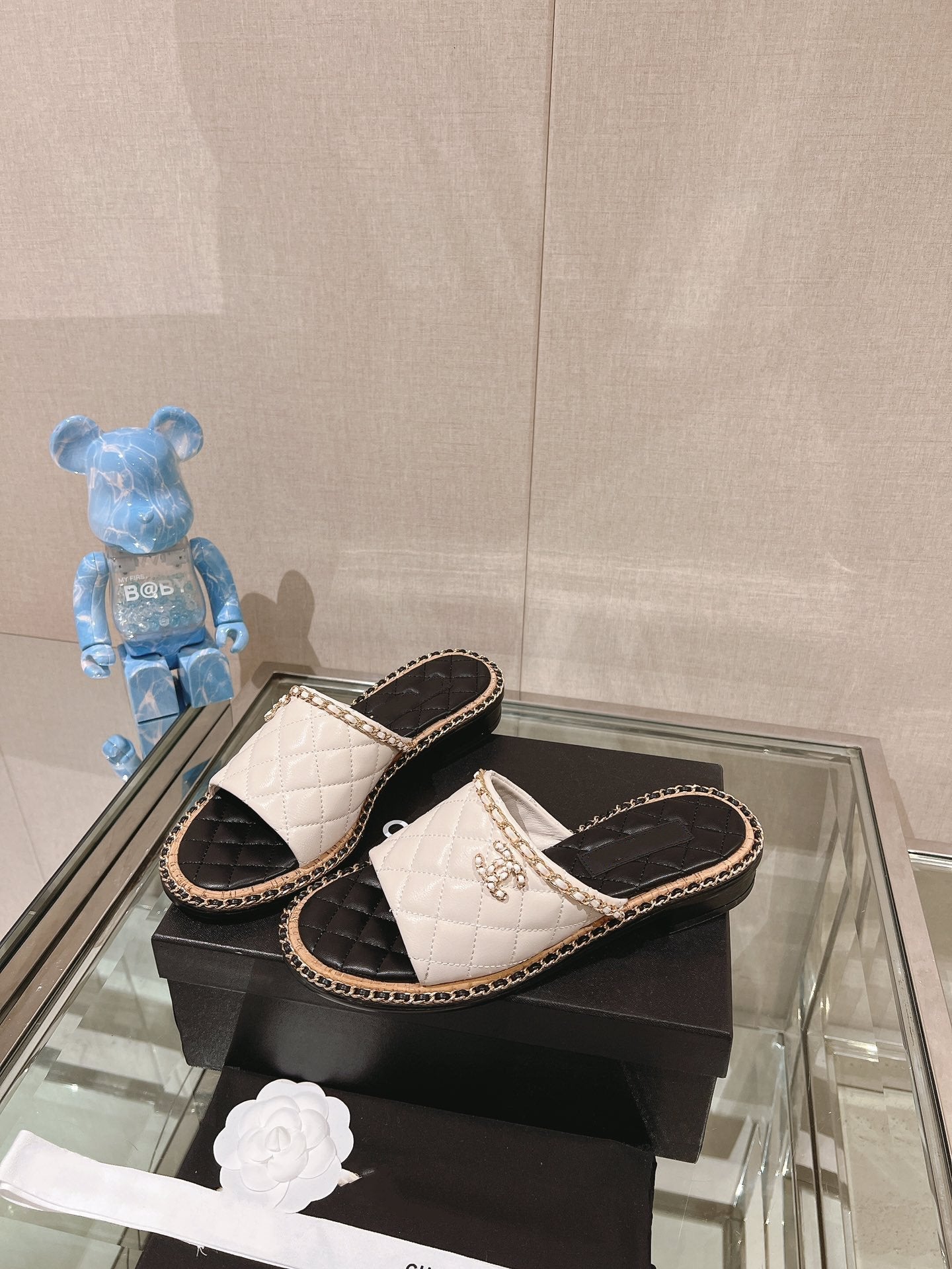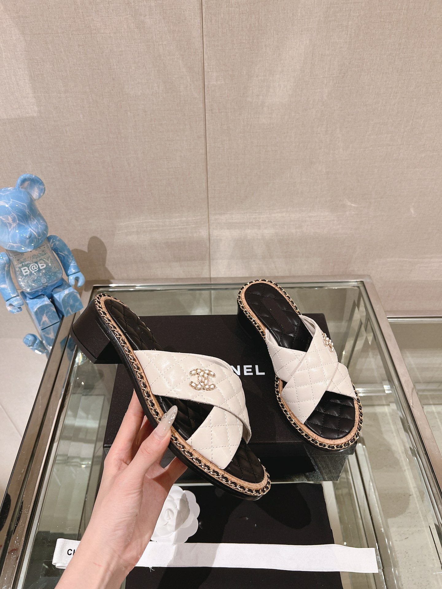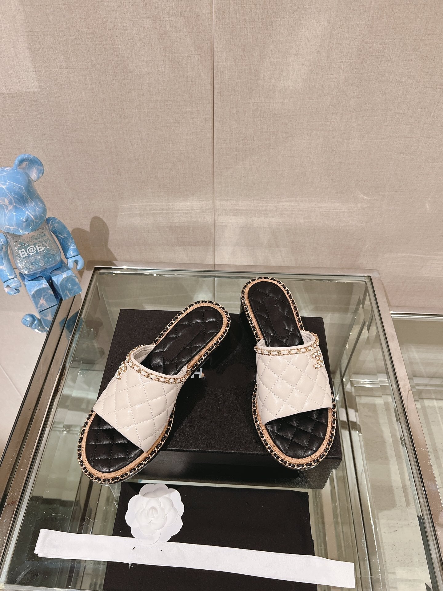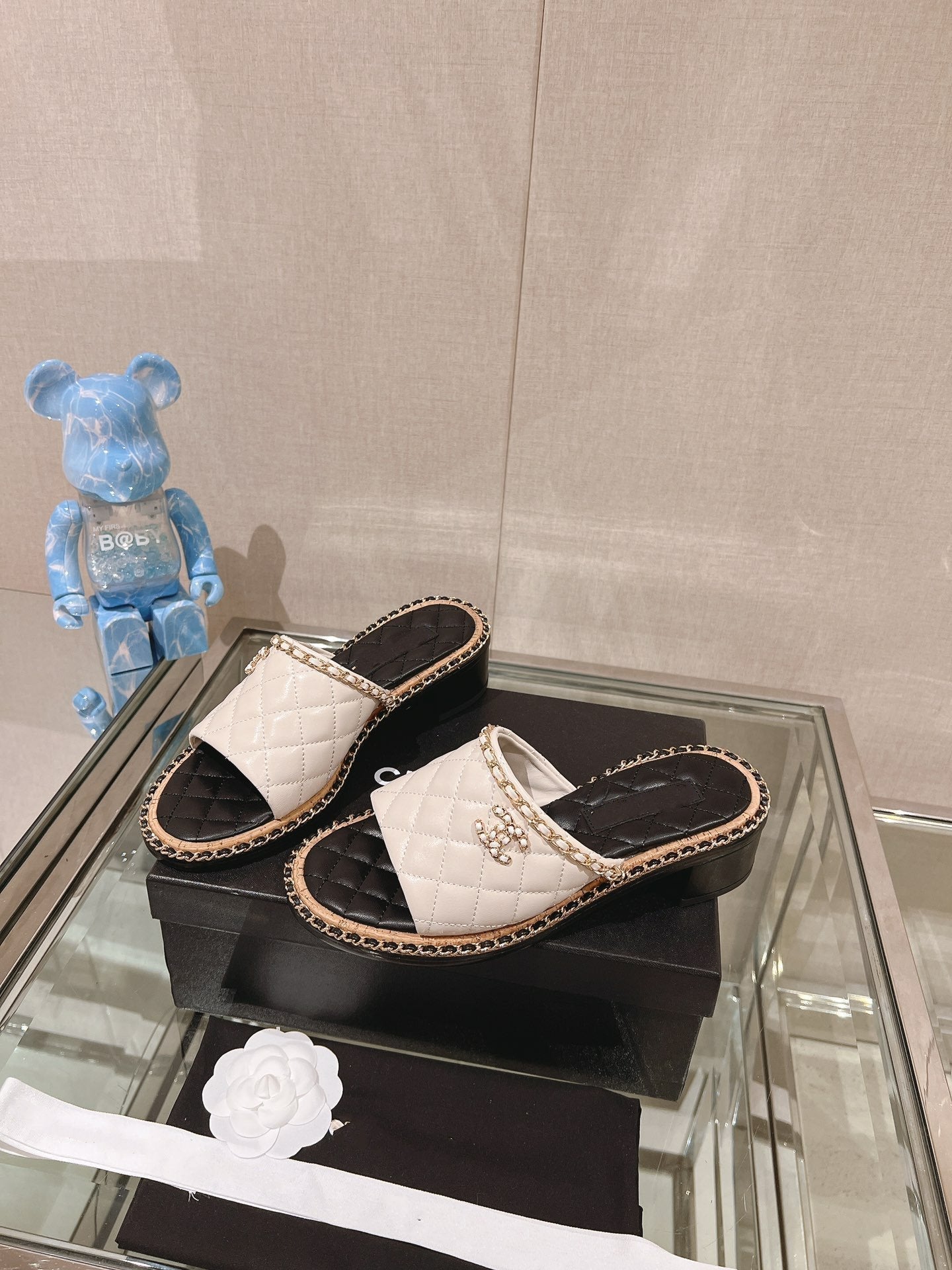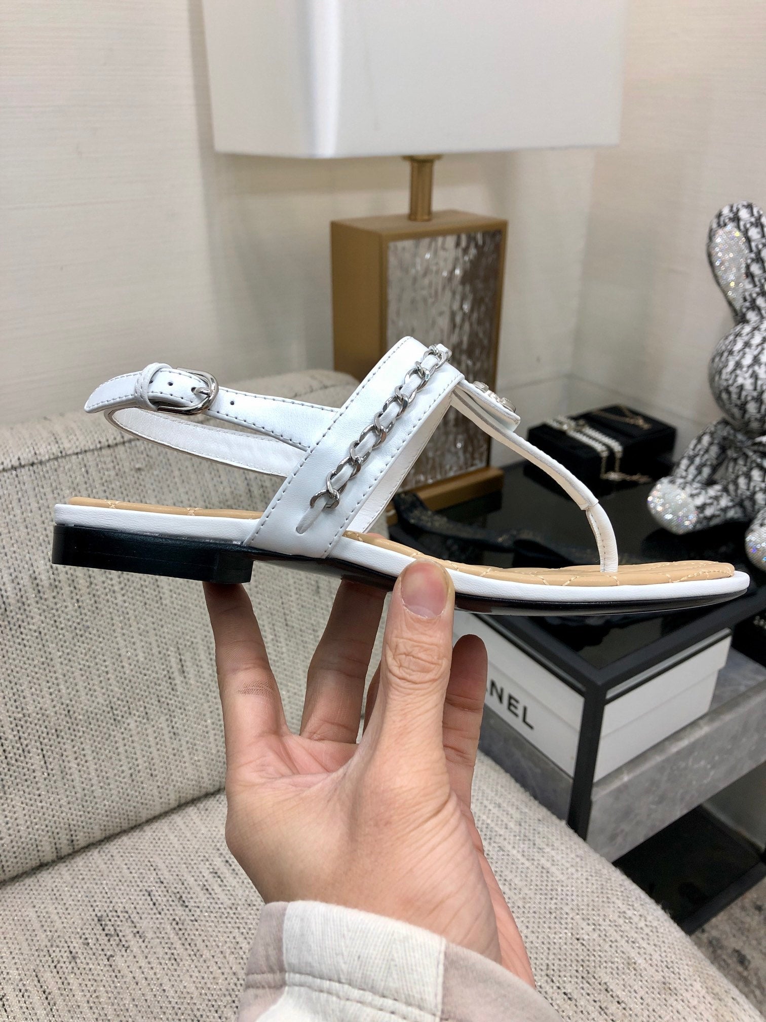 cc sandal white beige lambskin mop