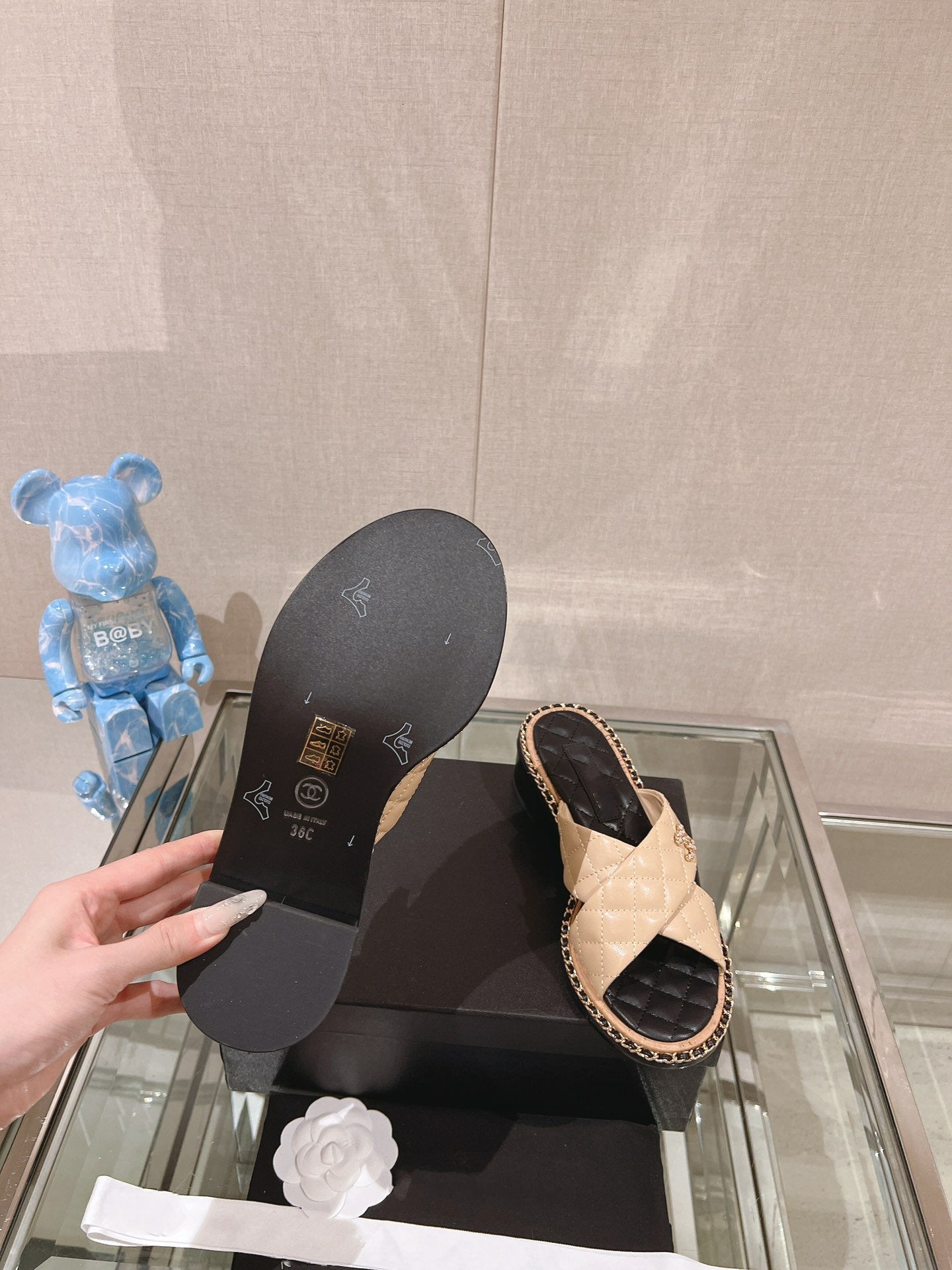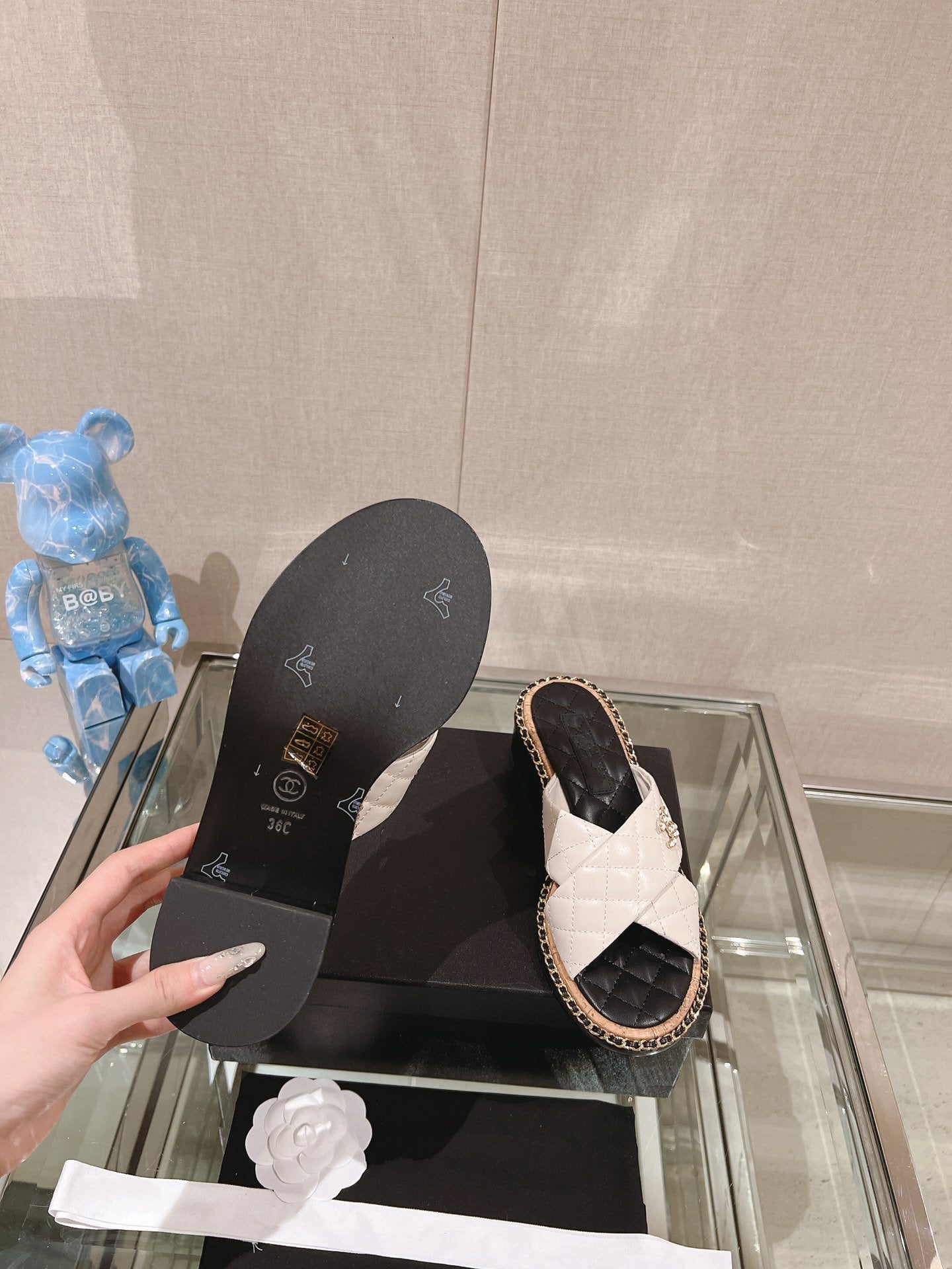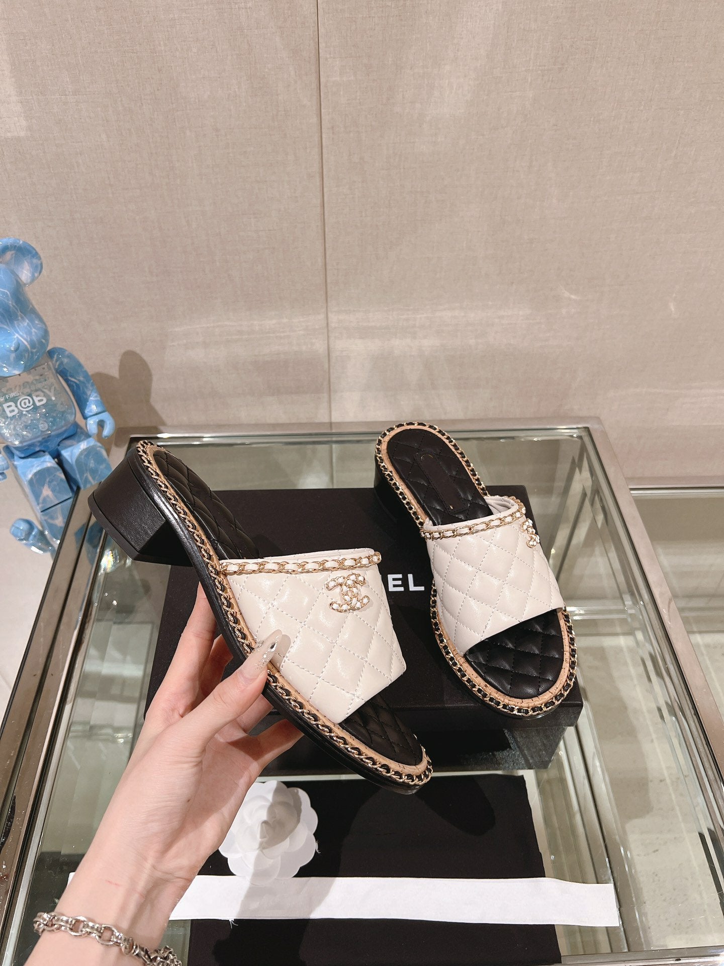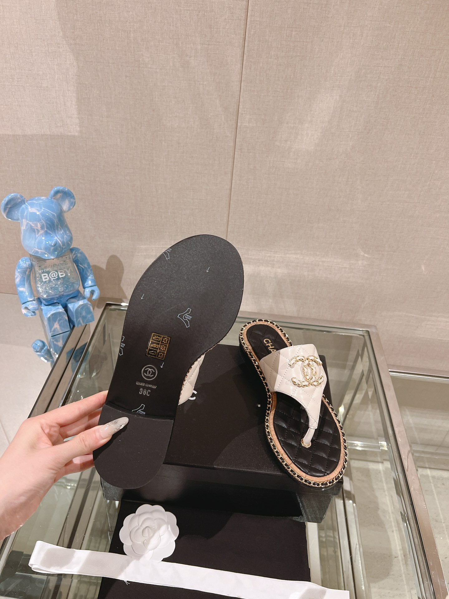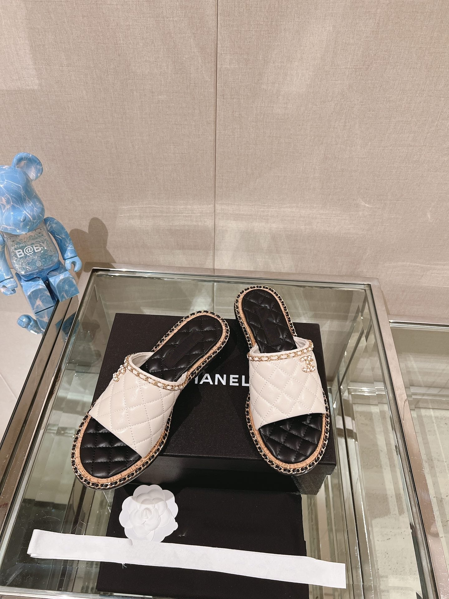 cc sandal white beige lambskin mop
