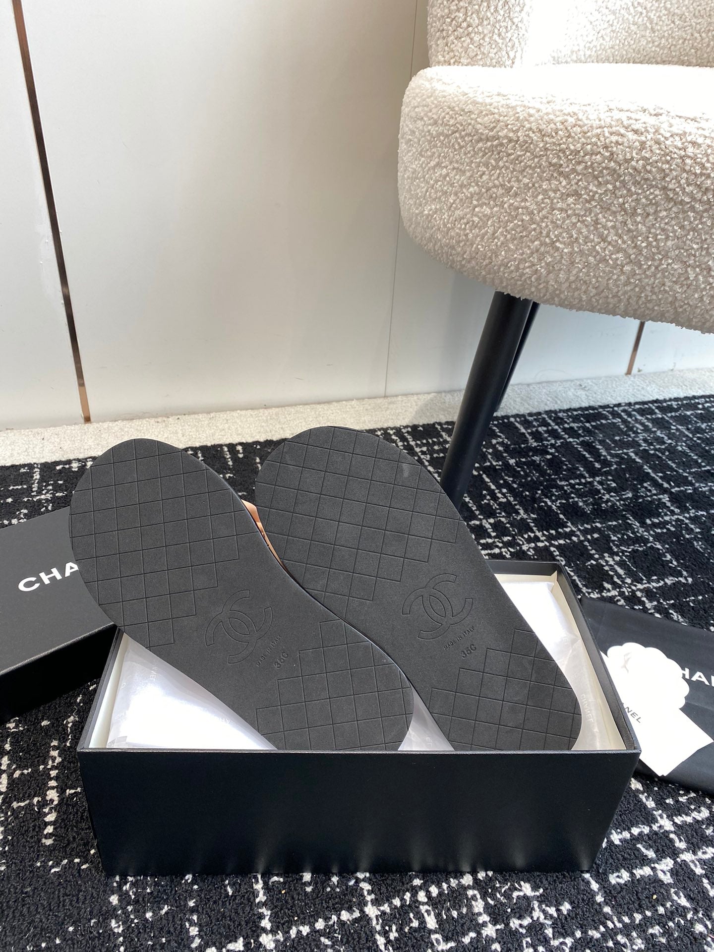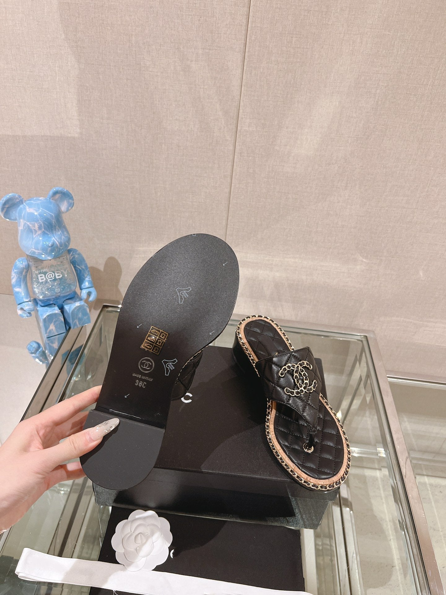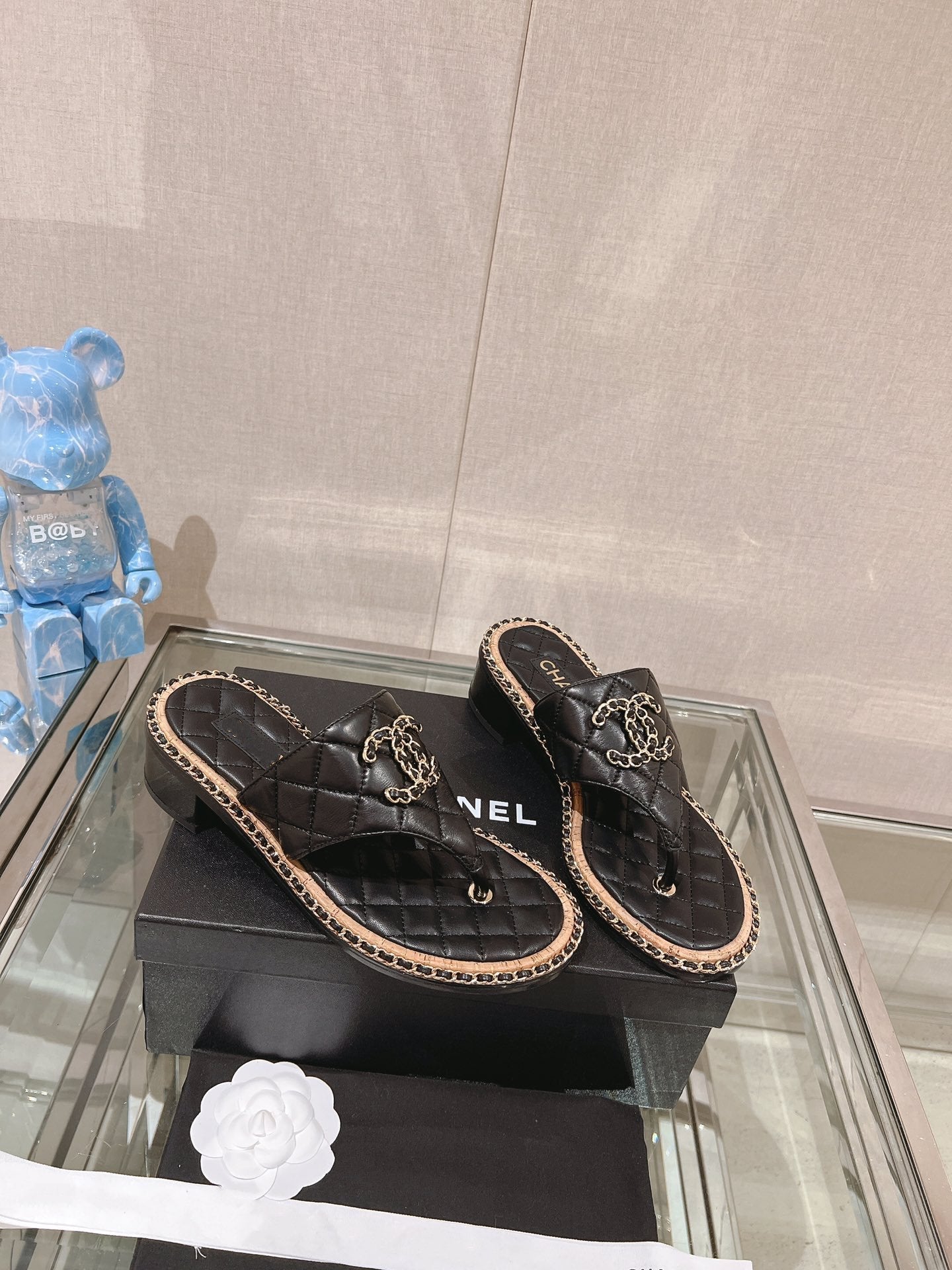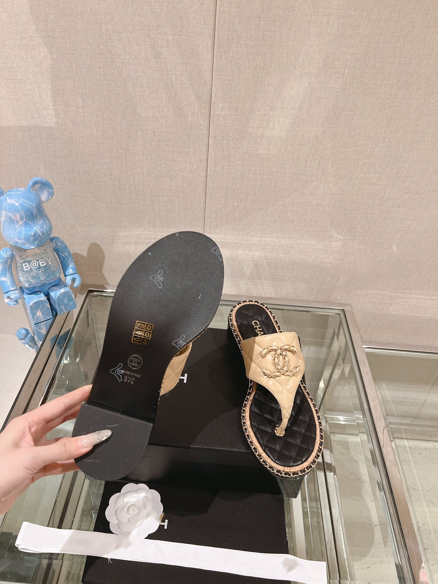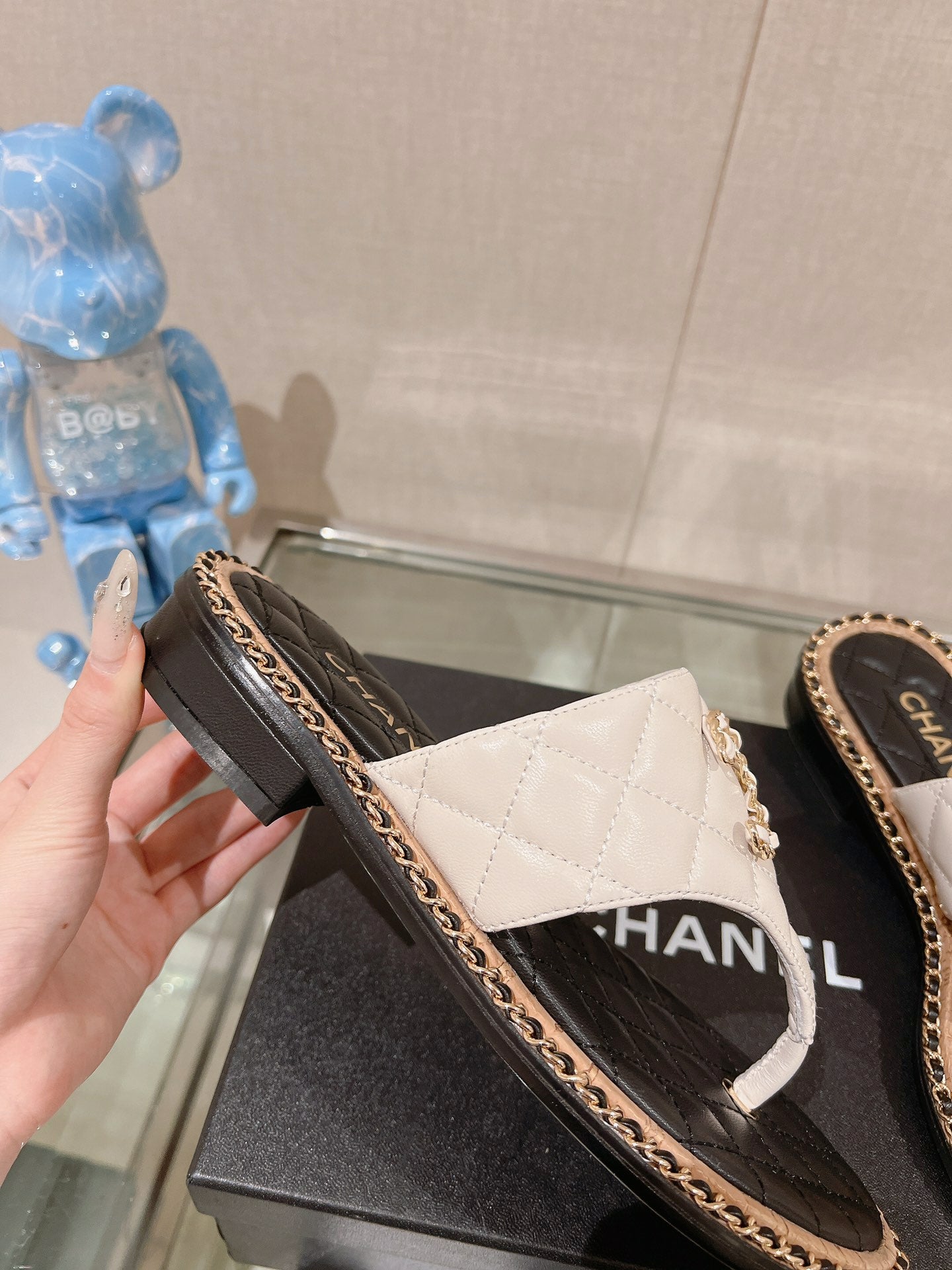 cc thong sandal 30 beige black quilted lambskin