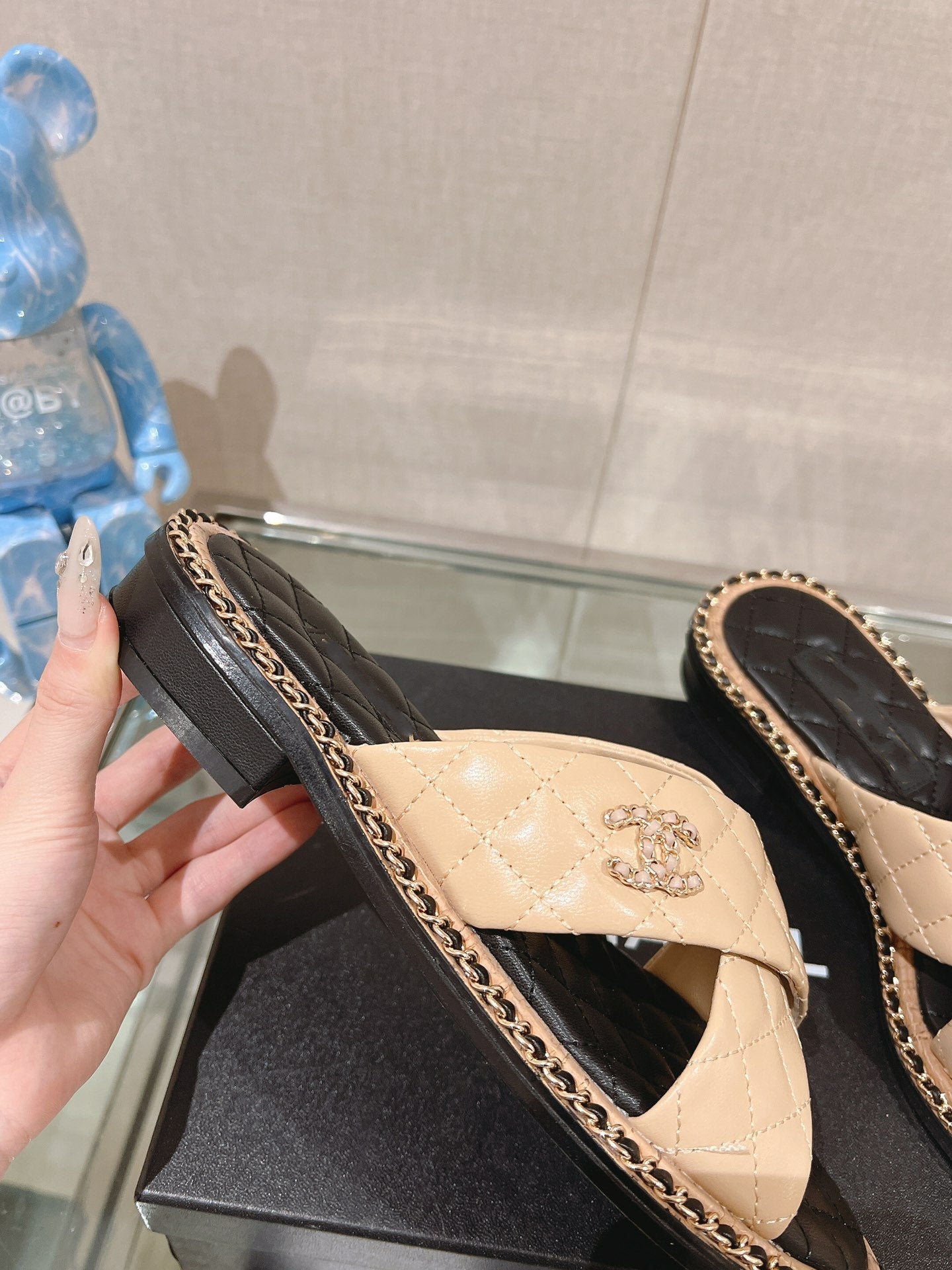 cc thong sandal 50 beige black quilted lambskin