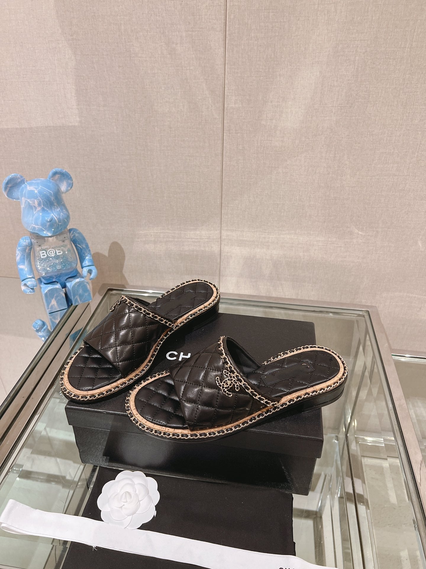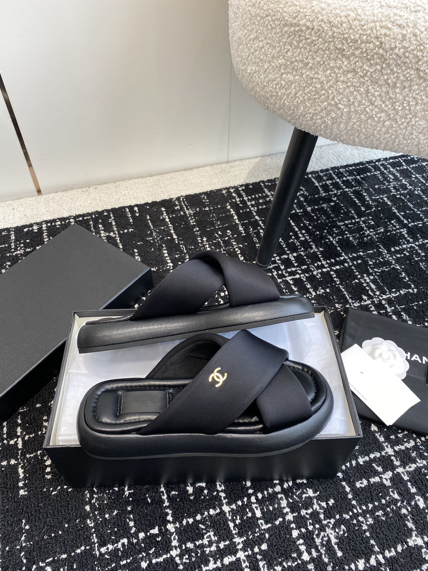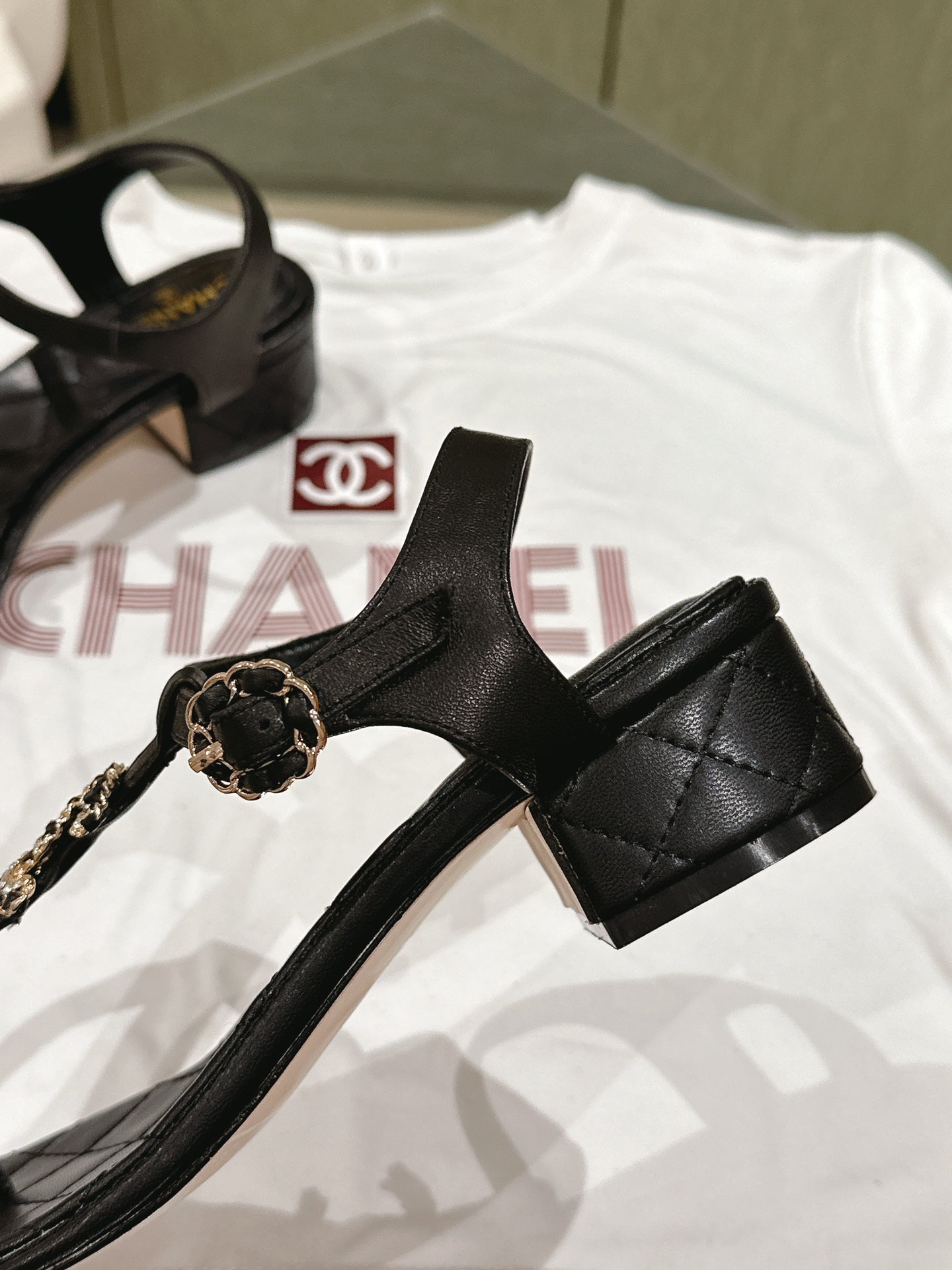 sandal black quilted lambskin flower cc