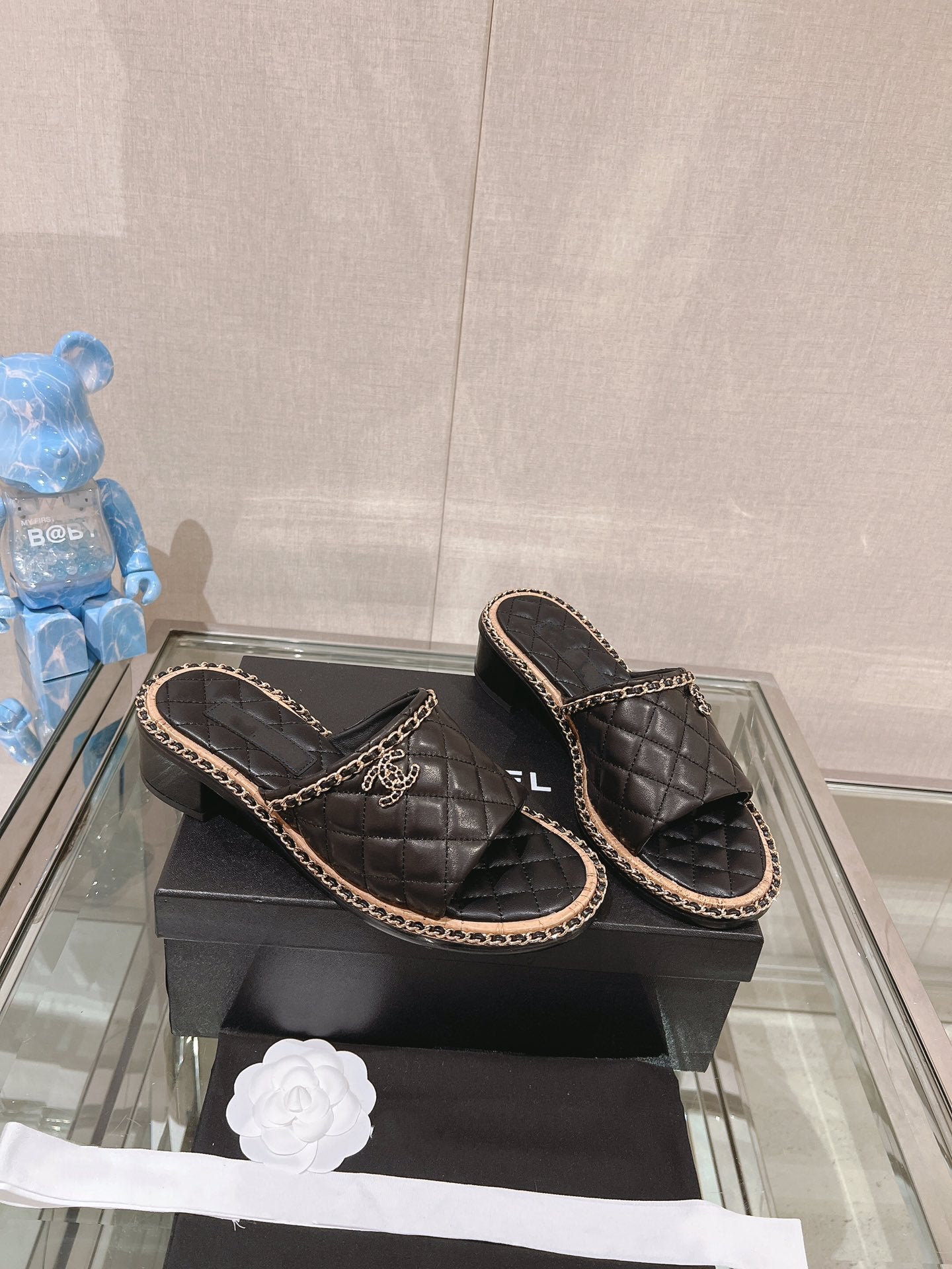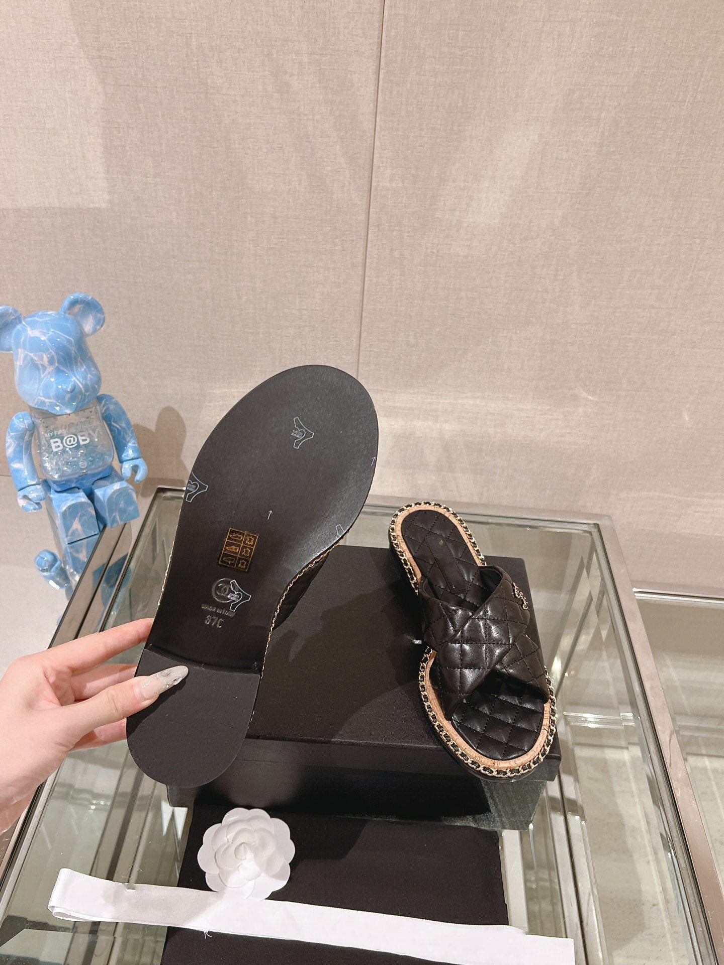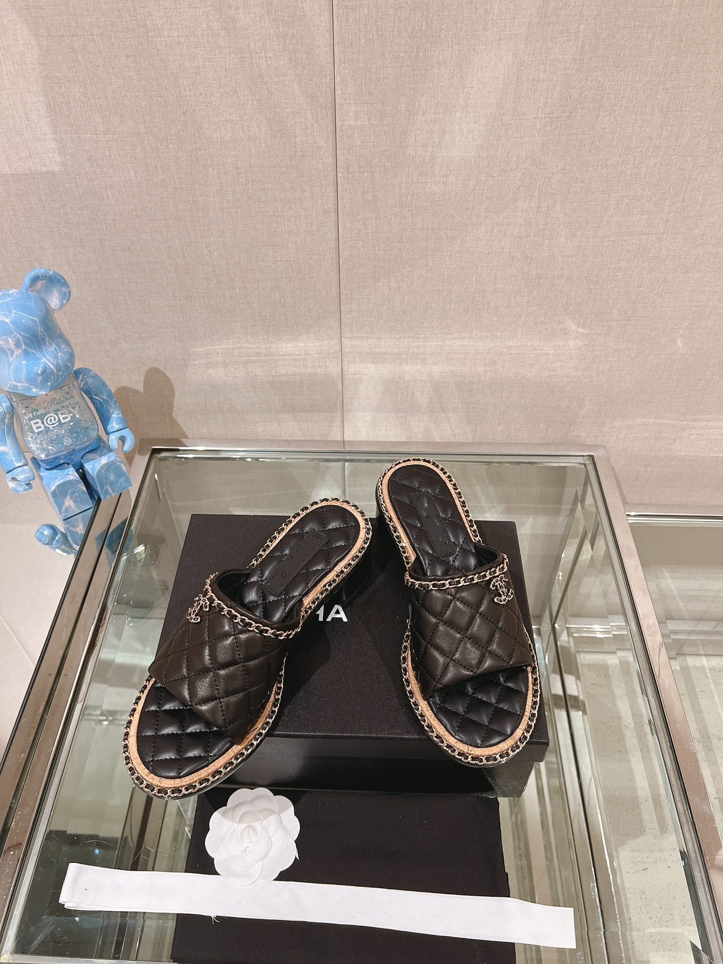 sandal black quilted lambskin flower cc