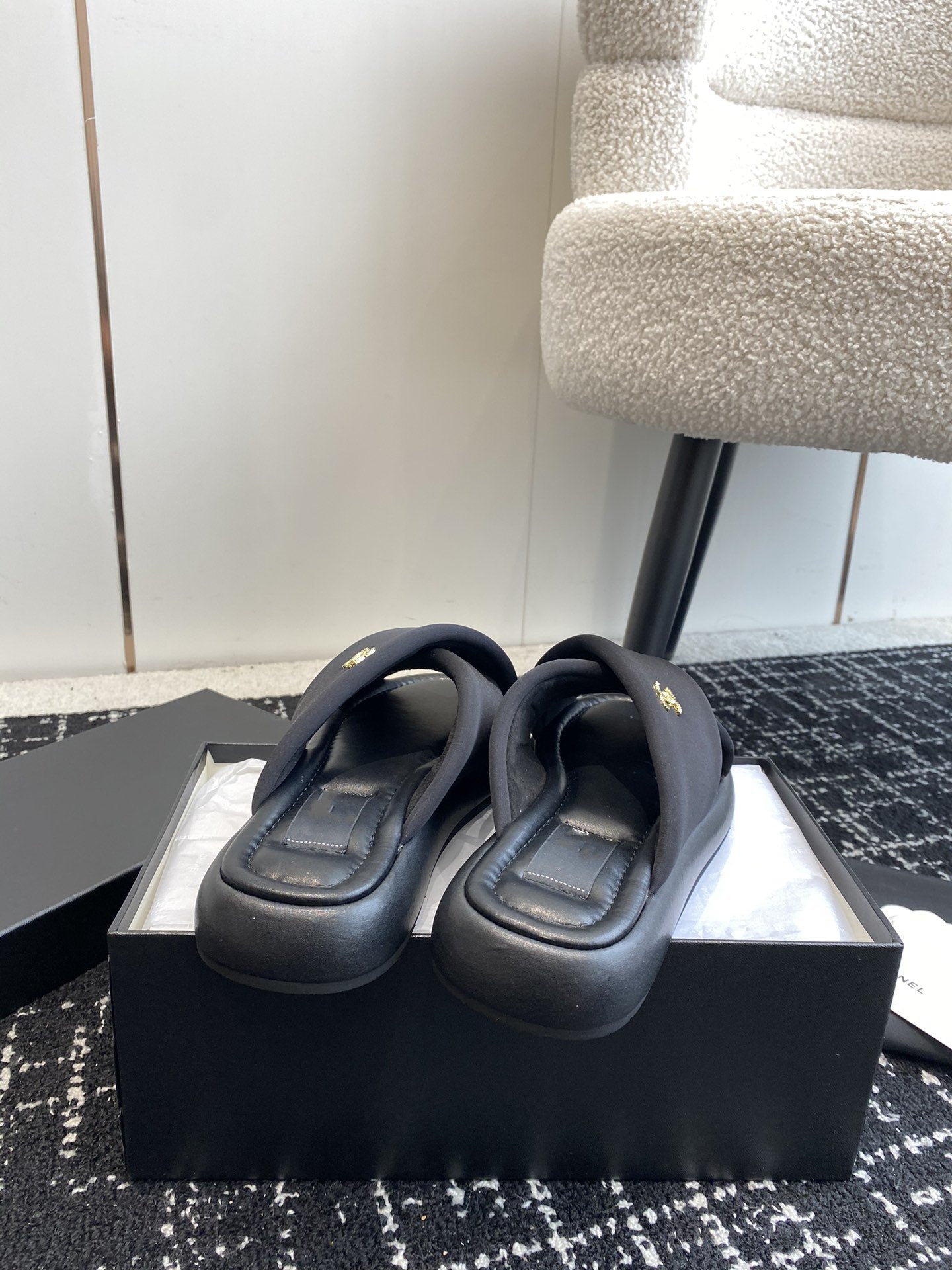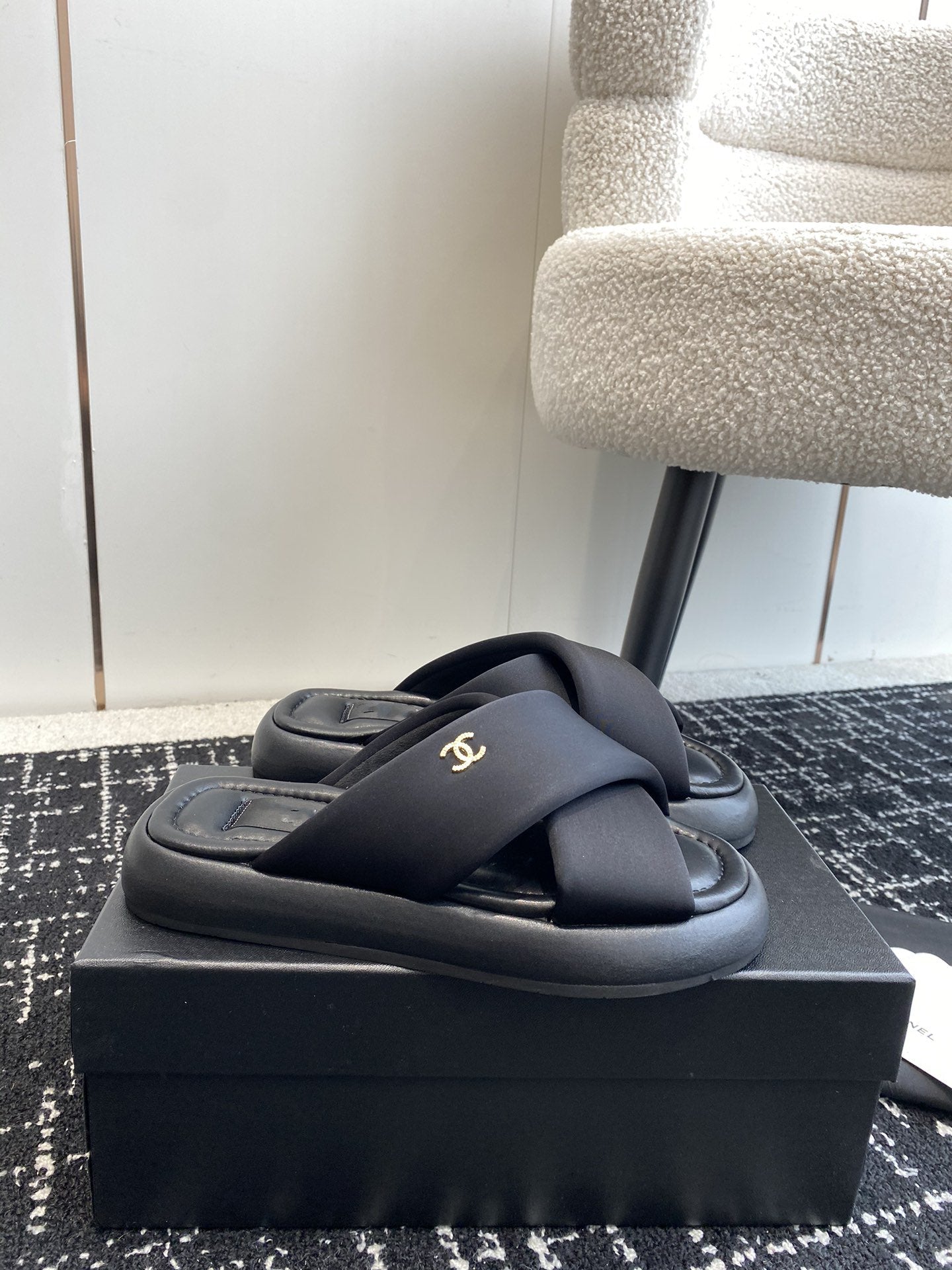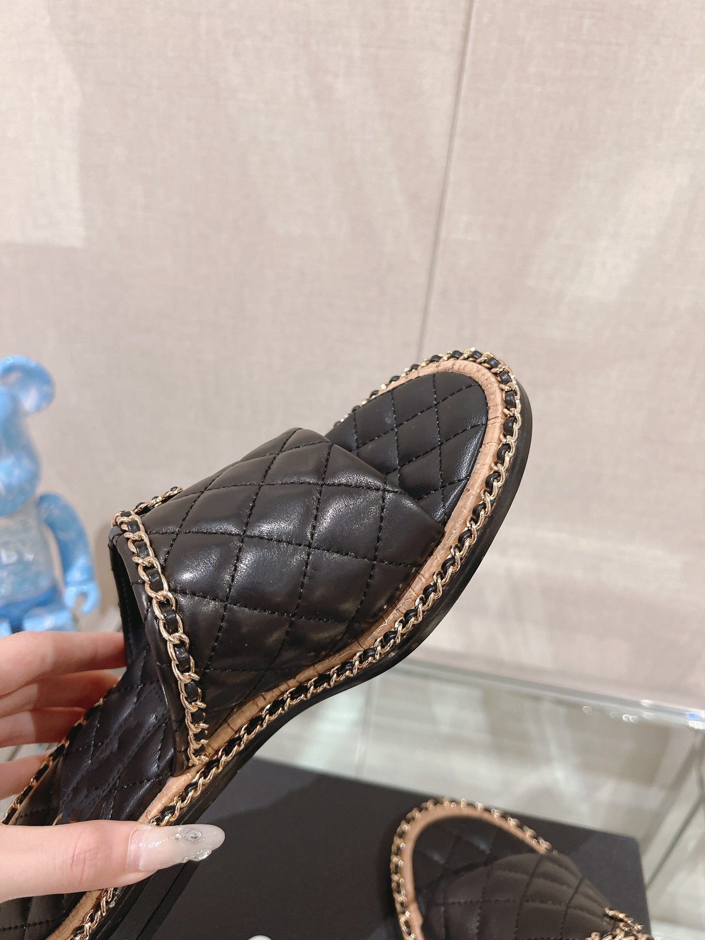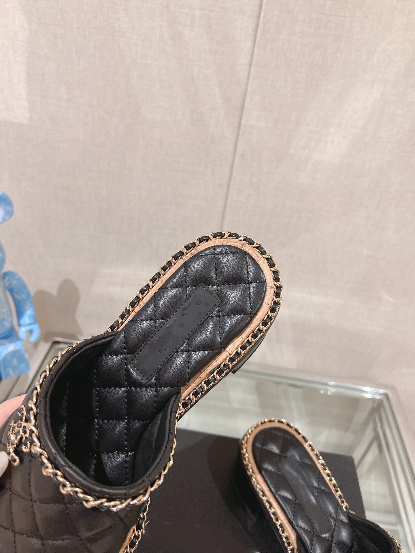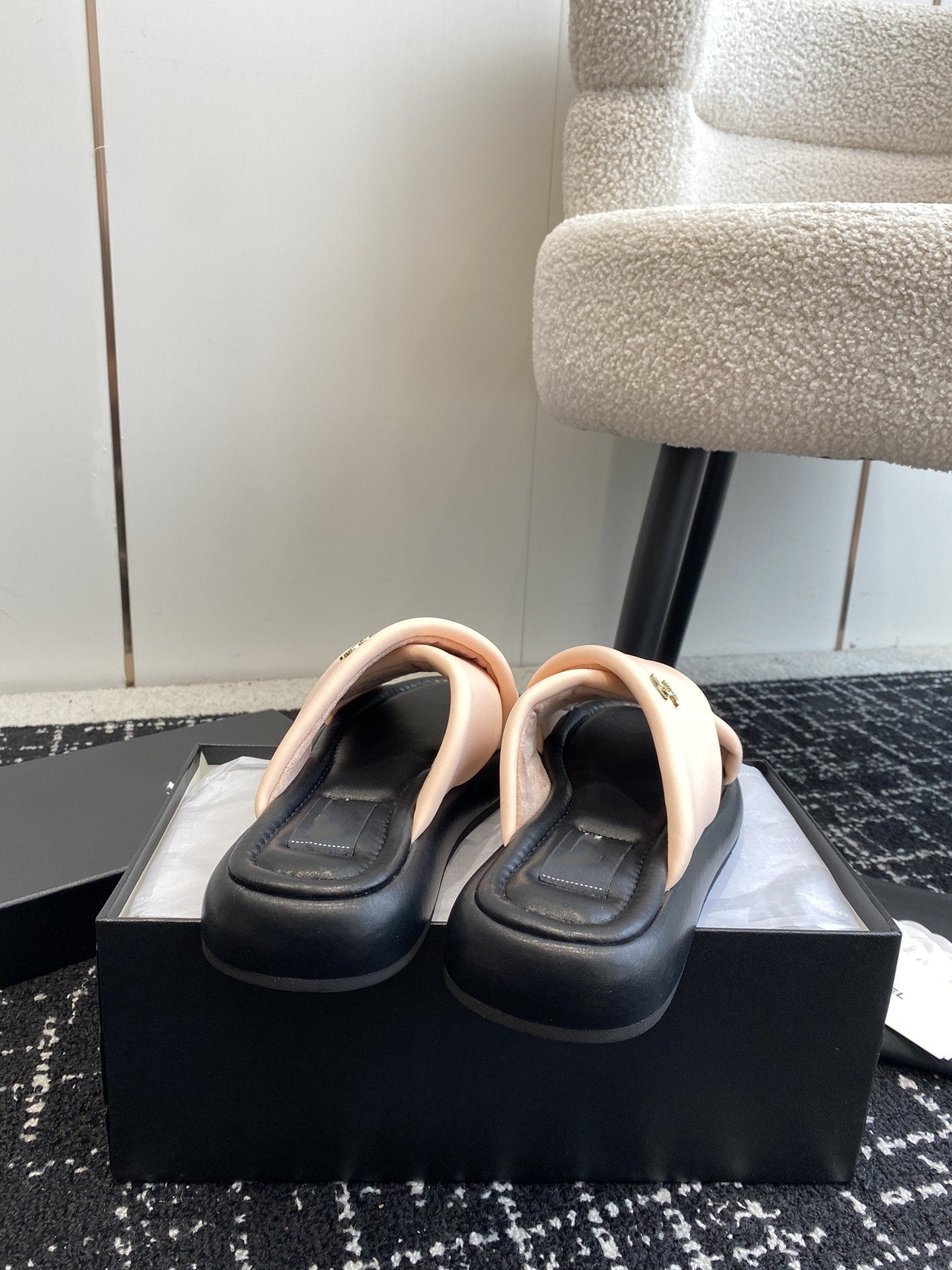 cross slippers 50 beige black quilted lambskin