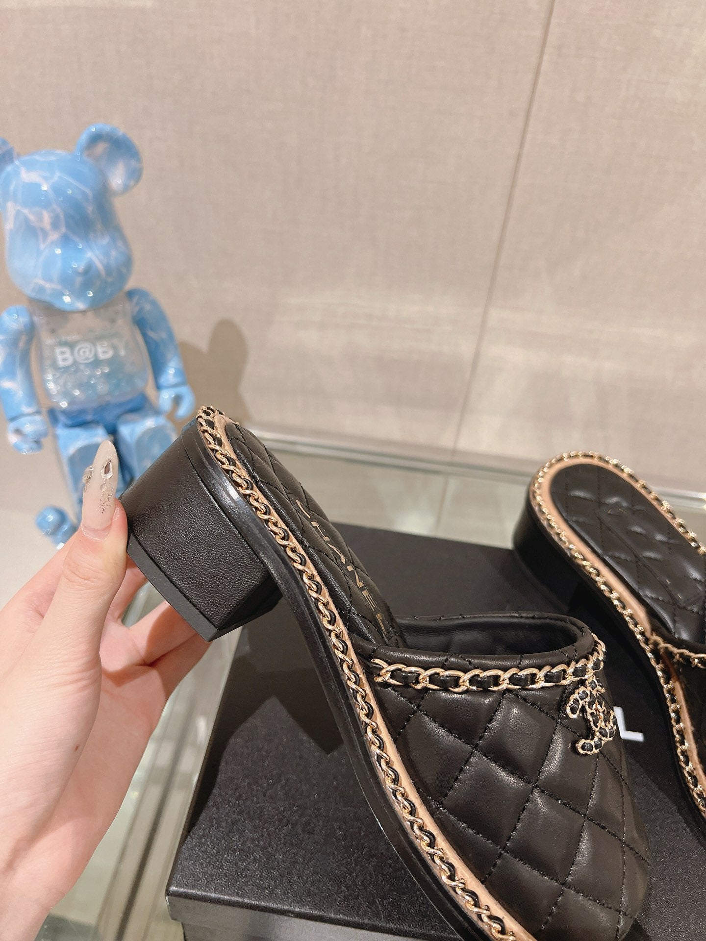 mule sandal 50 beige black quilted lambskin