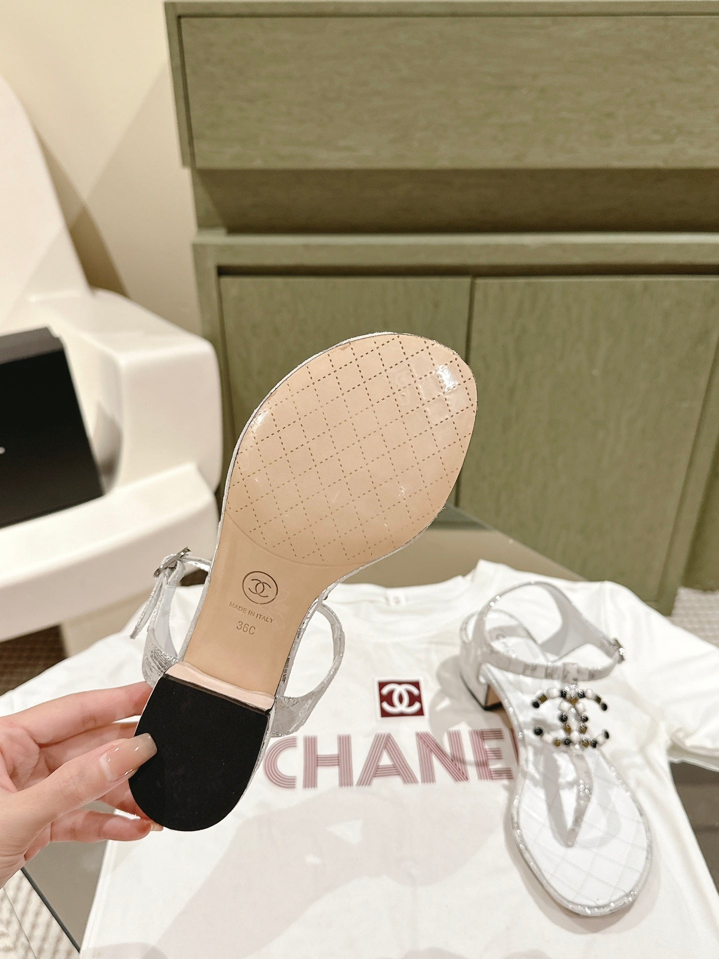 cc thong sandal 30 white black quilted lambskin