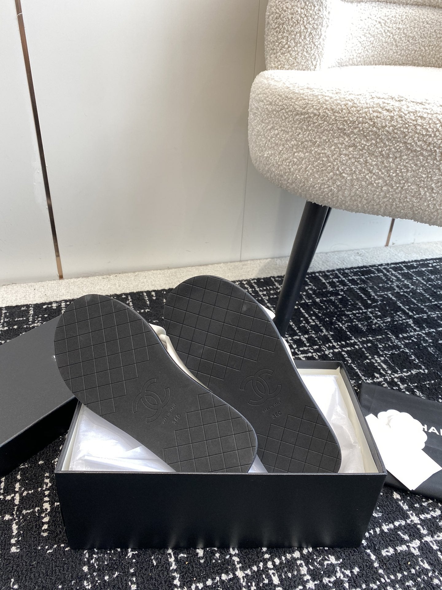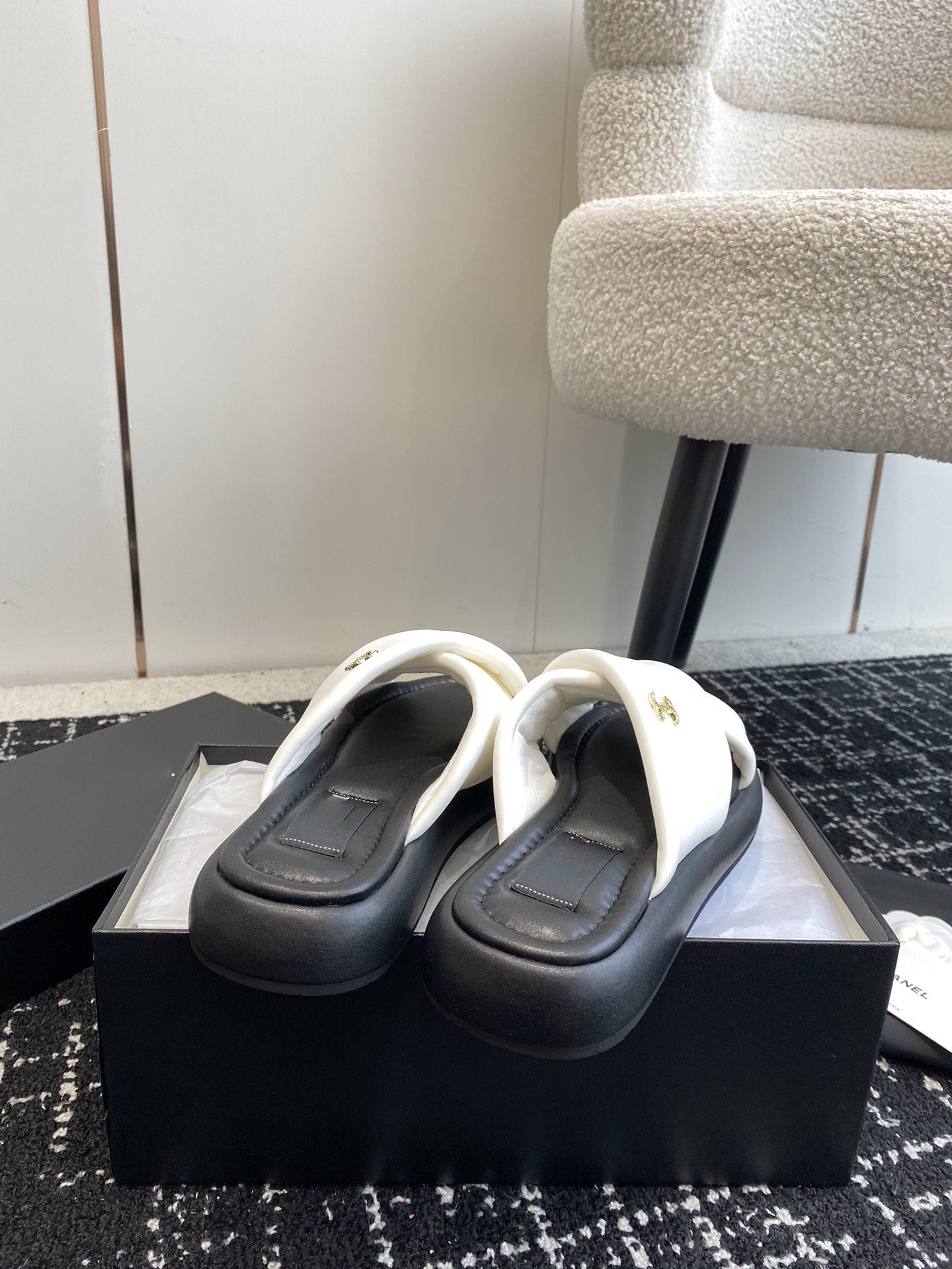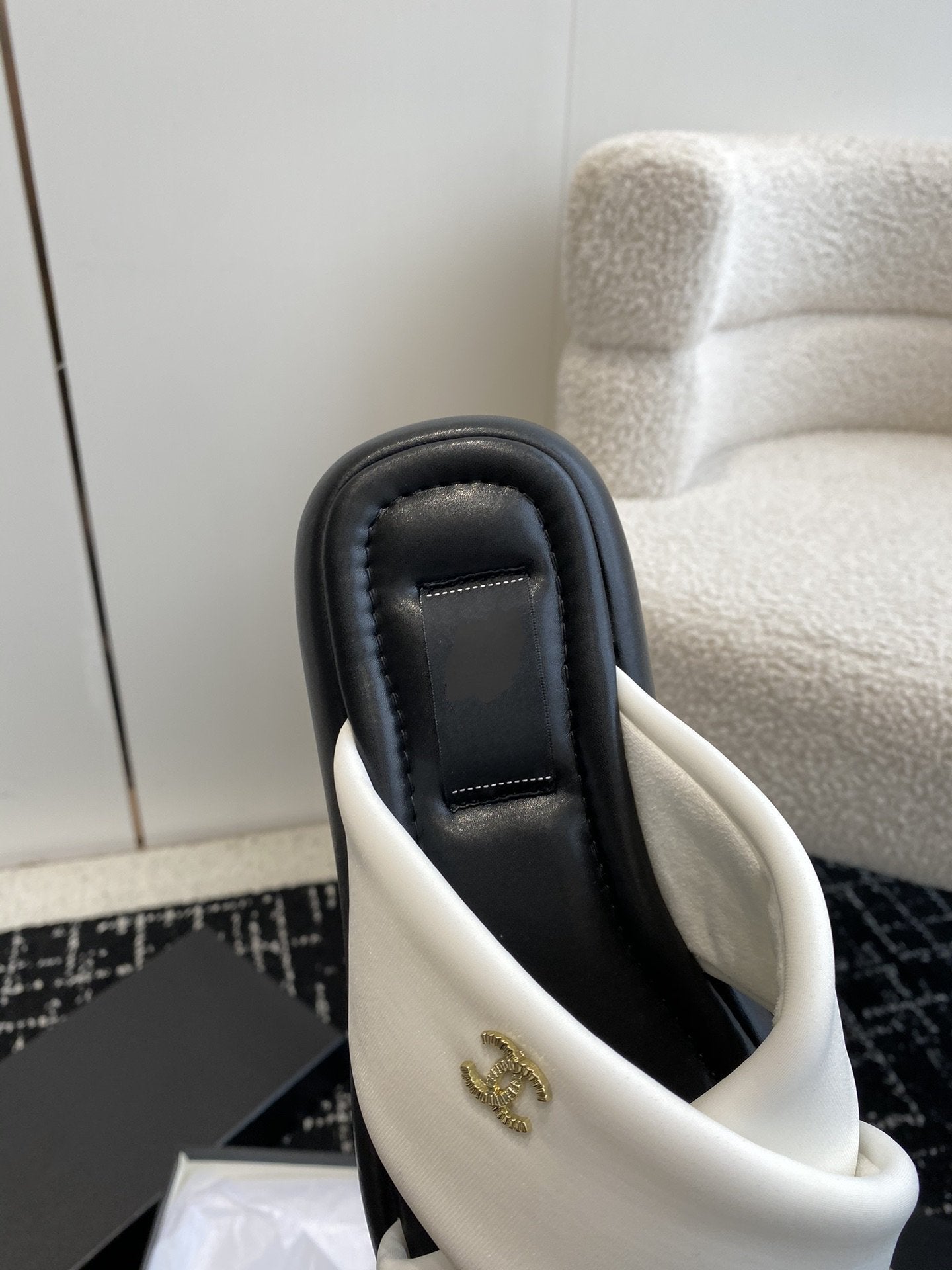 cc sandal white black lambskin mop