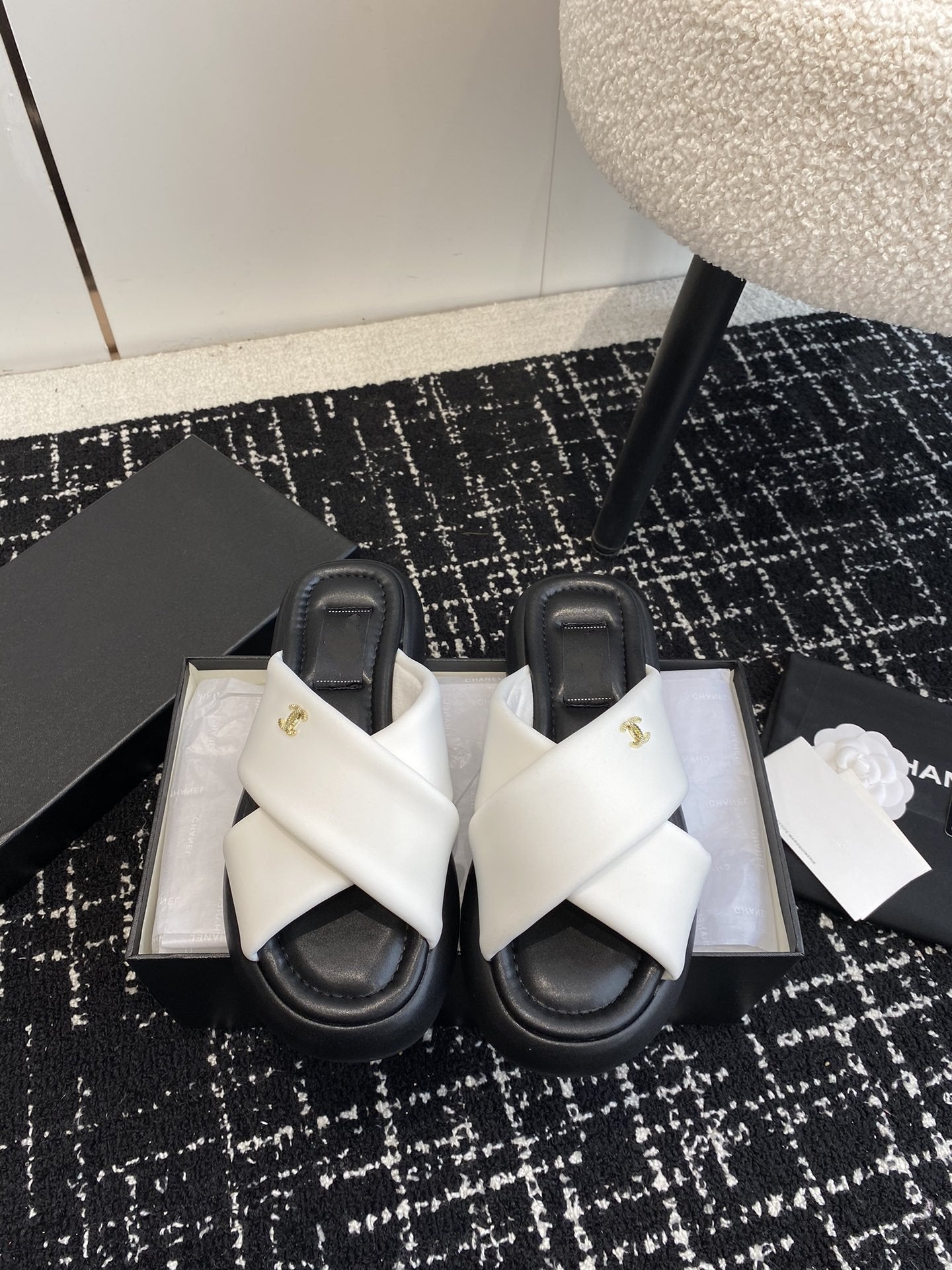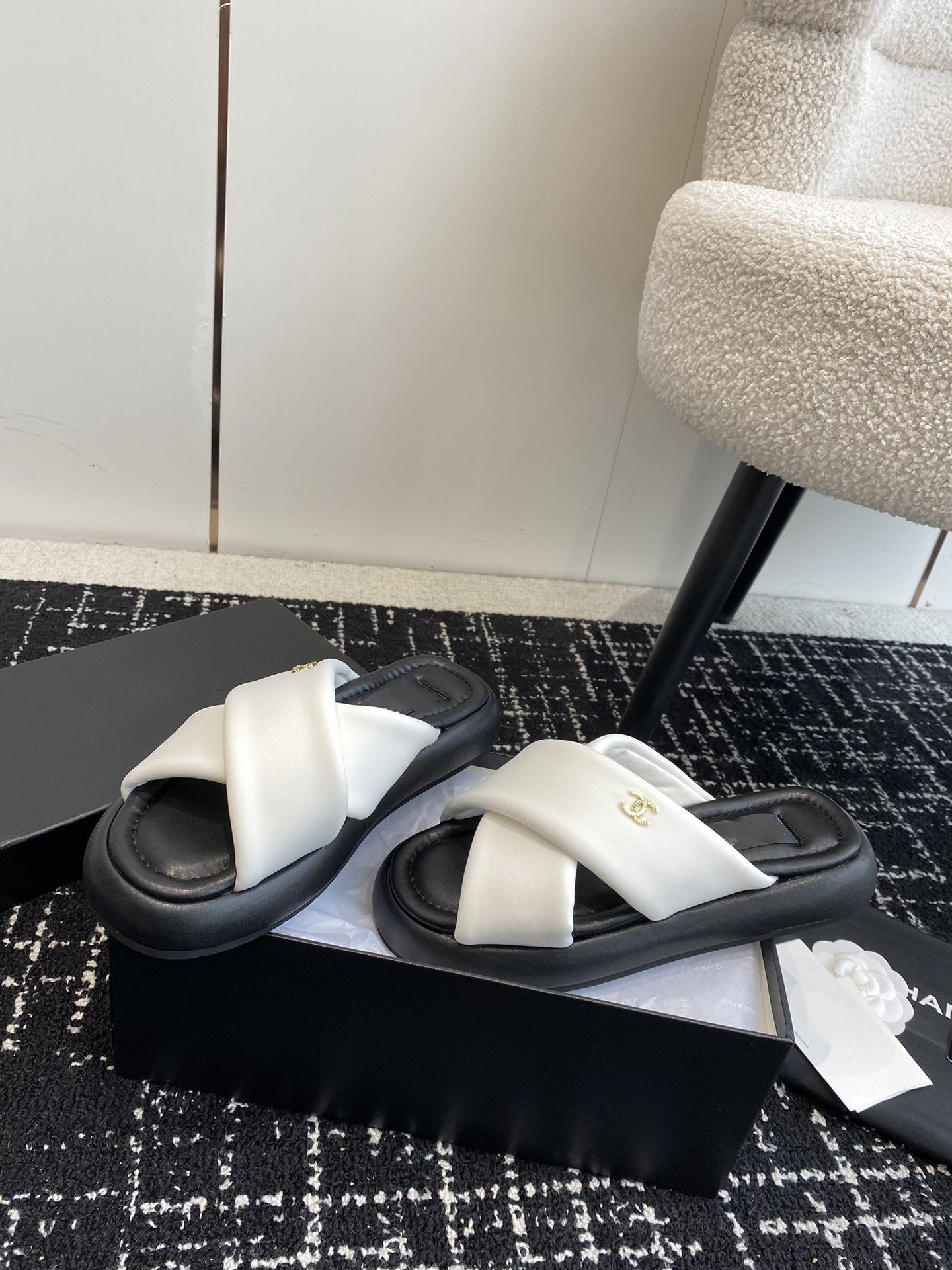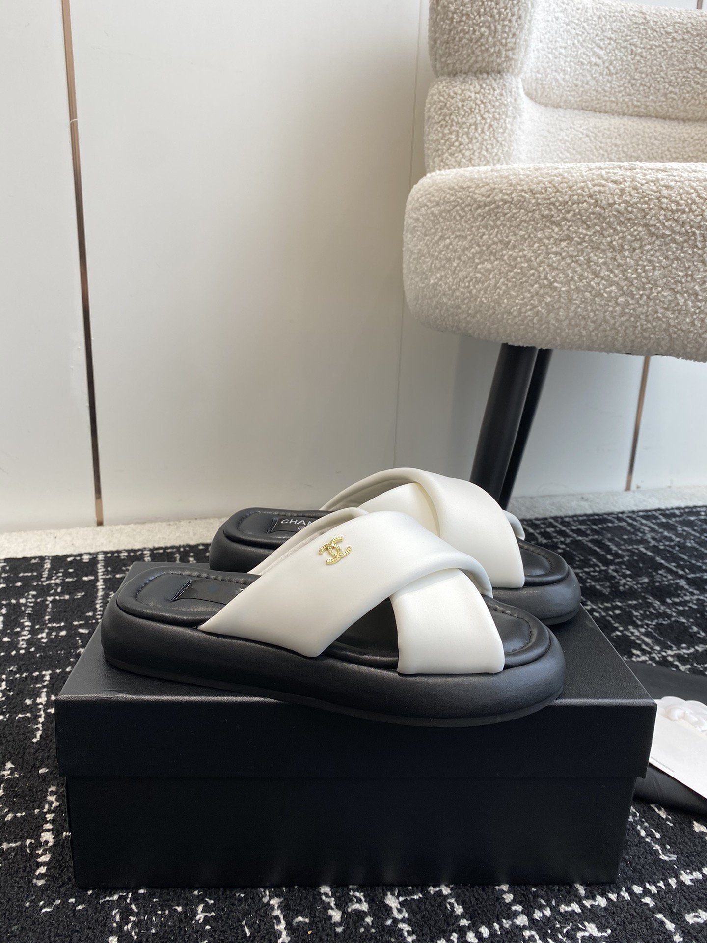 cross slippers 50 white black quilted lambskin