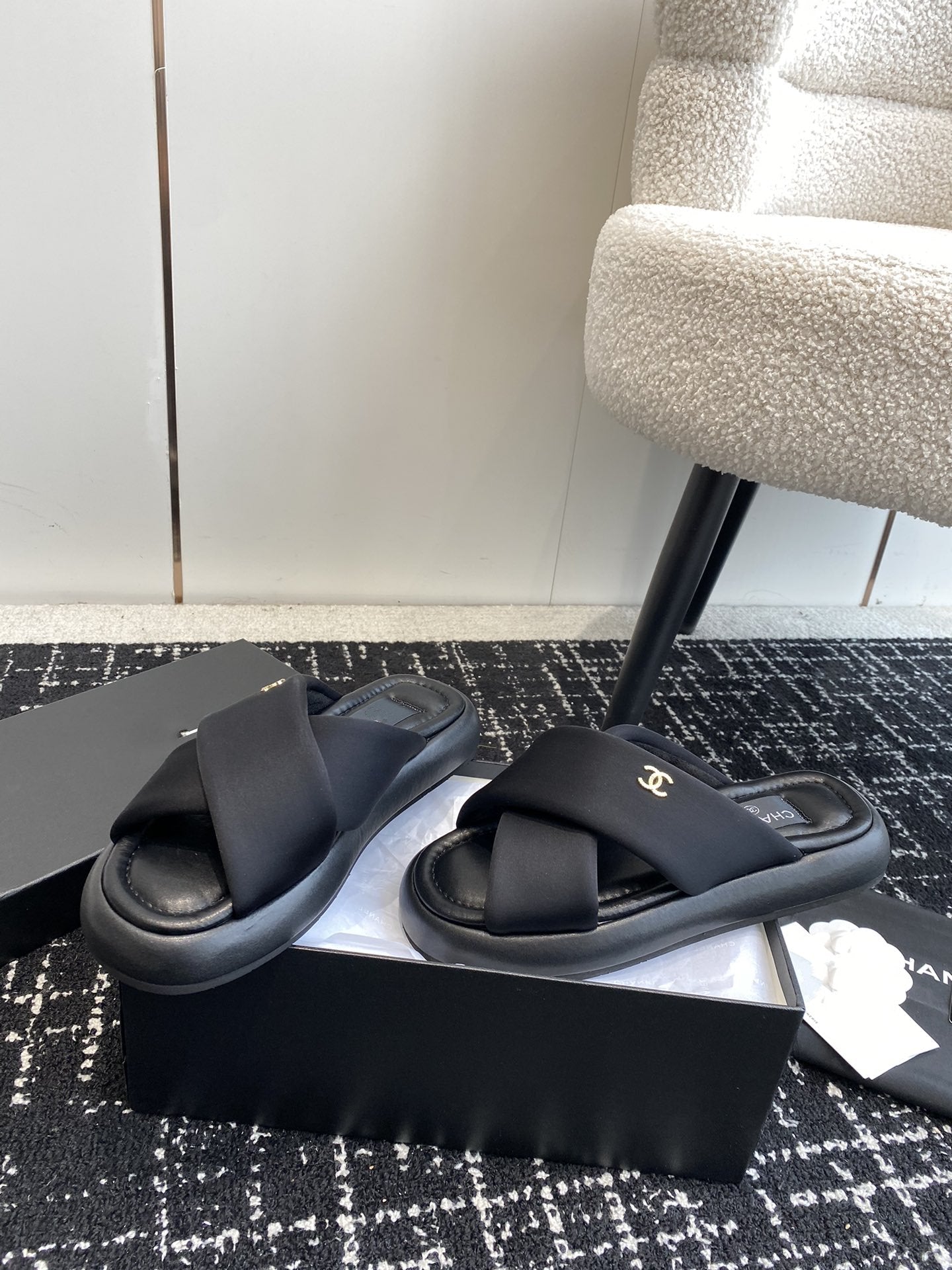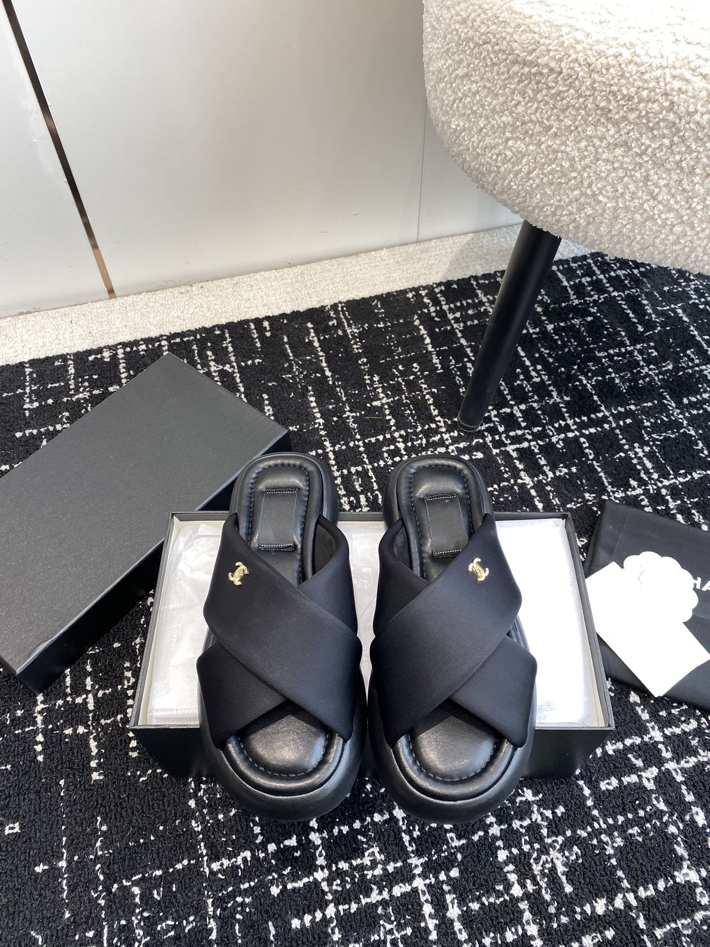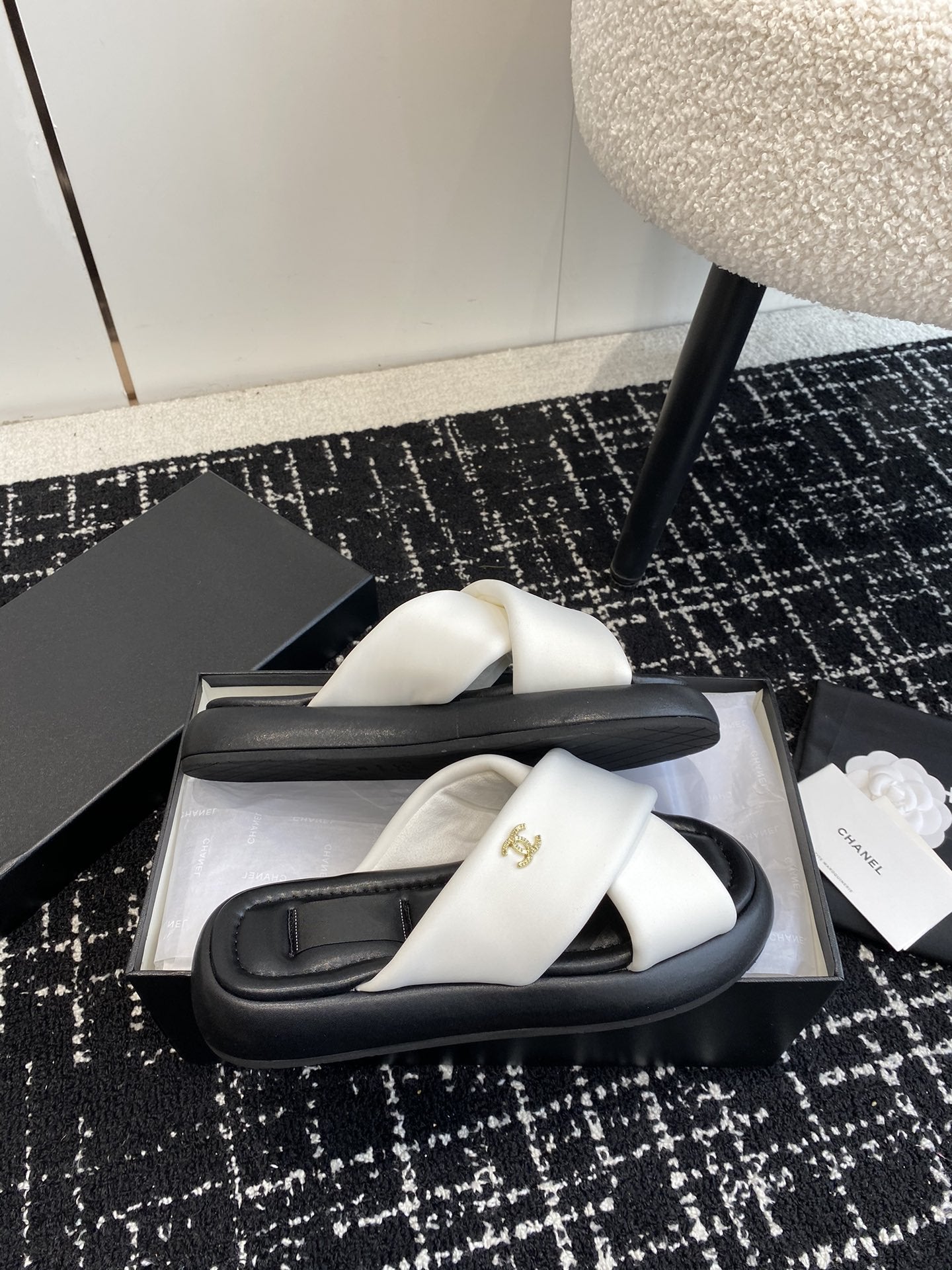 cross slippers 50 white black quilted lambskin