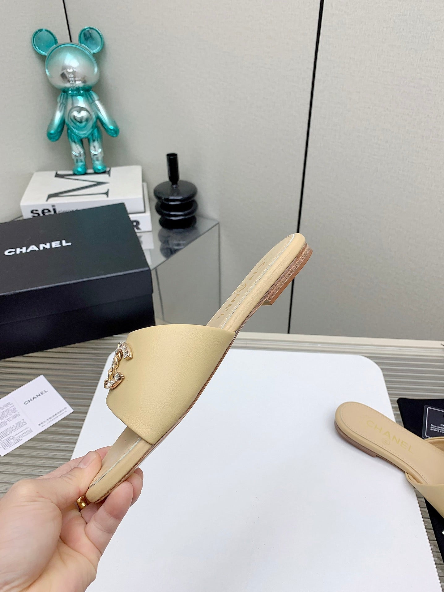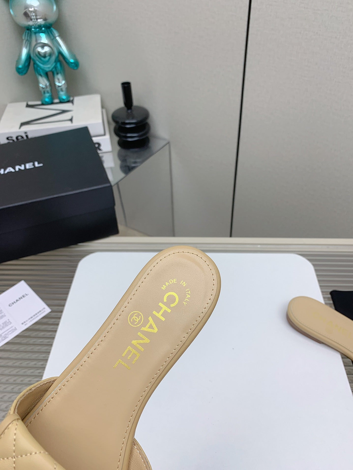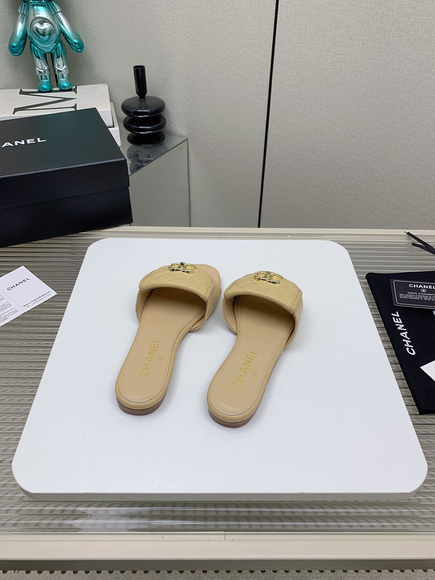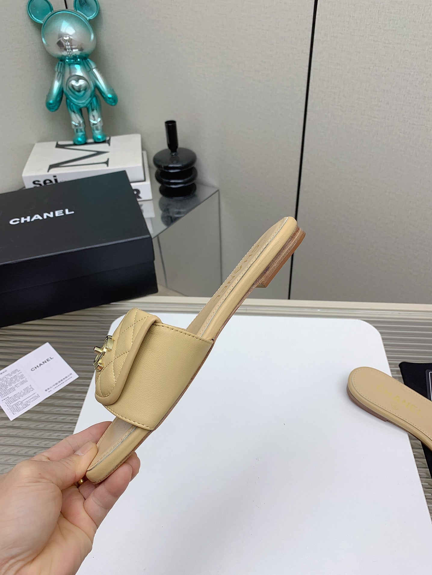 CC Thong Slippers In Dark Beige Lambskin 147050