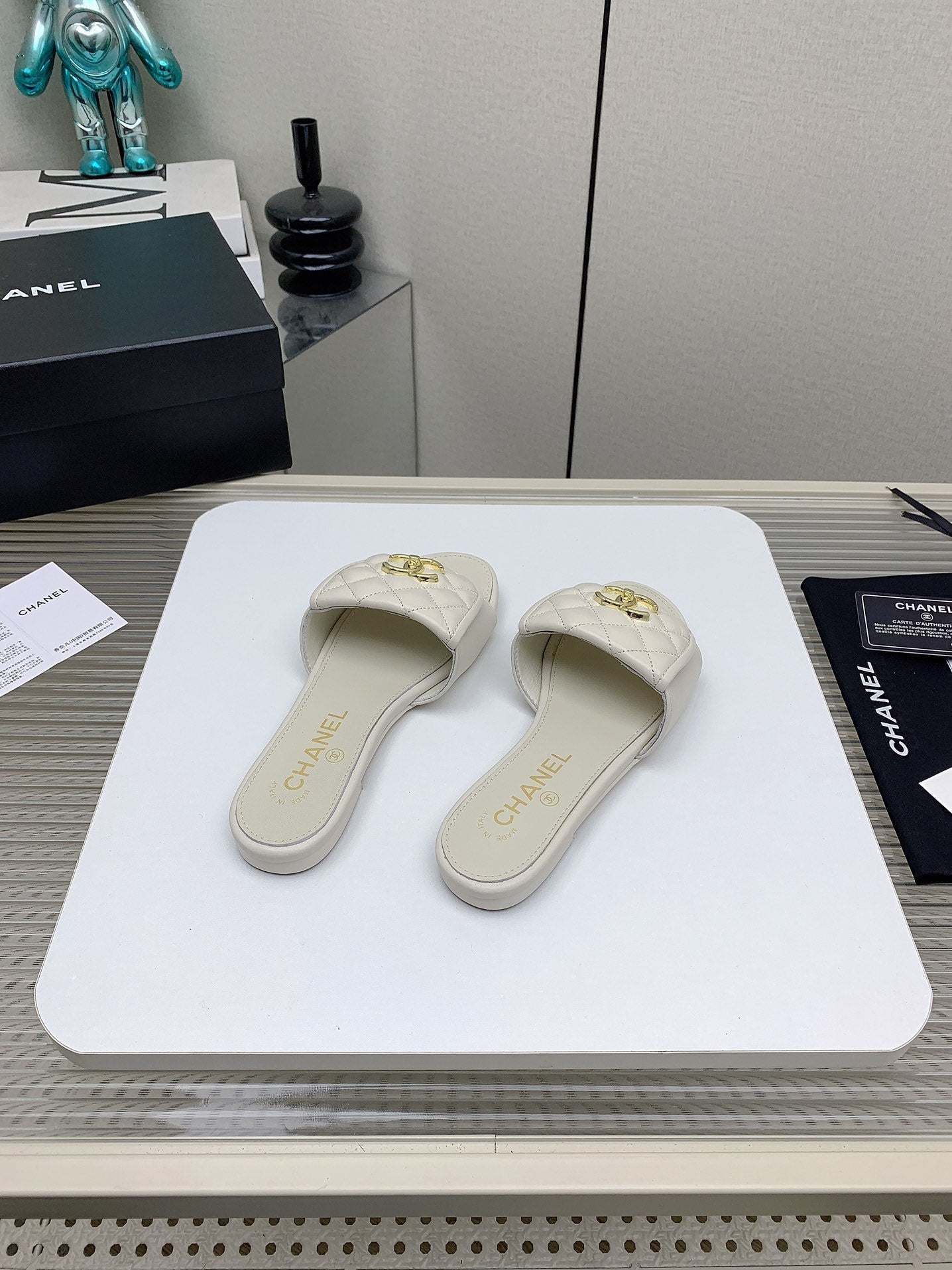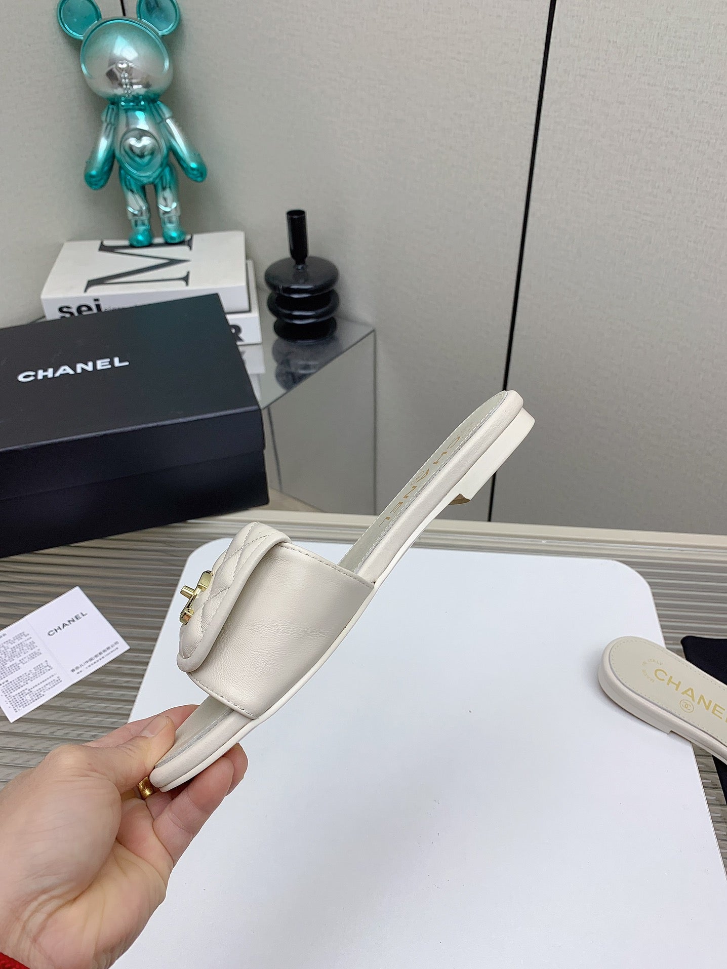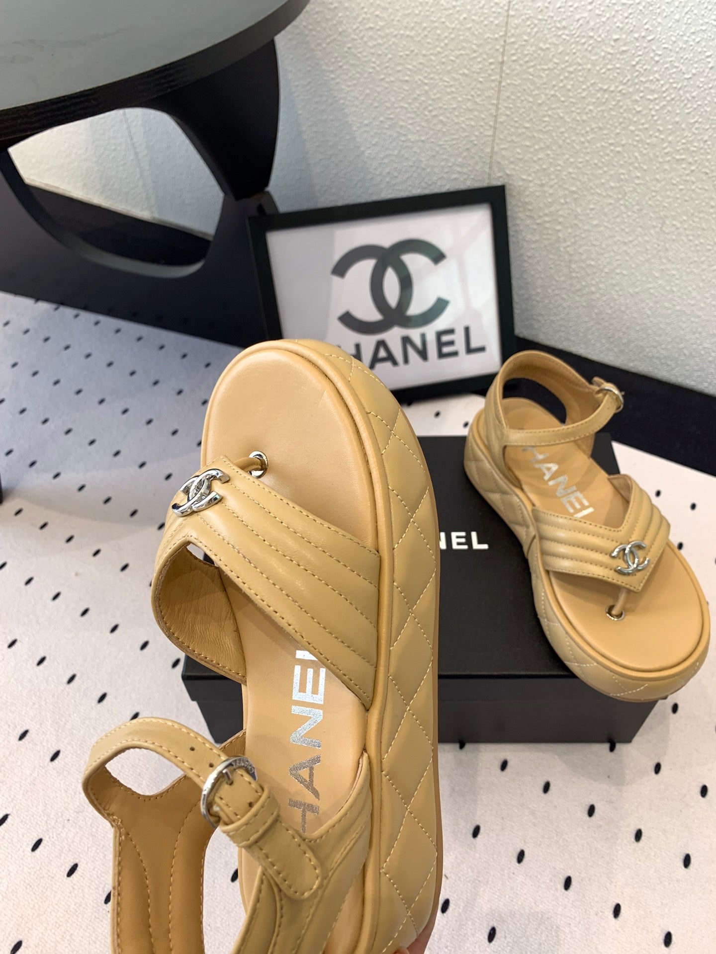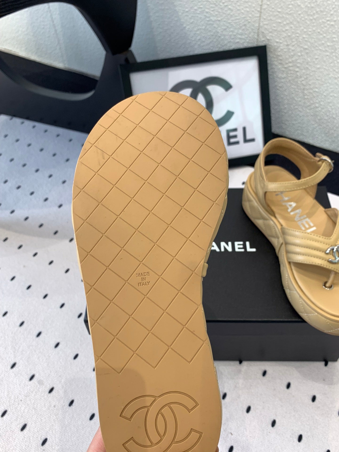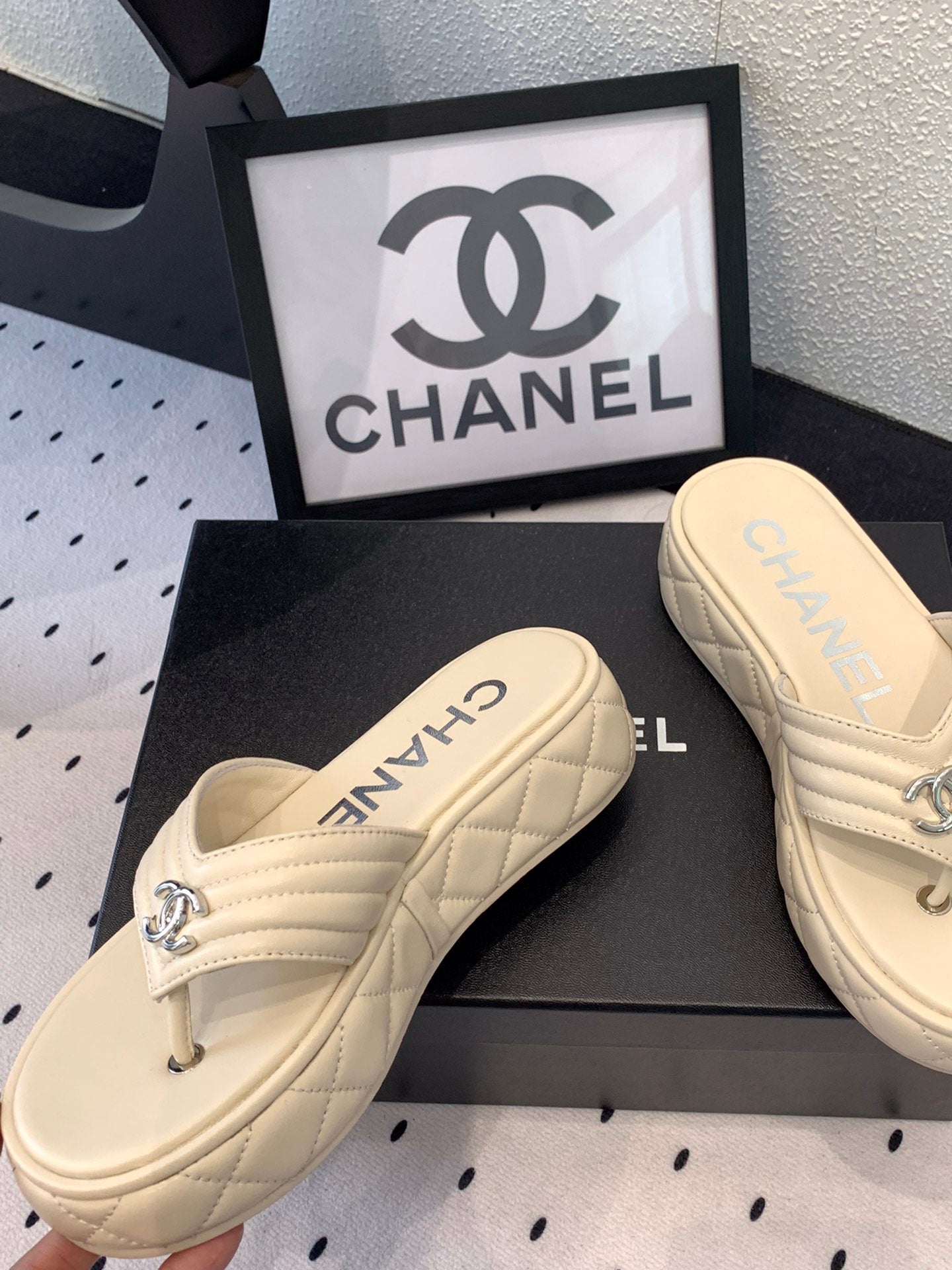 CC Thong Slippers In Dark Beige Lambskin 147050
