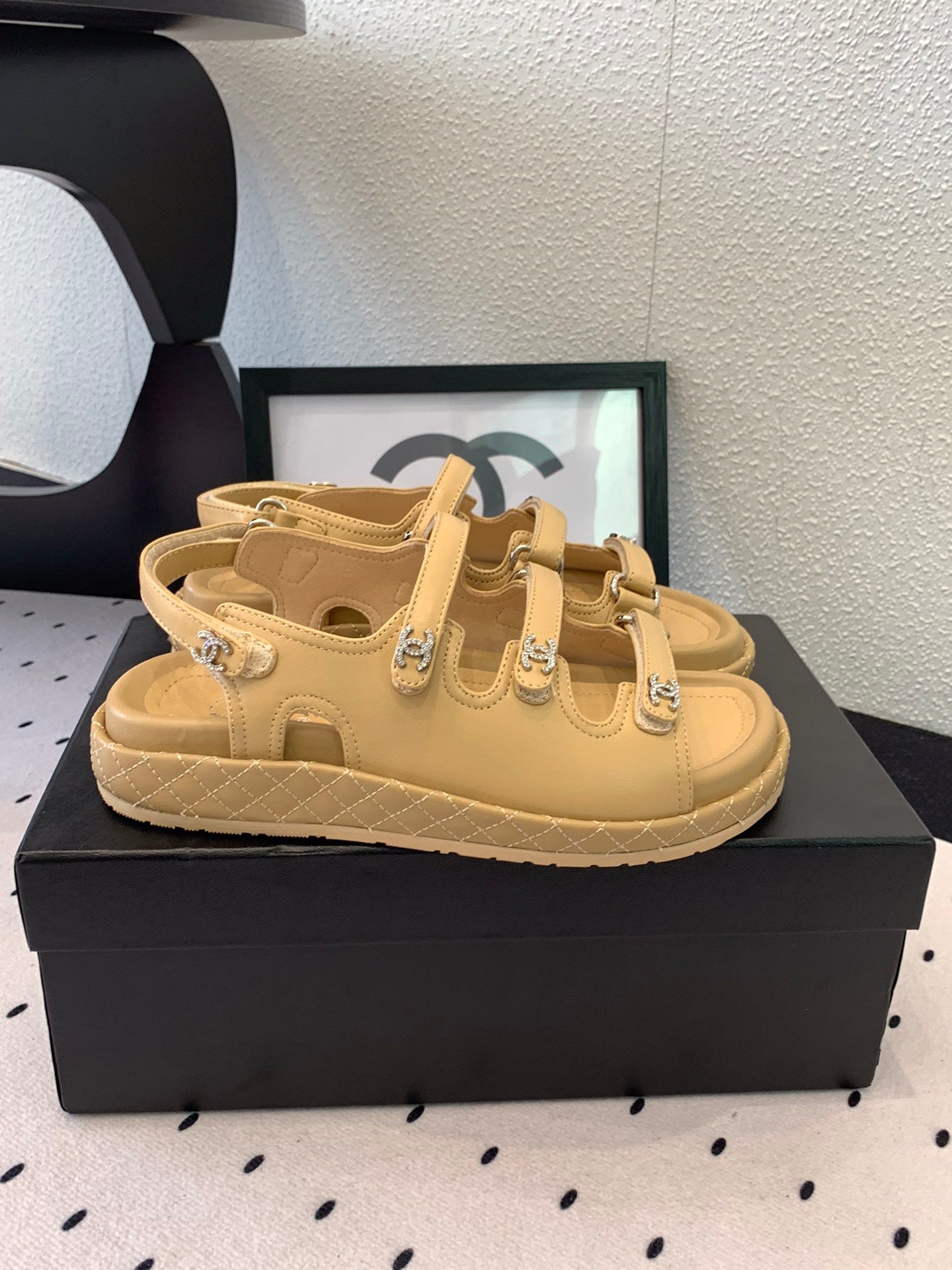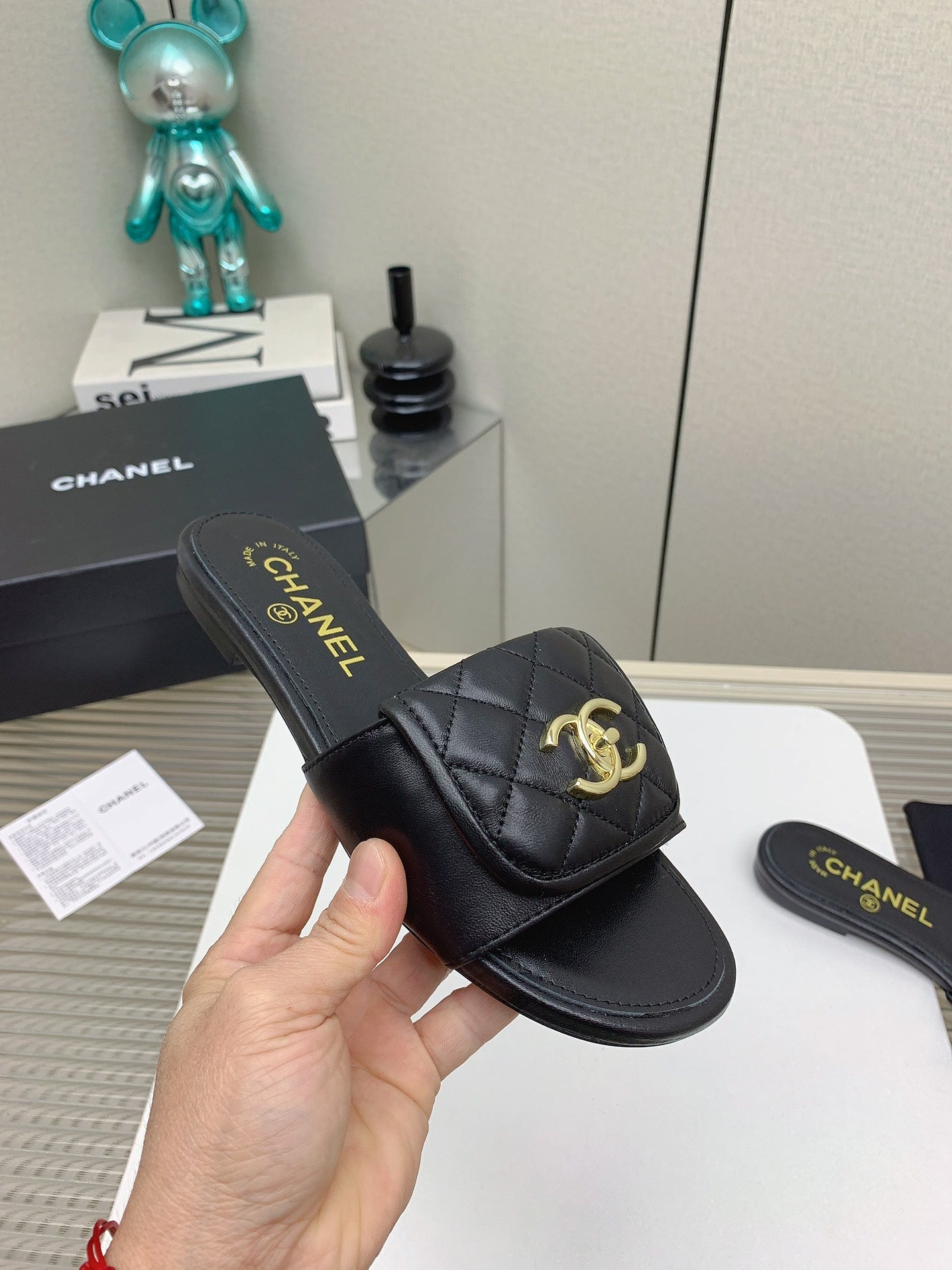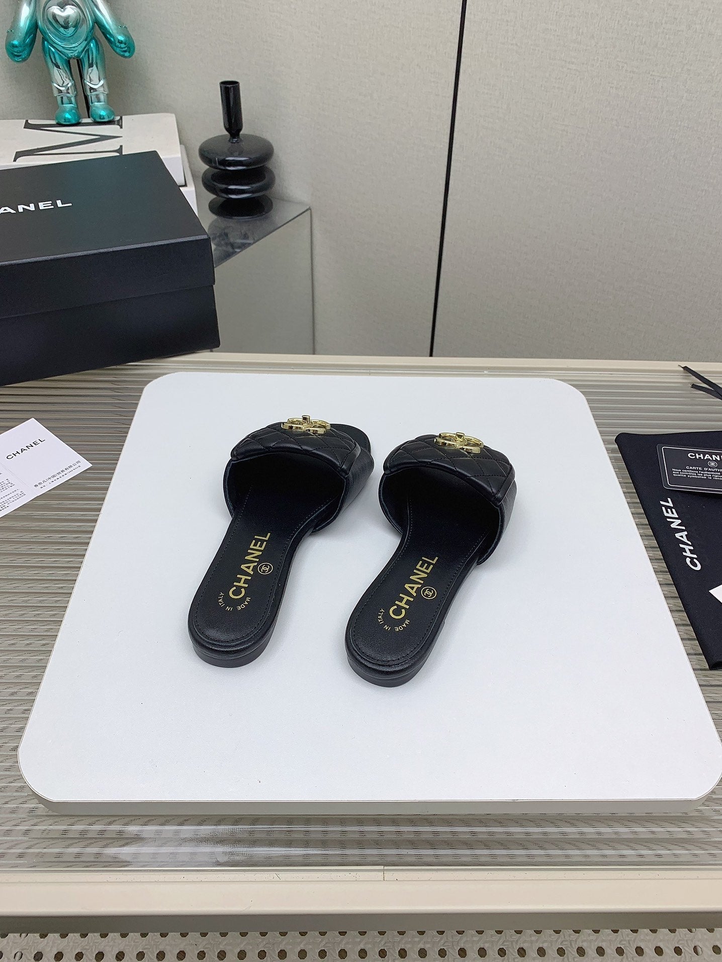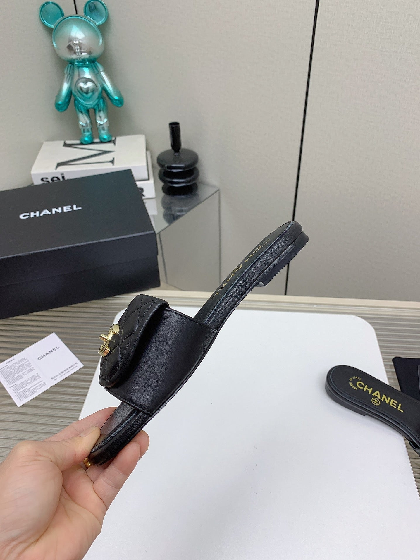 CC Thong Slippers In Dark Beige Lambskin 147050