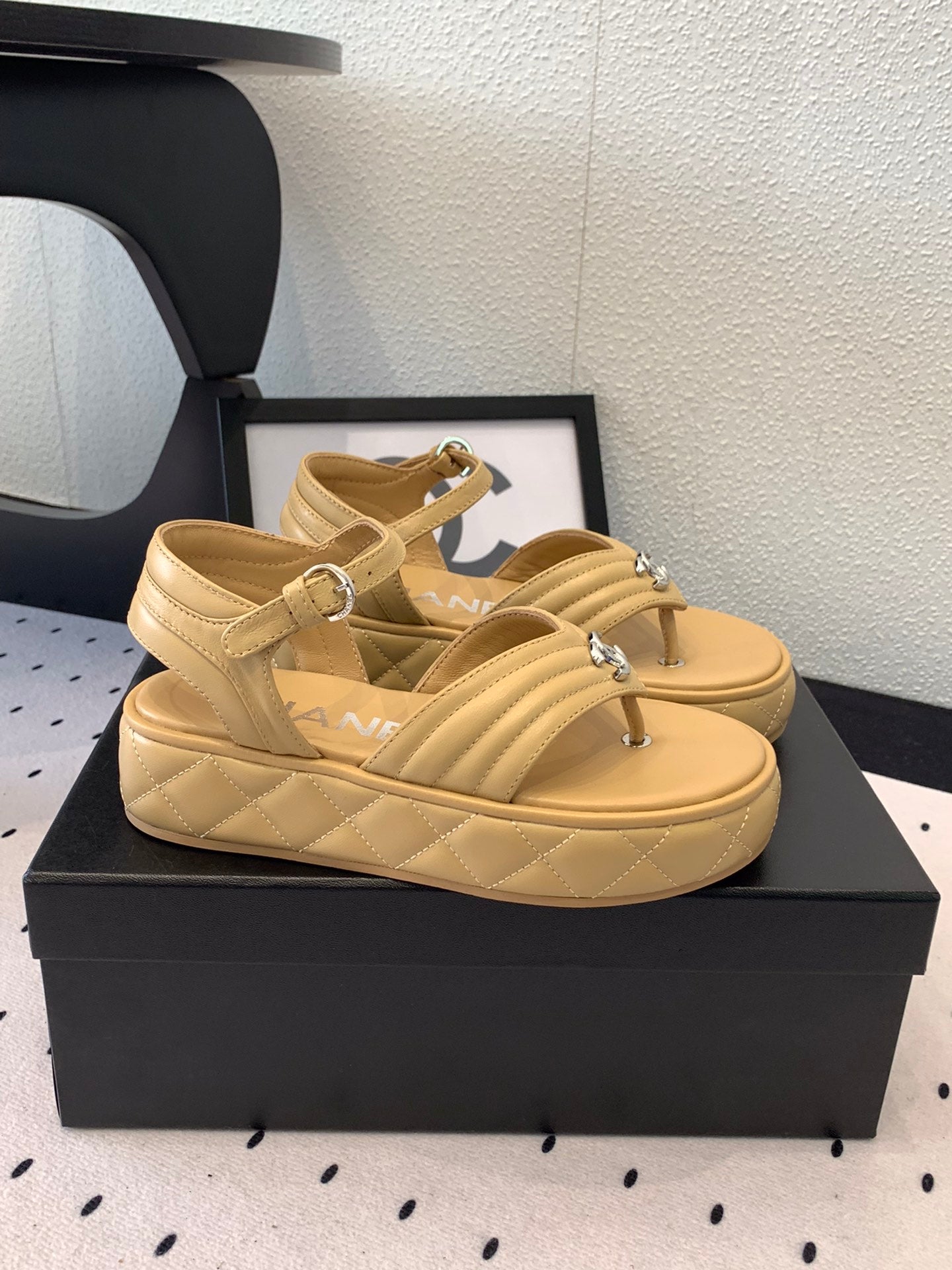 CC Thong Sandals In Dark Beige Lambskin 147040