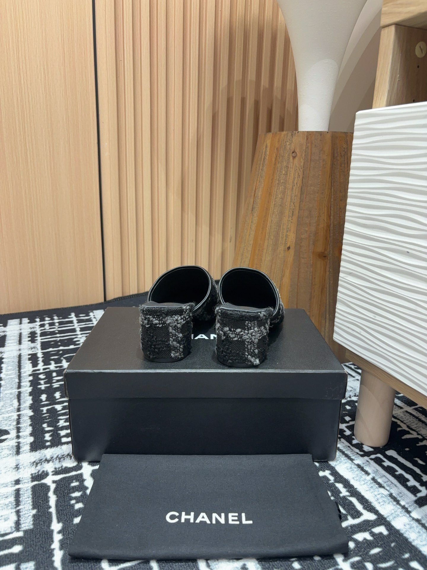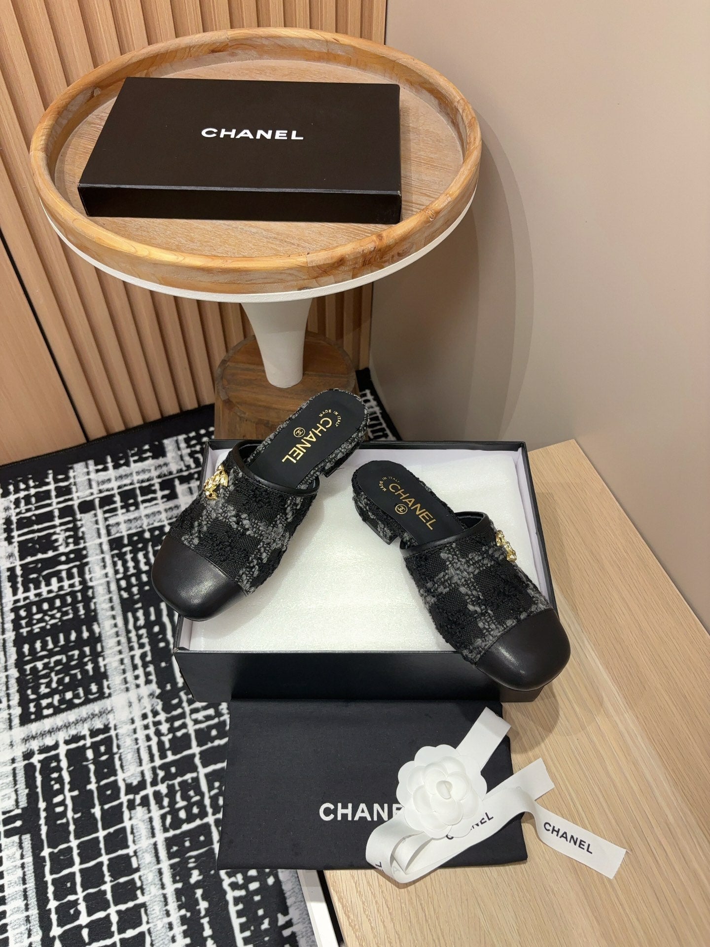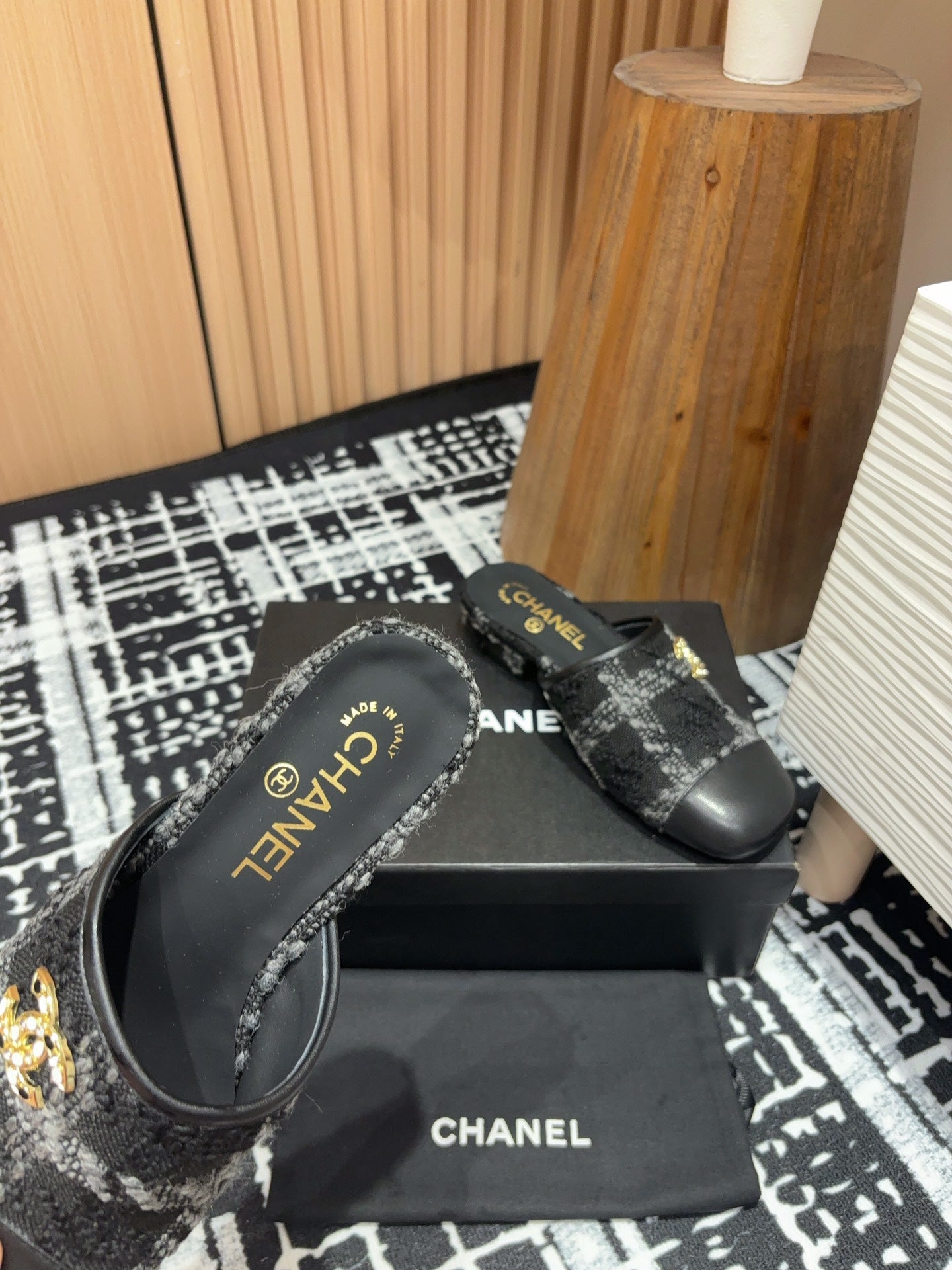 CC Slippers Black Wool And Calfskin