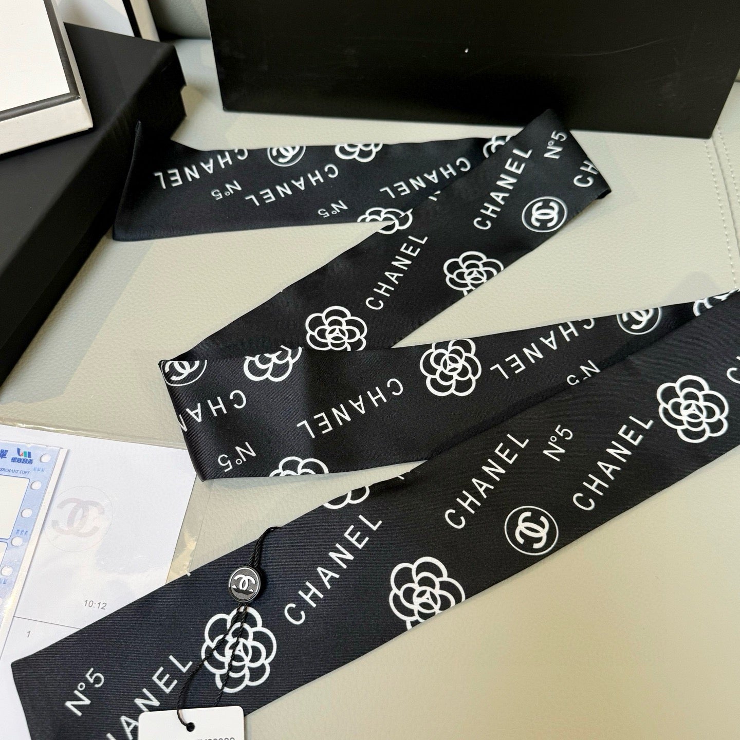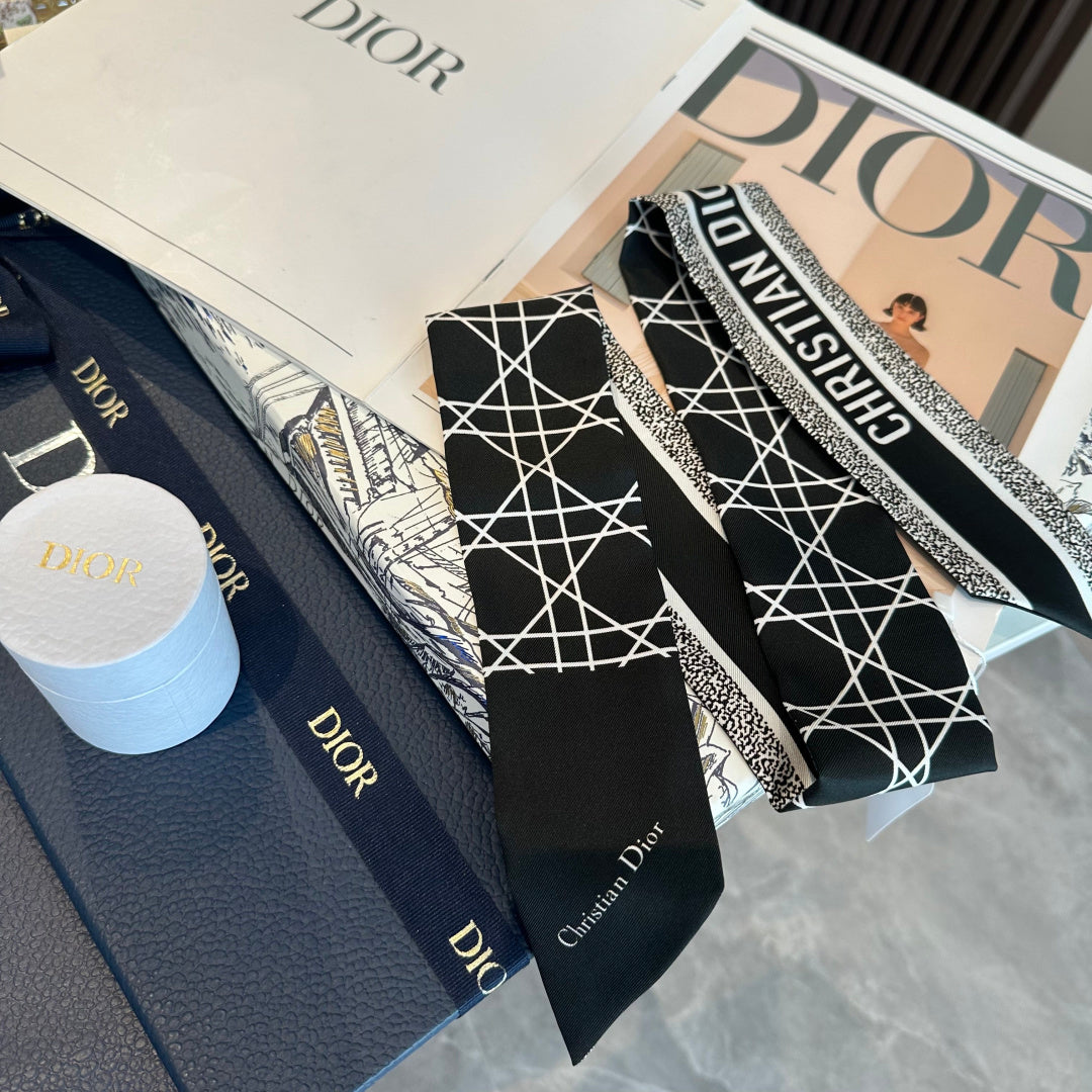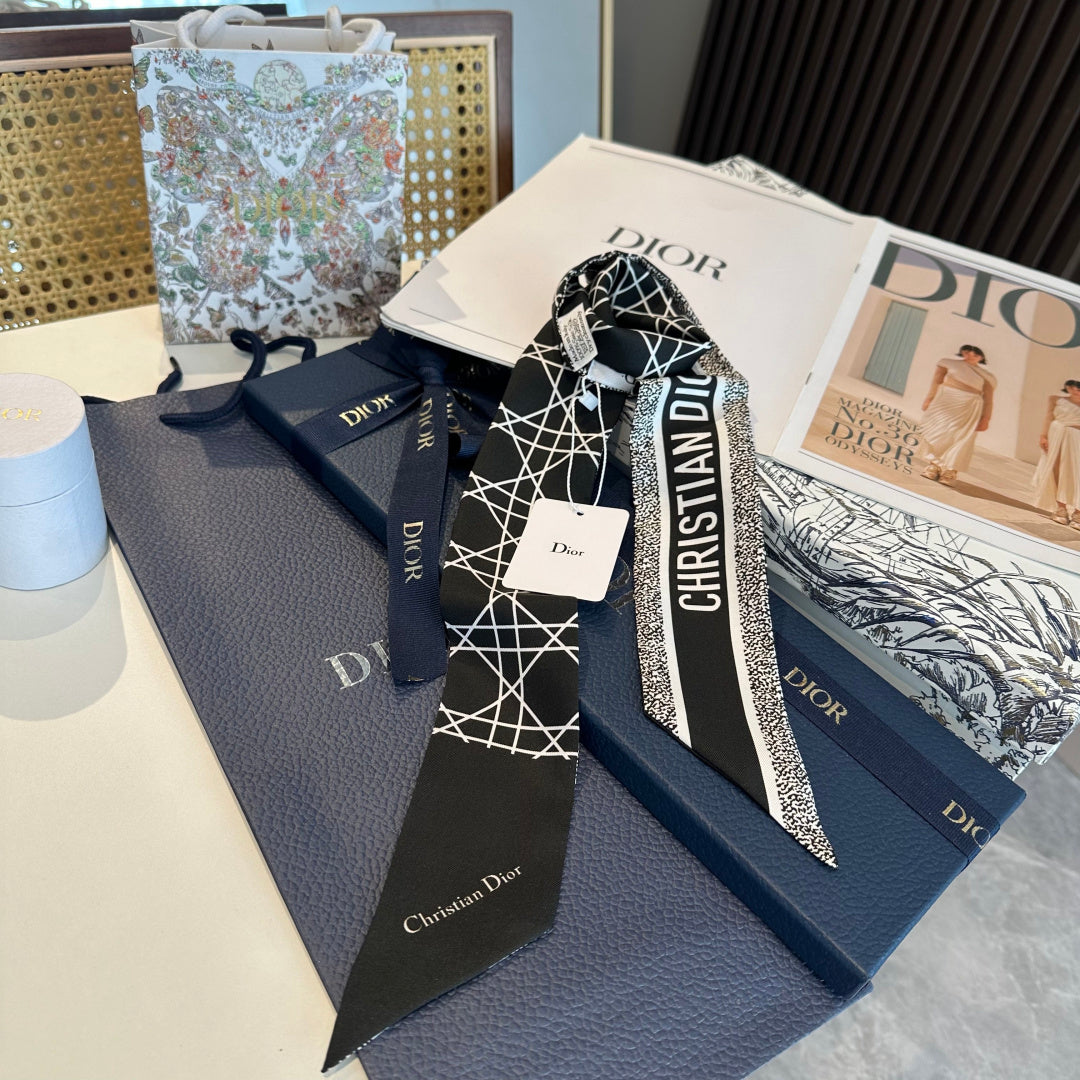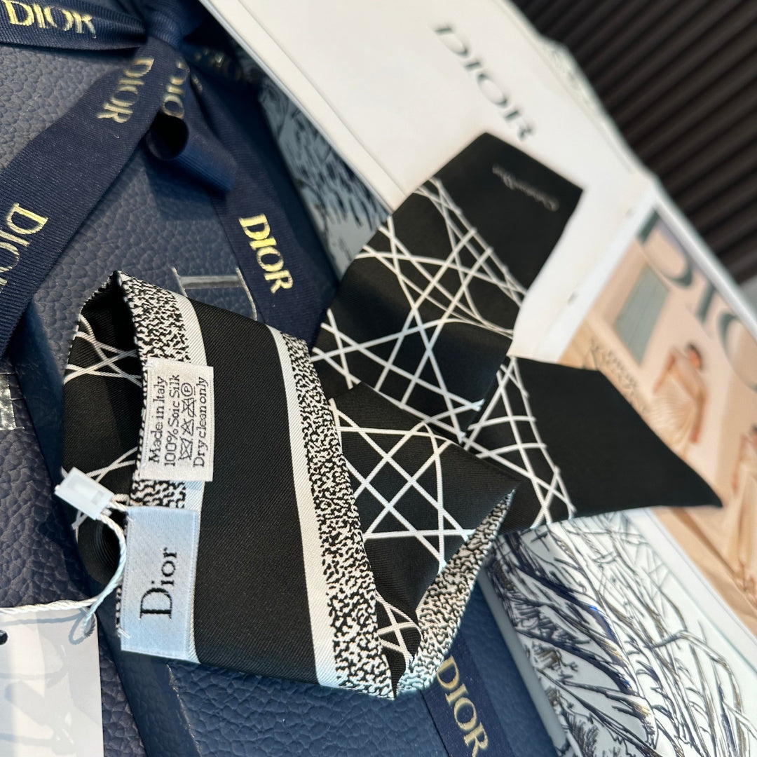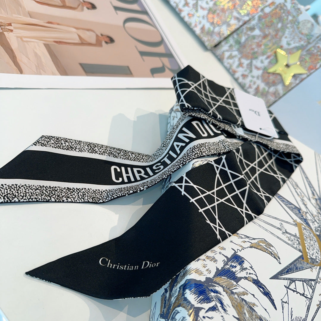 CC Twilly Mini Scarf 120cm Black White Mulberry Silk 949113