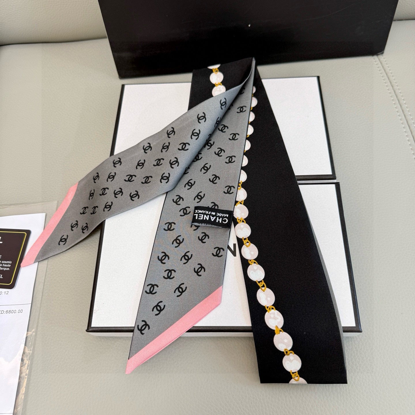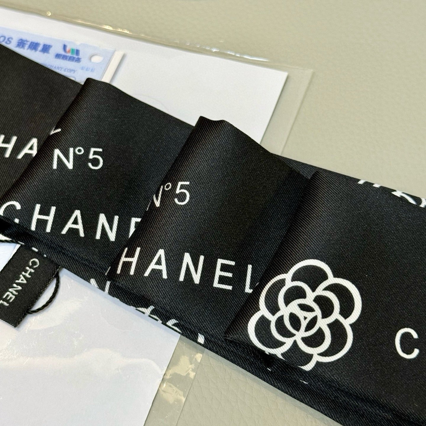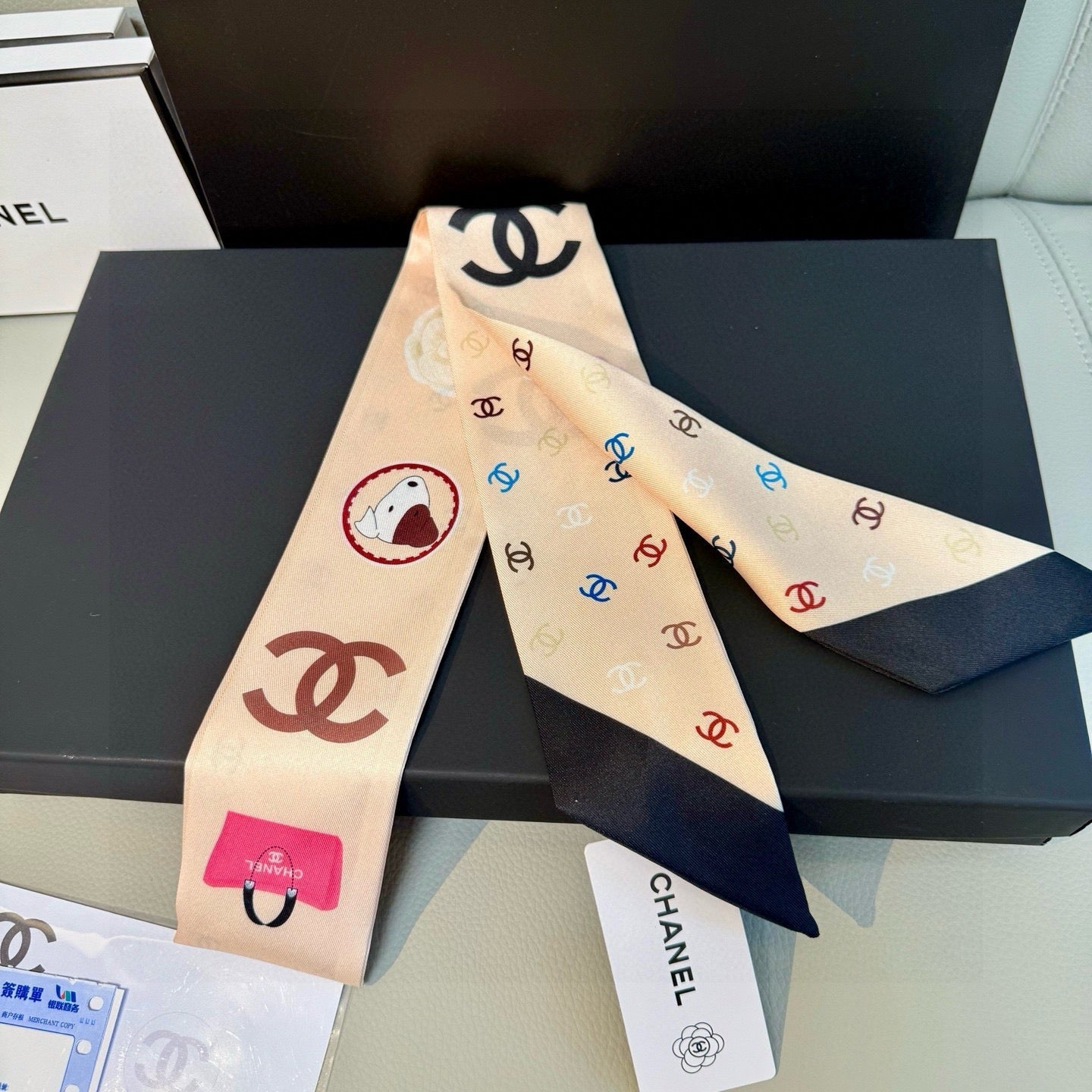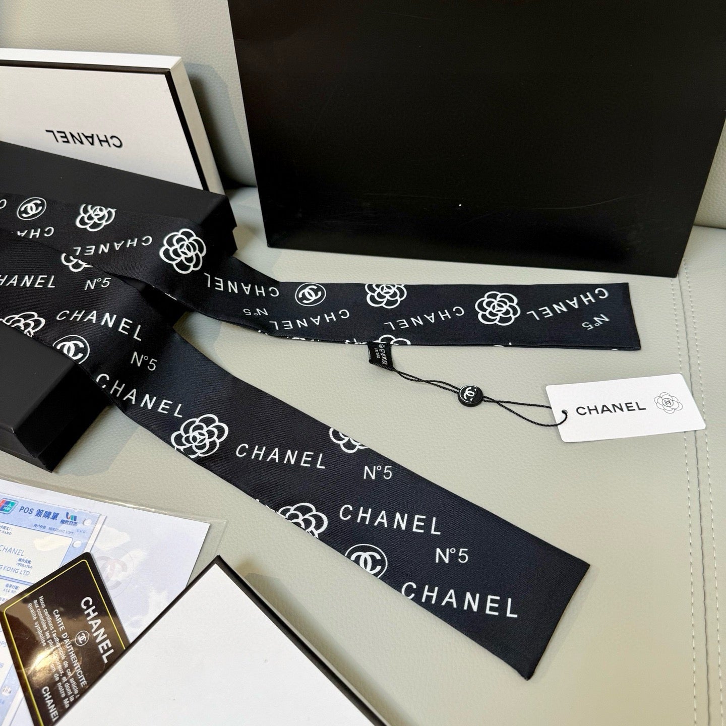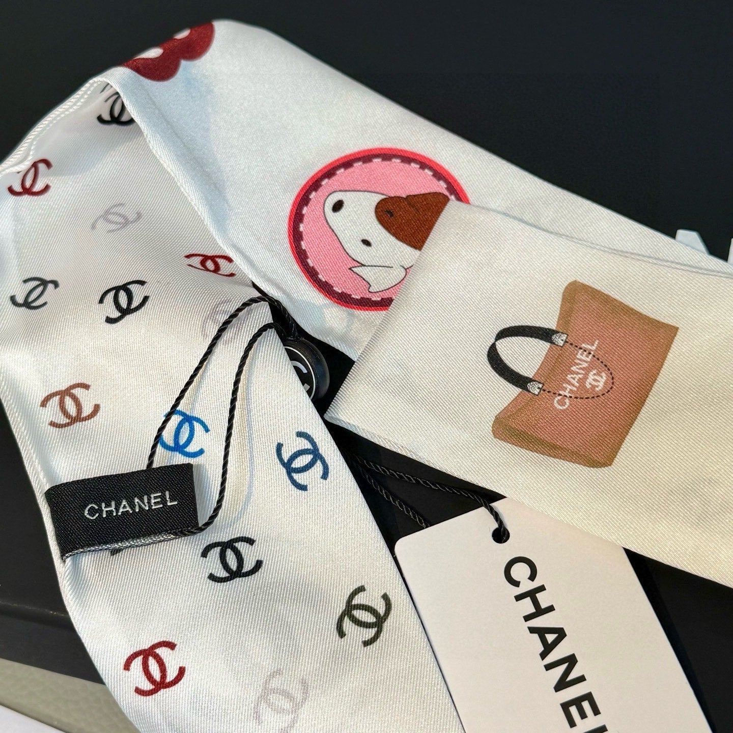 CC Twilly Mini Scarf 120cm Black White Mulberry Silk 949113