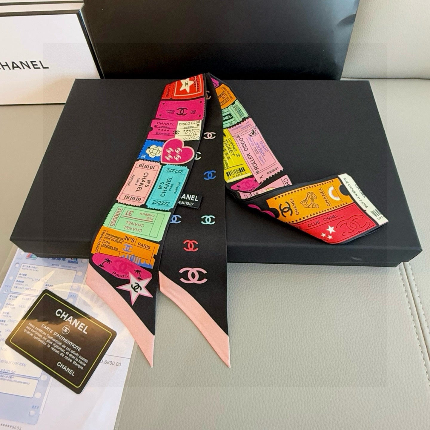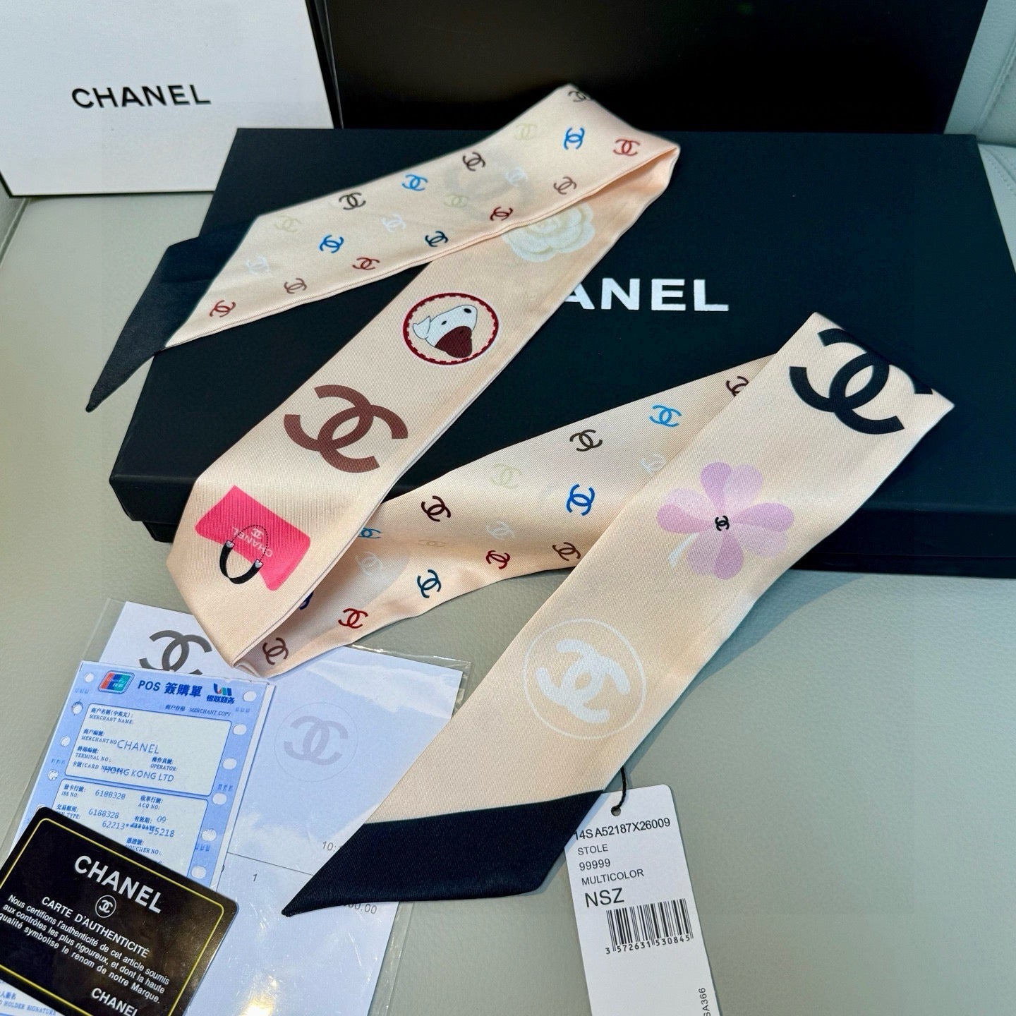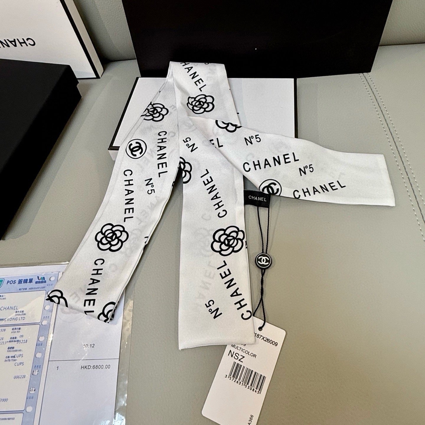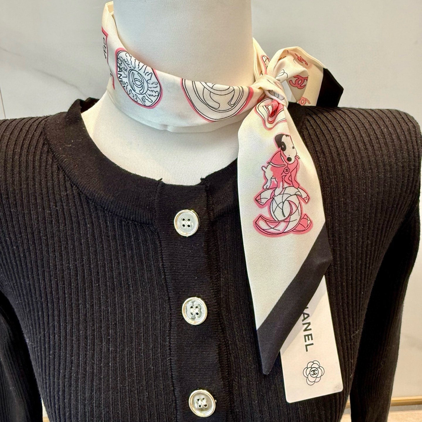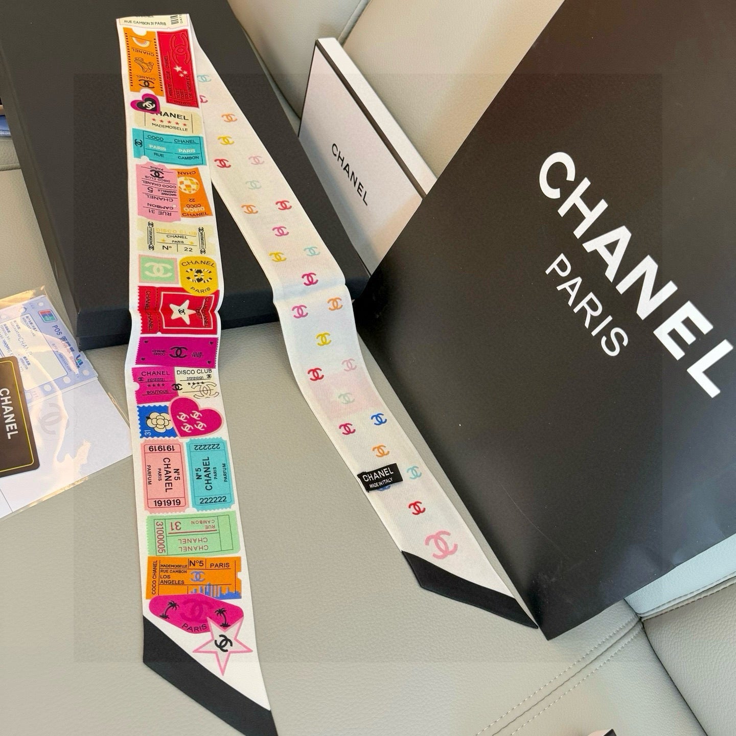 CC Twilly Mini Scarf 120cm Black White Mulberry Silk 949113
