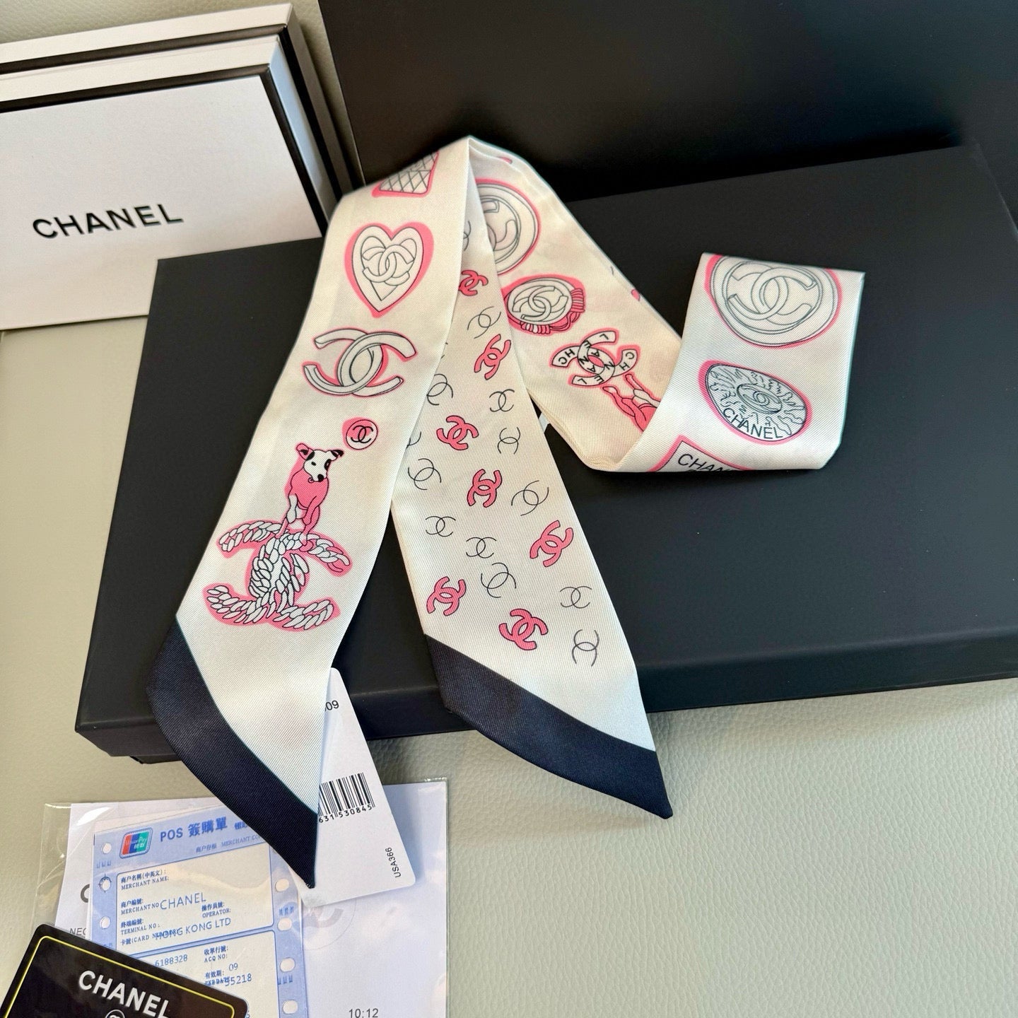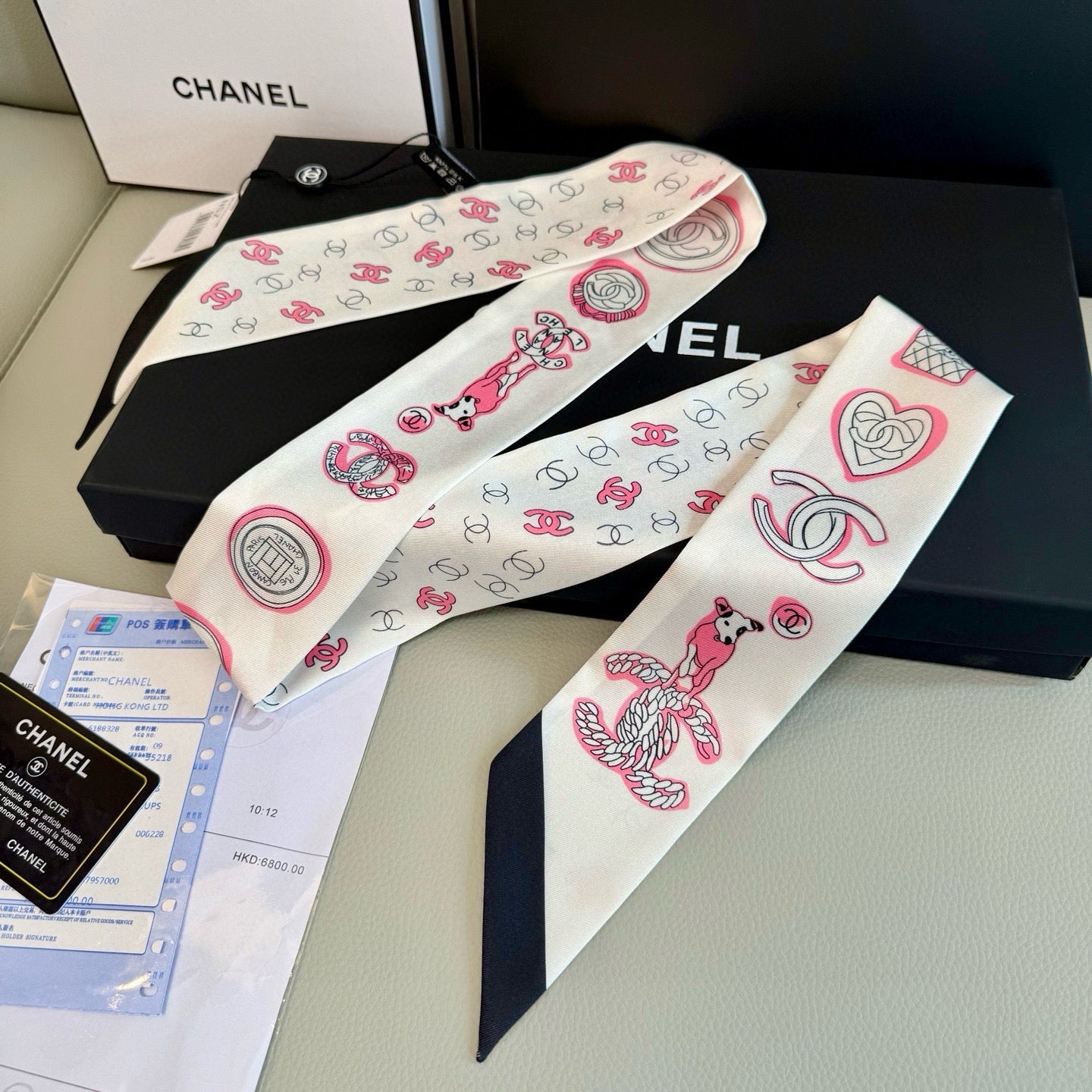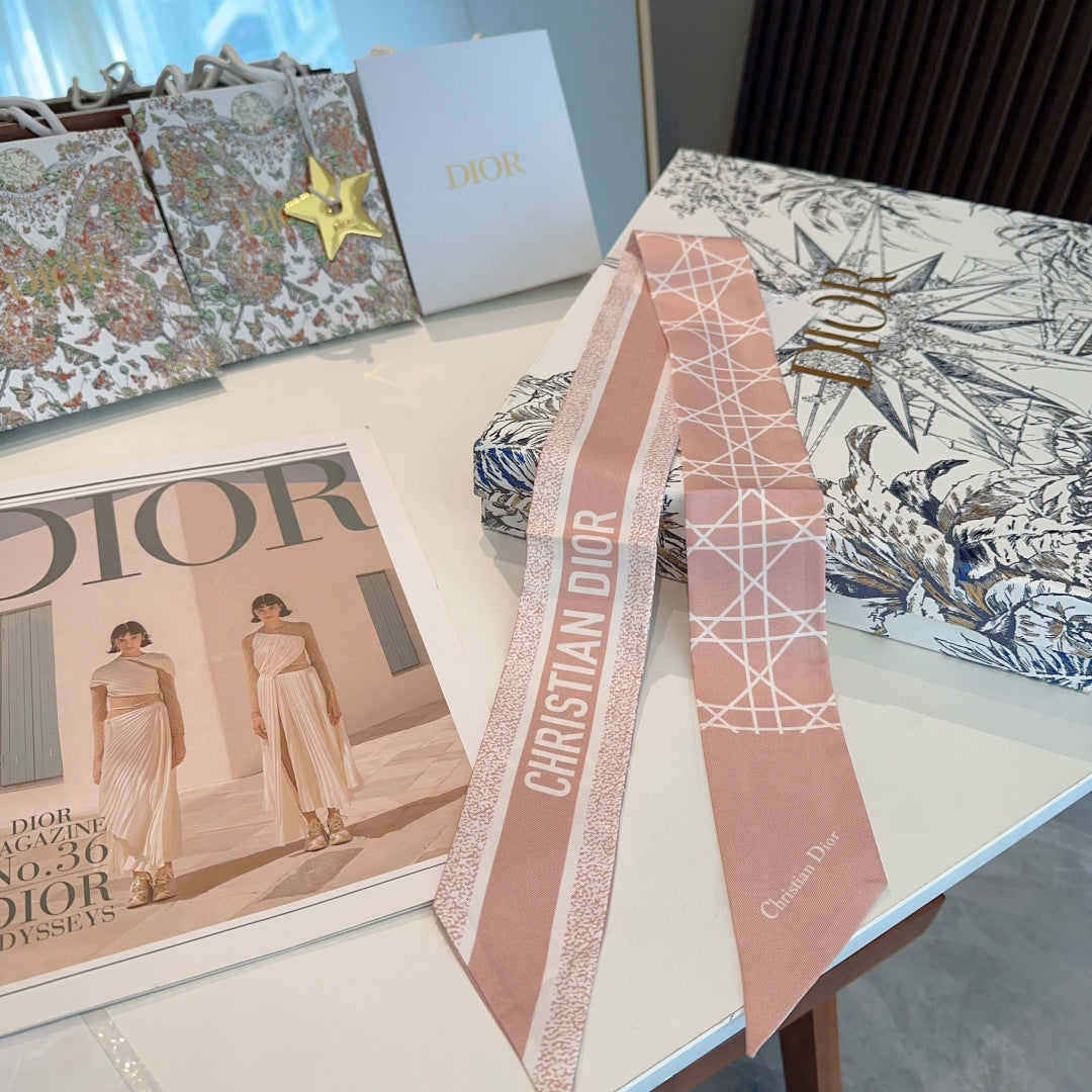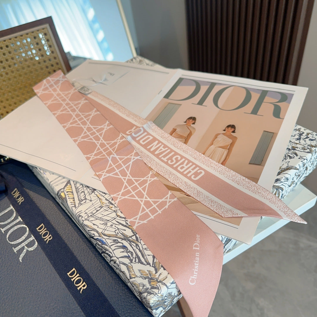 CC Twilly Mini Scarf 120cm White Pink Mulberry Silk 924596