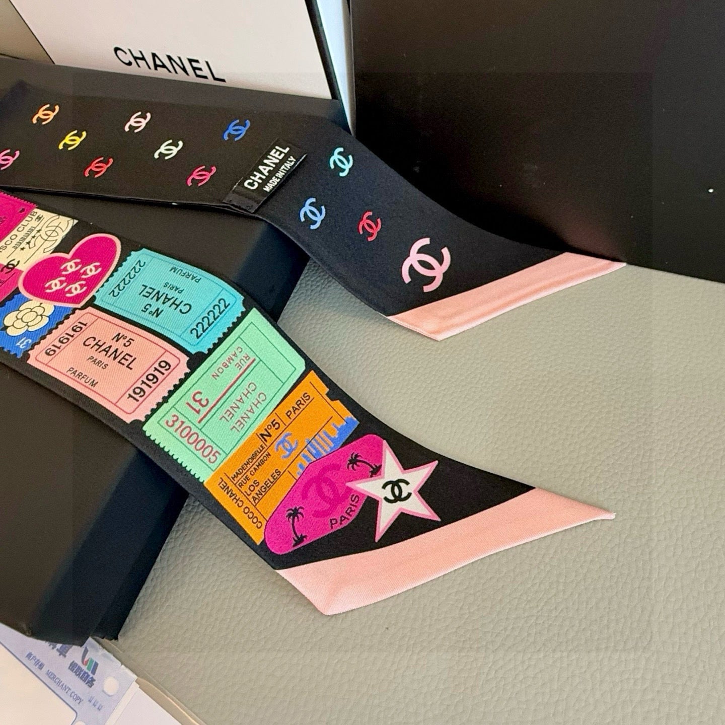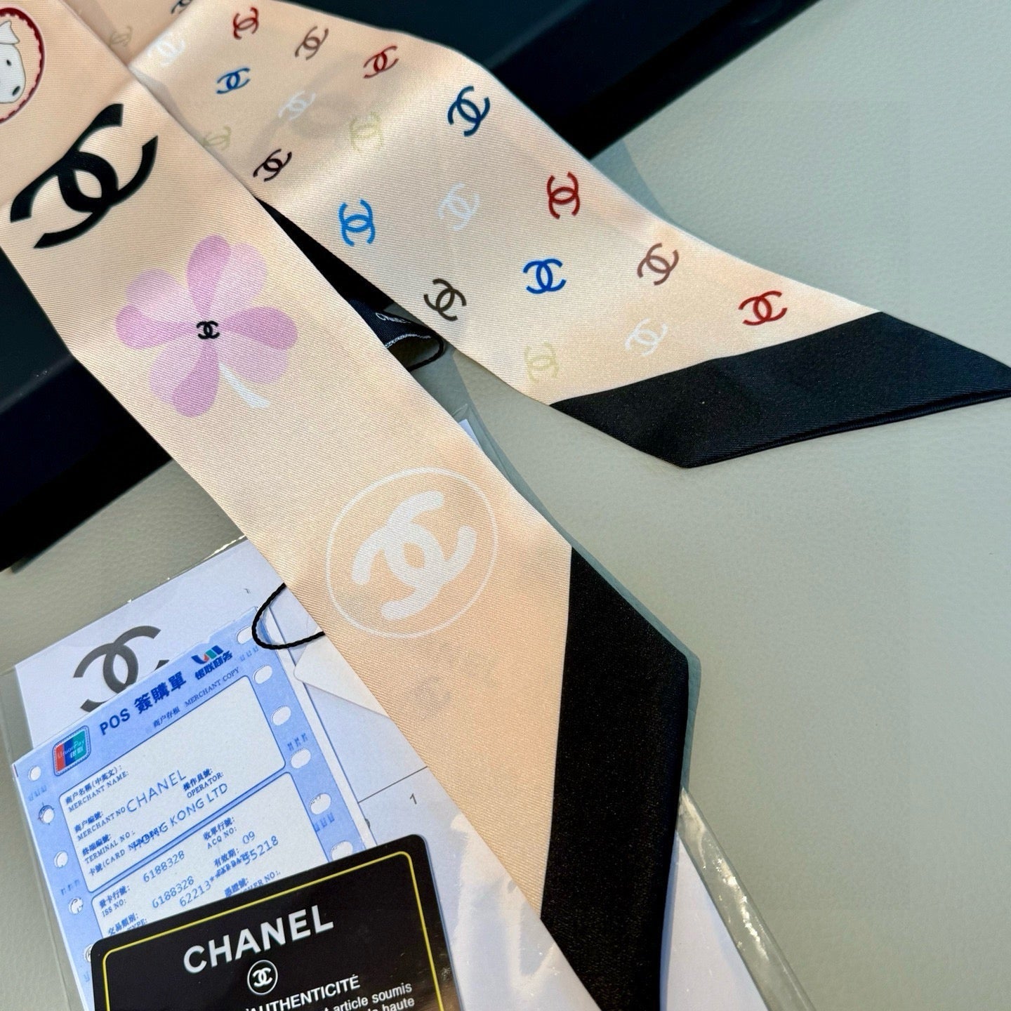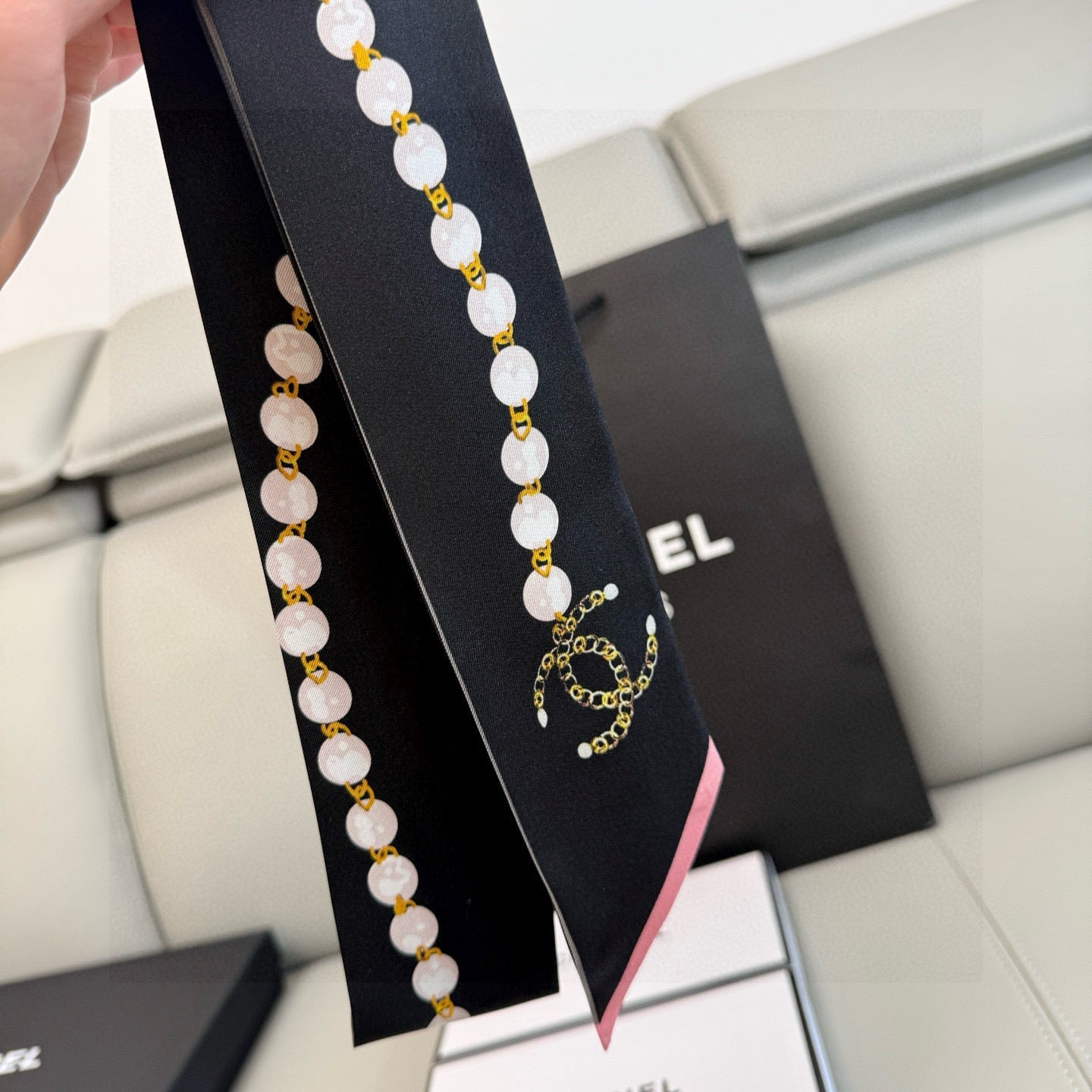 CC Twilly Mini Scarf 120cm White Pink Mulberry Silk 924596