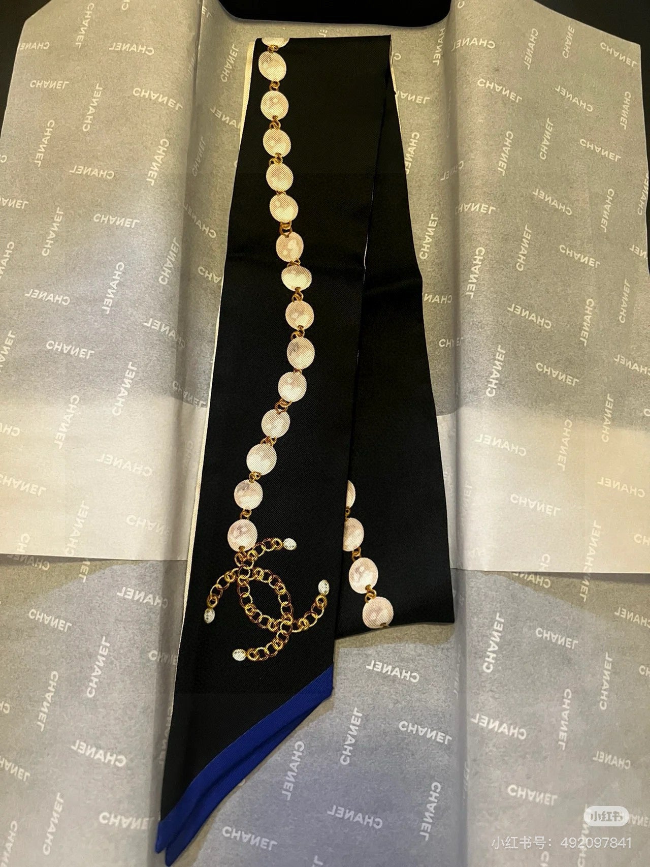 CC Twilly Mini Star 120cm Black White Blue Mulberry Silk 935261