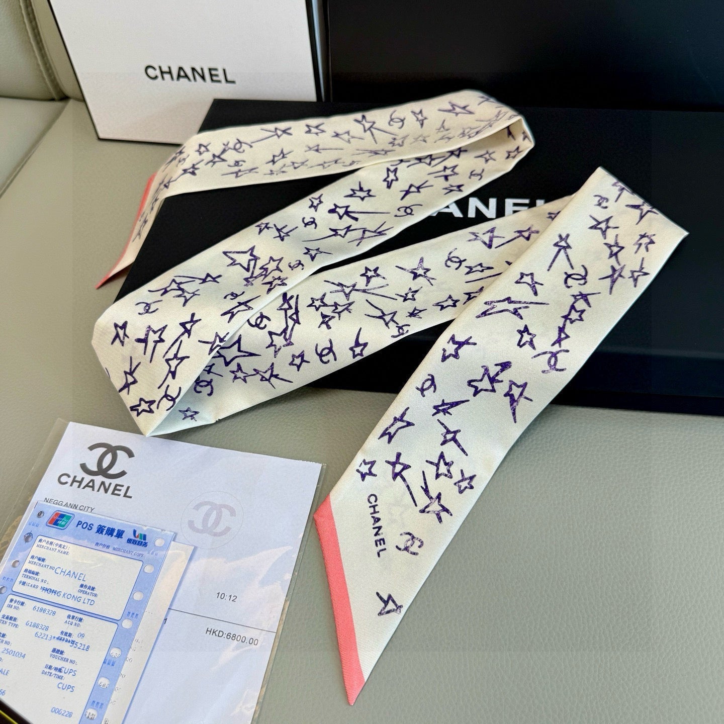CC Twilly Mini Star Scarf 120cm White Mulberry Silk 945723