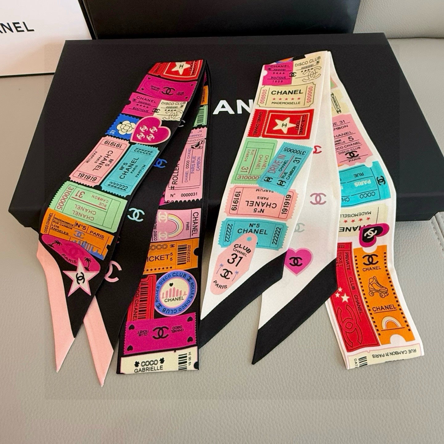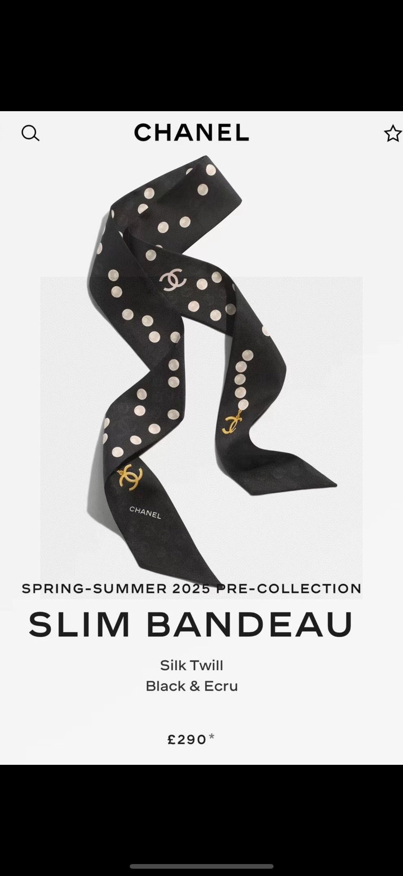 CC Twilly Mini Star 120cm Black White Mulberry Silk 941929