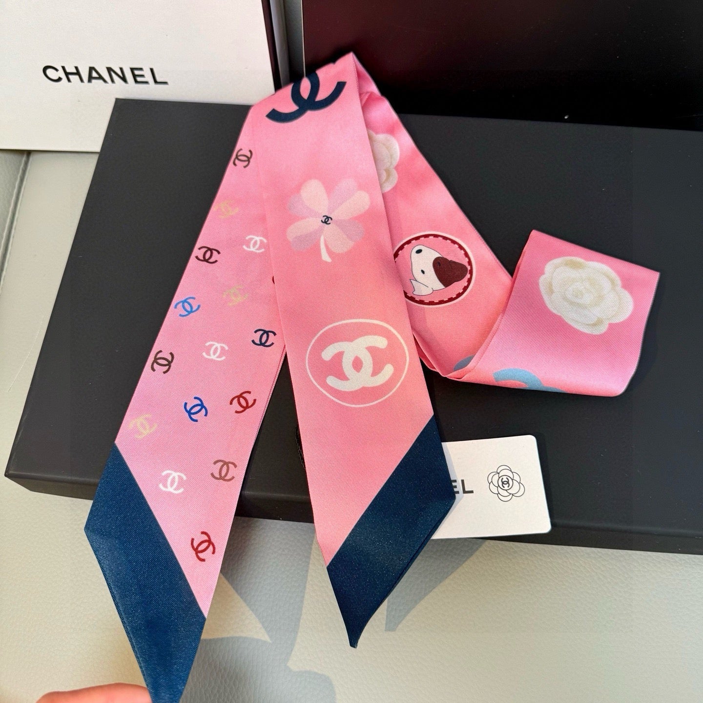CC Twilly Mini Scarf 120cm Navy Blue Pink Mulberry Silk 802153