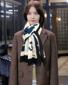 CC 25 Newest Design Scarf 200 CM In White Black Blue Cashmere 292965