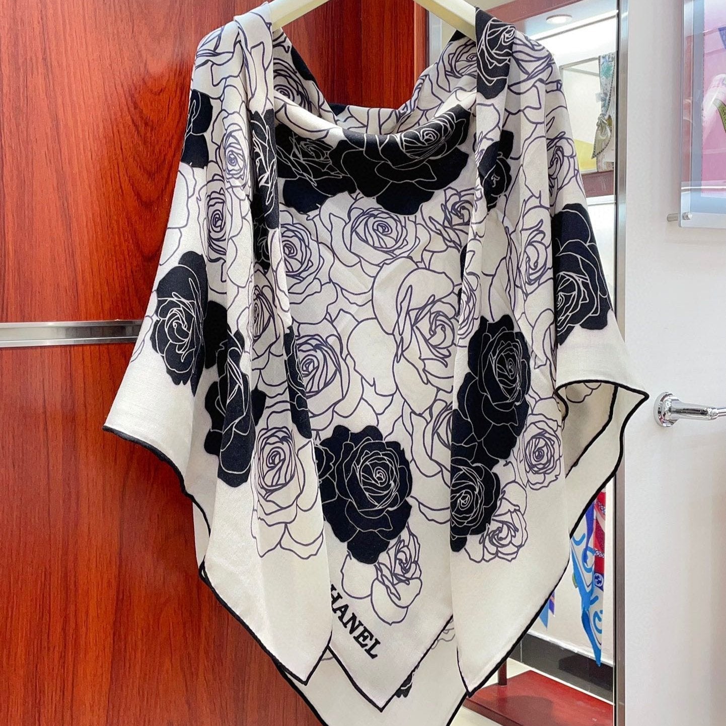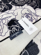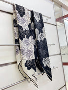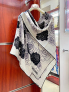 CC Square Scarf 140 CM In White Mix Black Small Flower Cashmere And Silk 342863