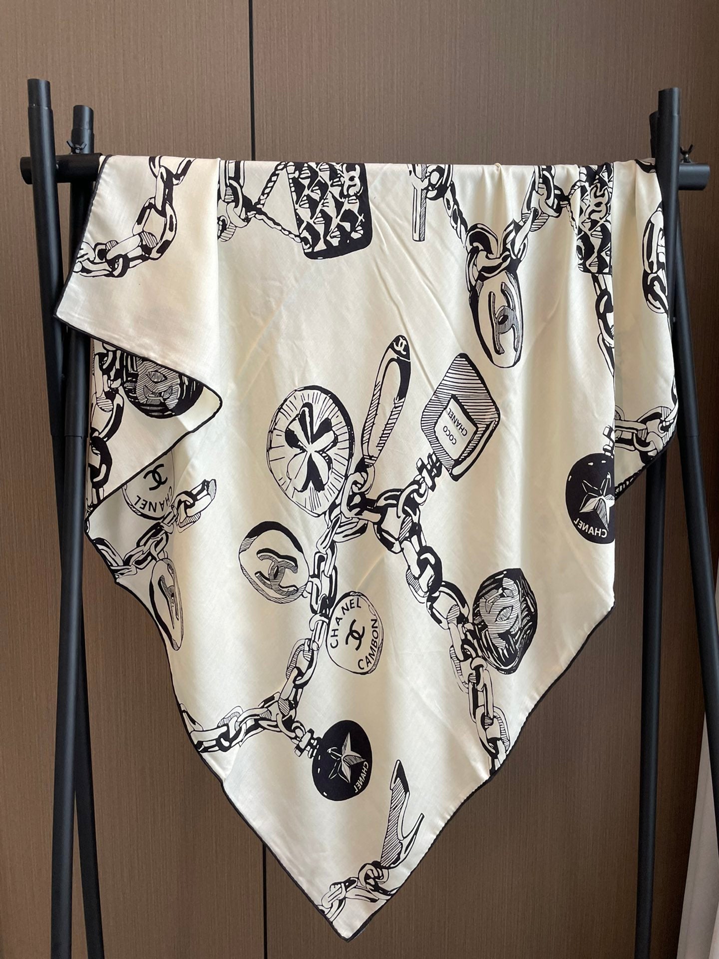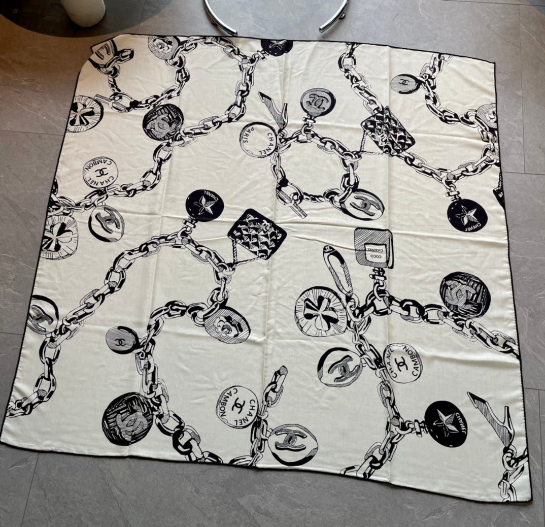 CC Square Scarf 140 CM In White Mix Yellow Black Velvet Fabric 420129