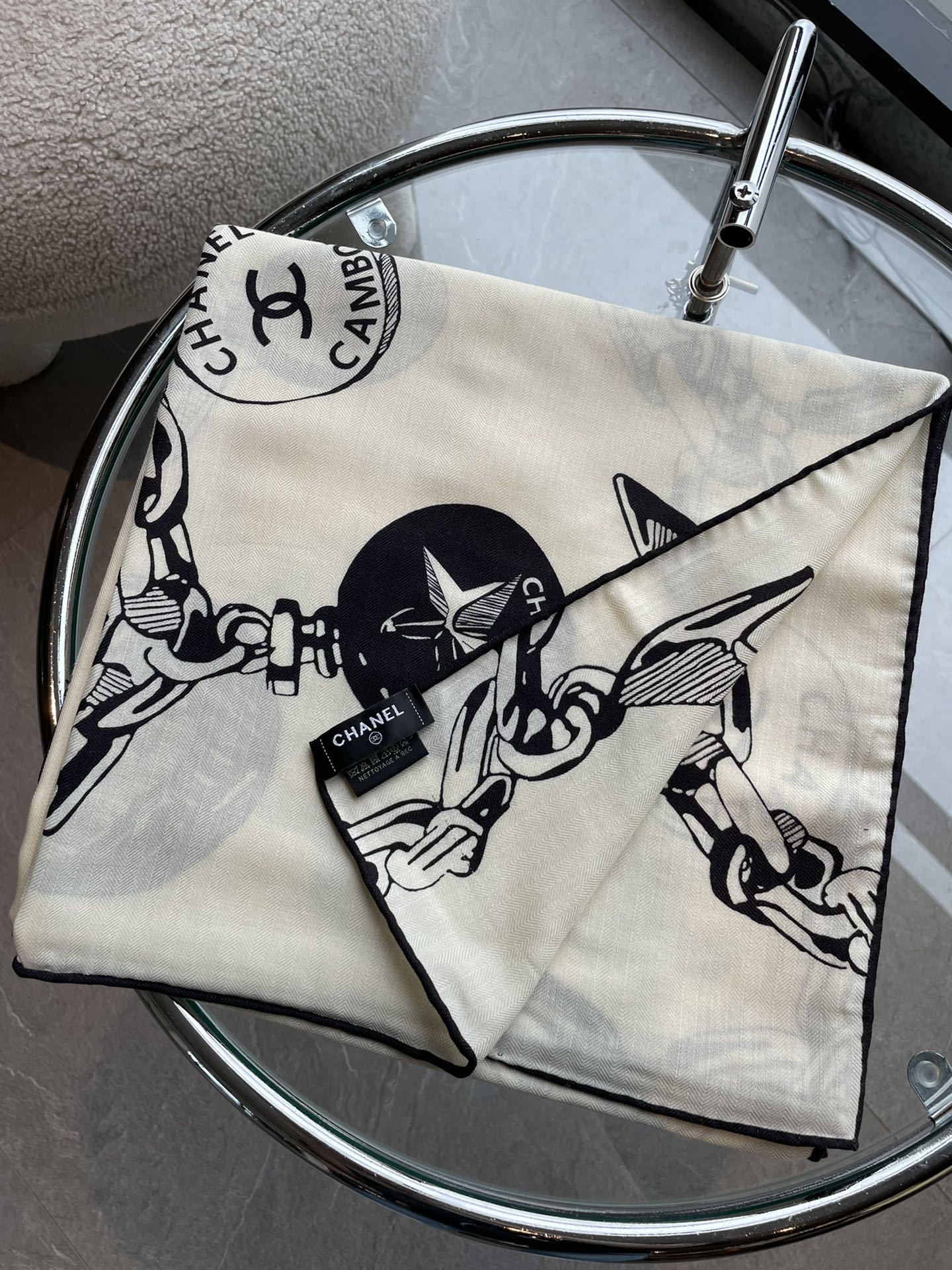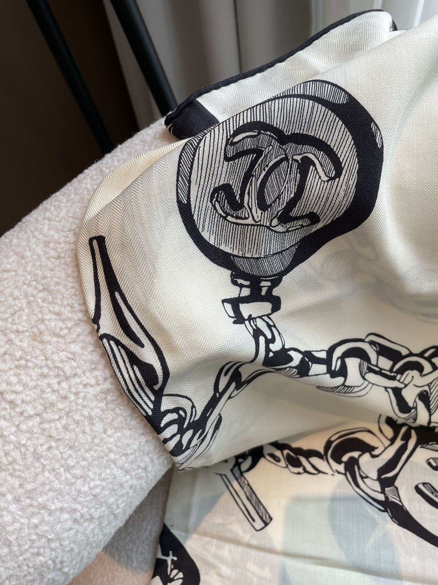 CC Square Scarf 140 CM In White Cashmere Silk 422703