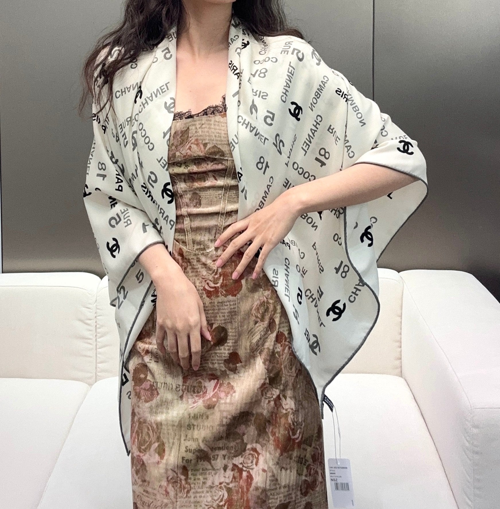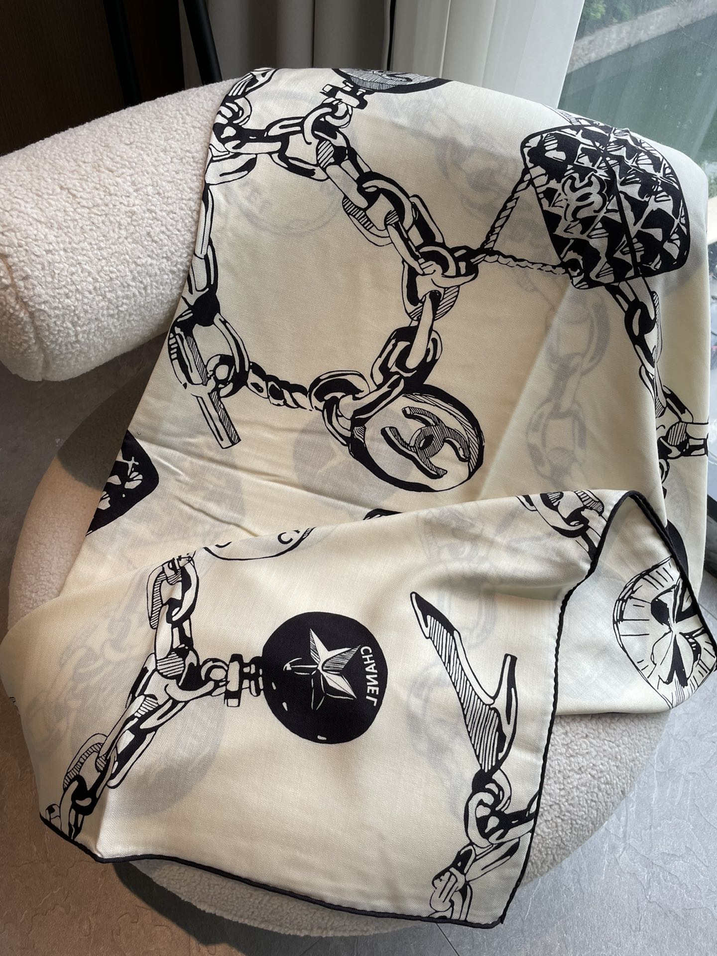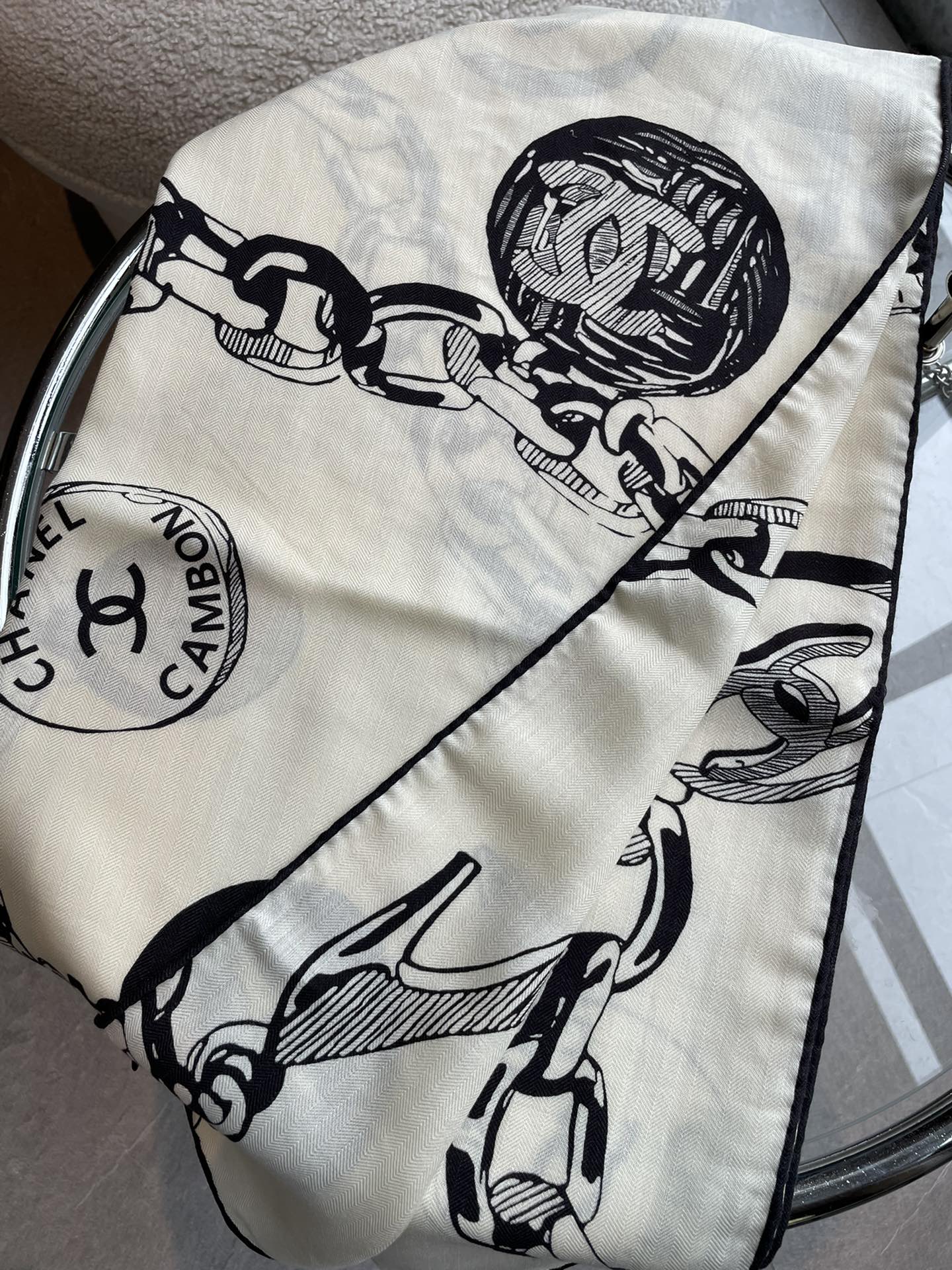 CC Scarf 185 CM White Black Cashmere Silk 418401