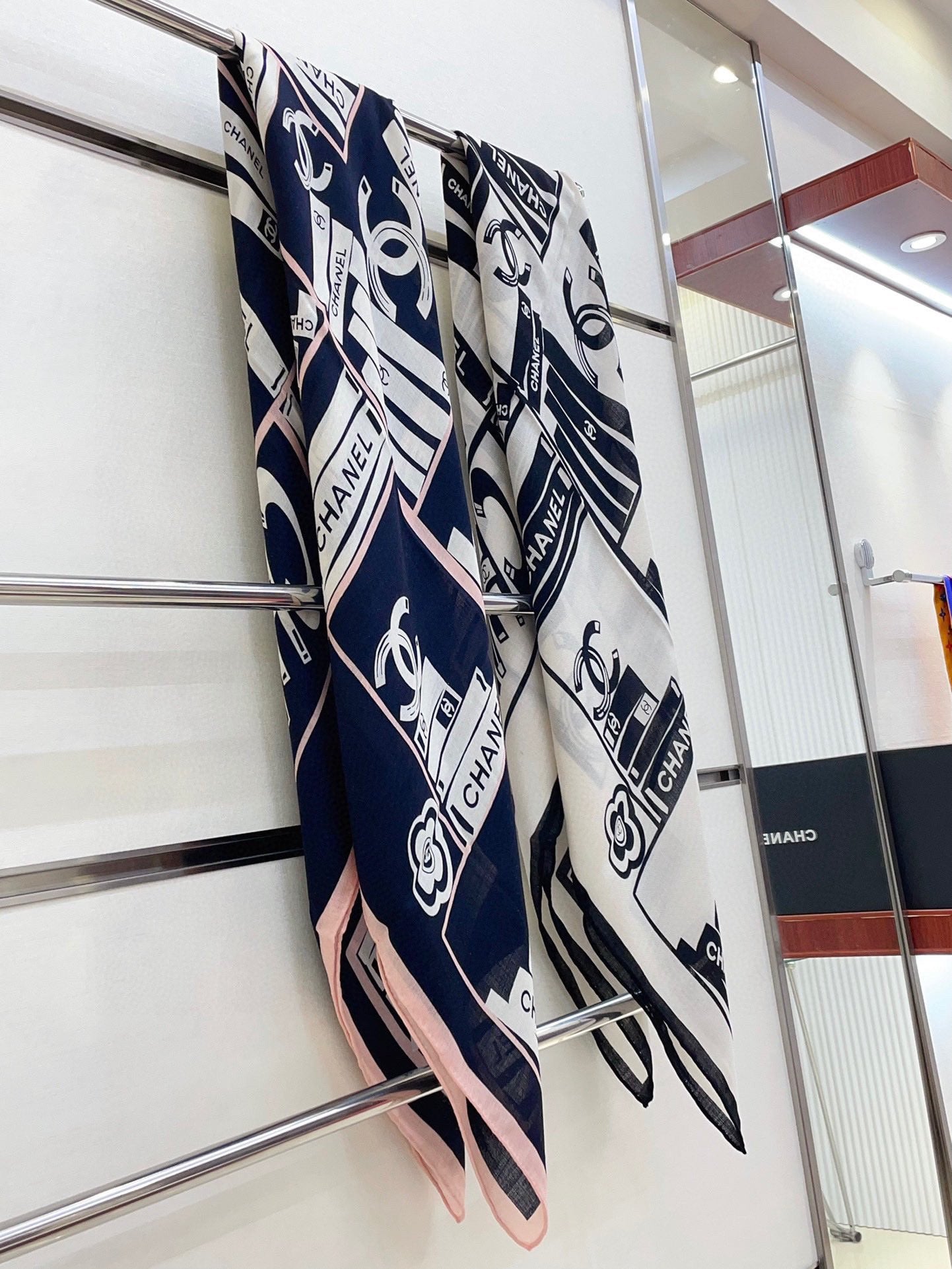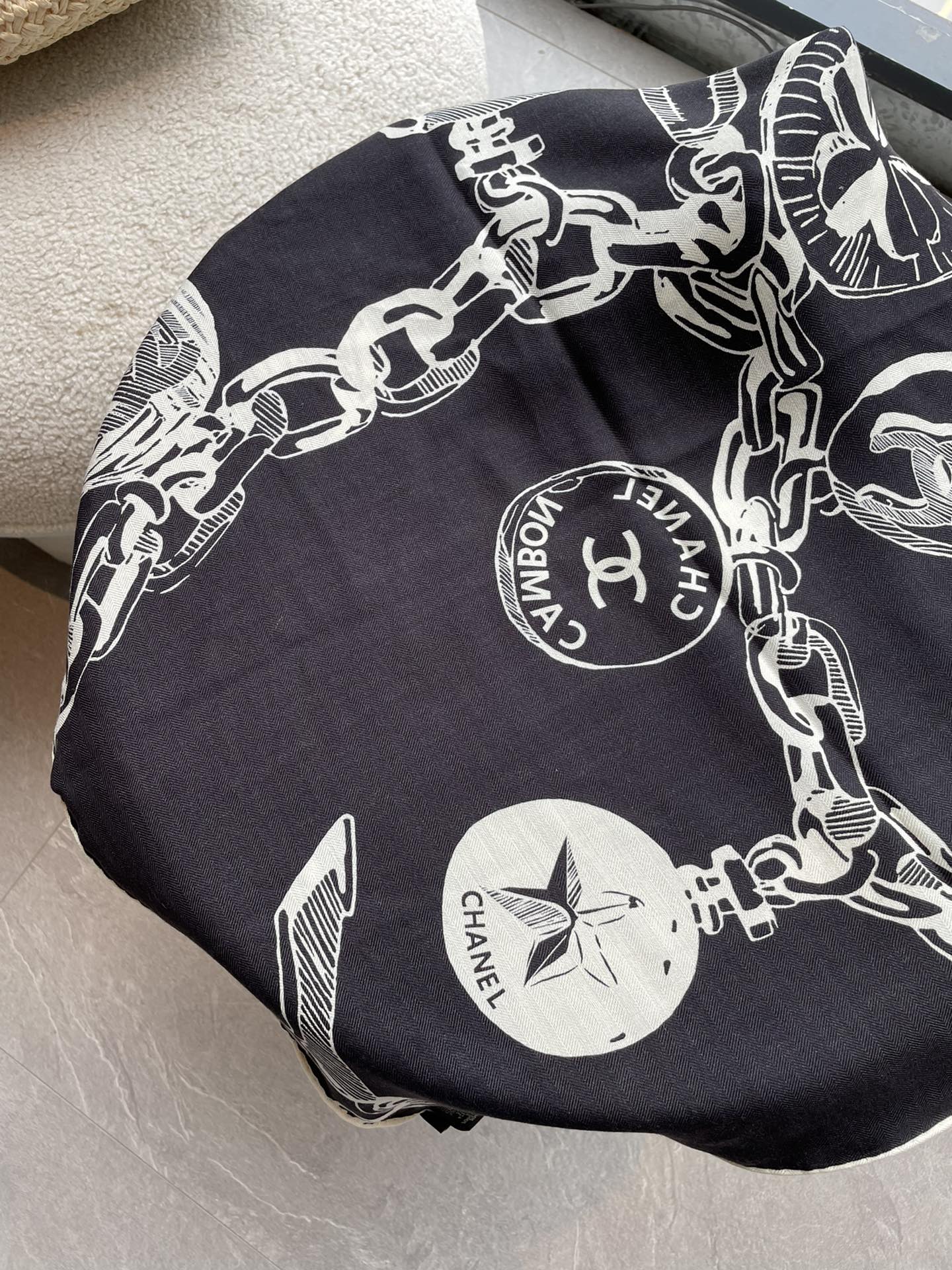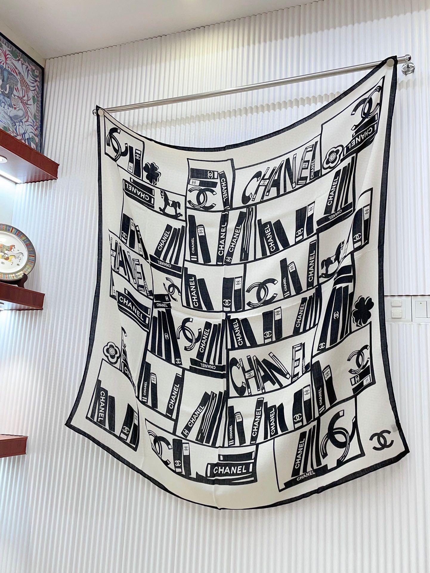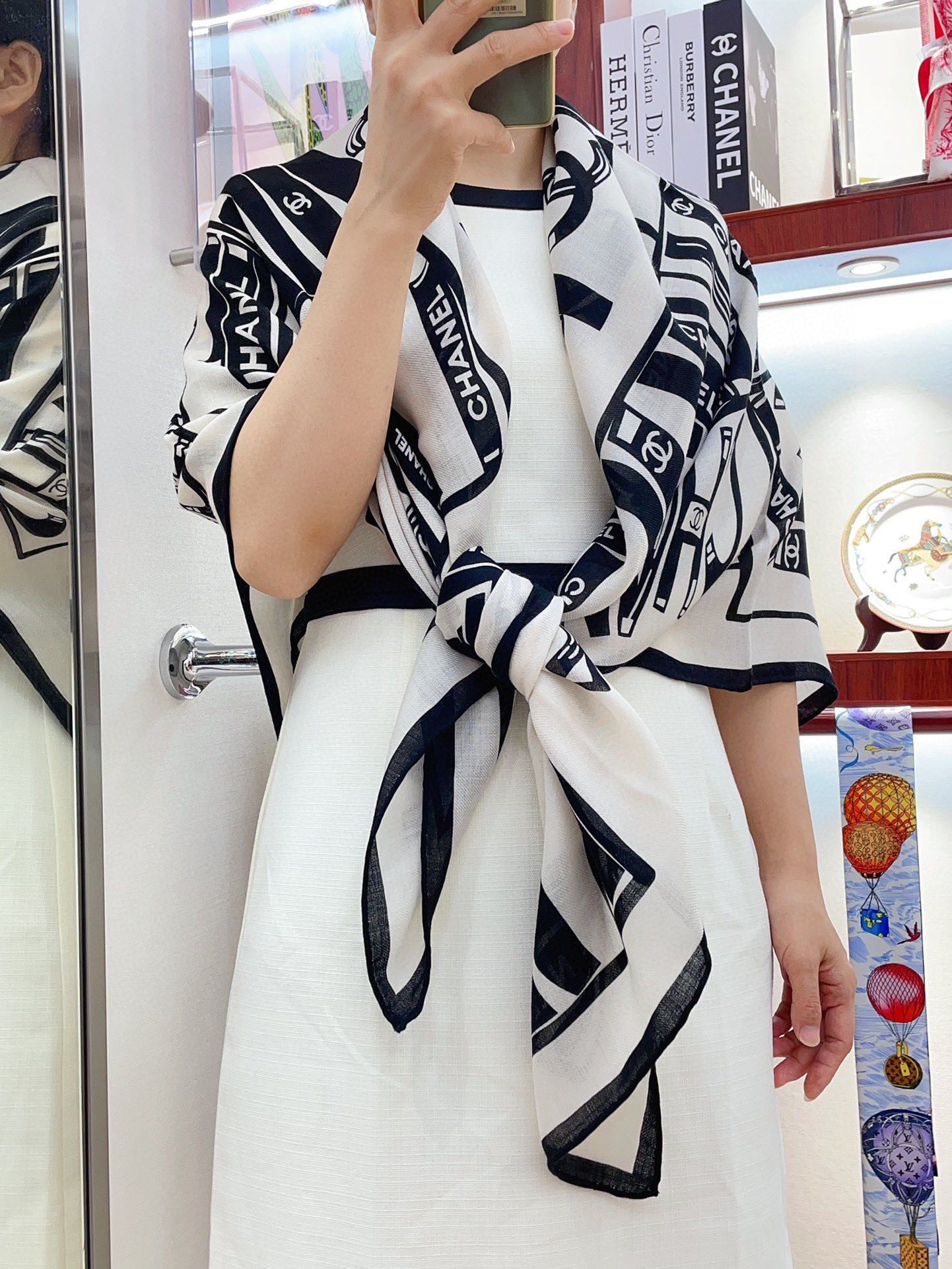 CC Scarf 185 CM White Black Cashmere Silk 418401