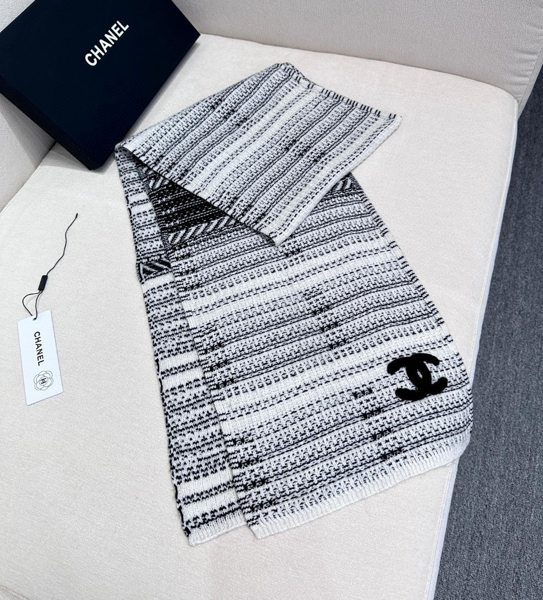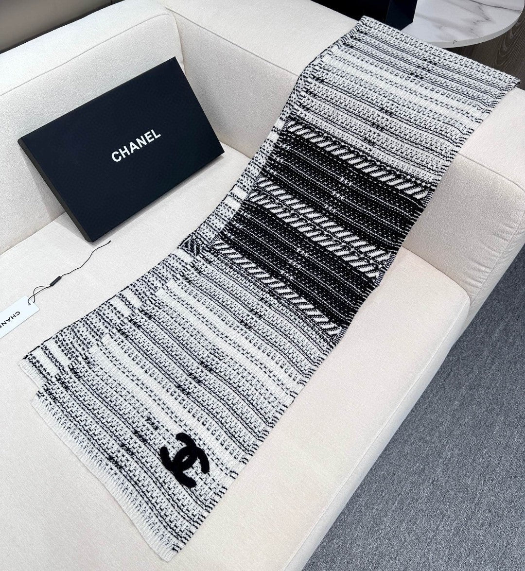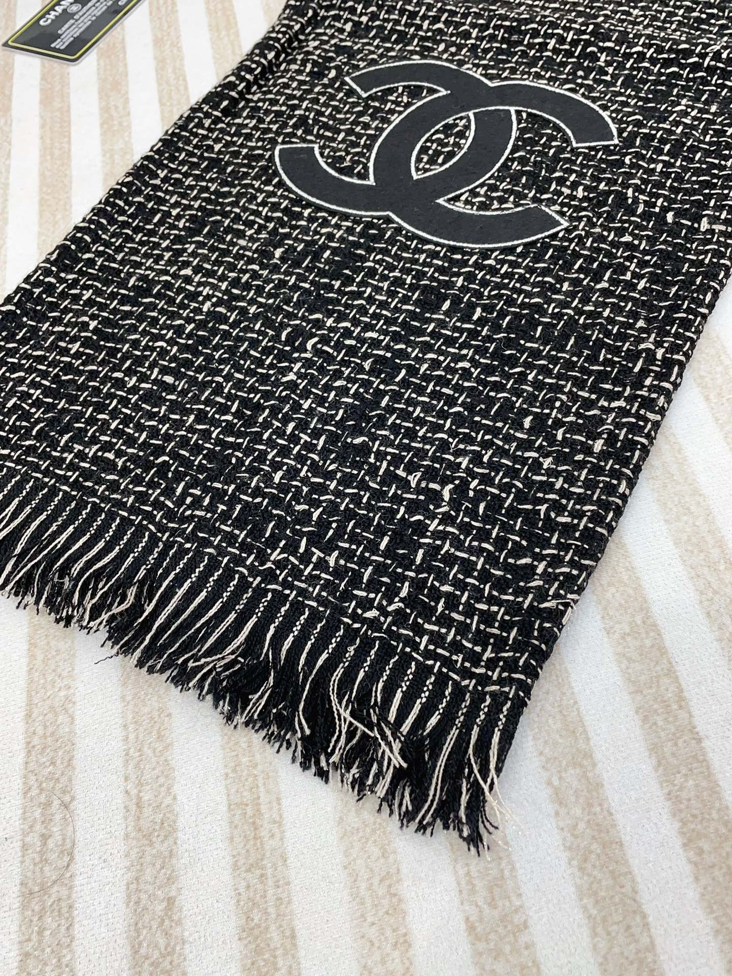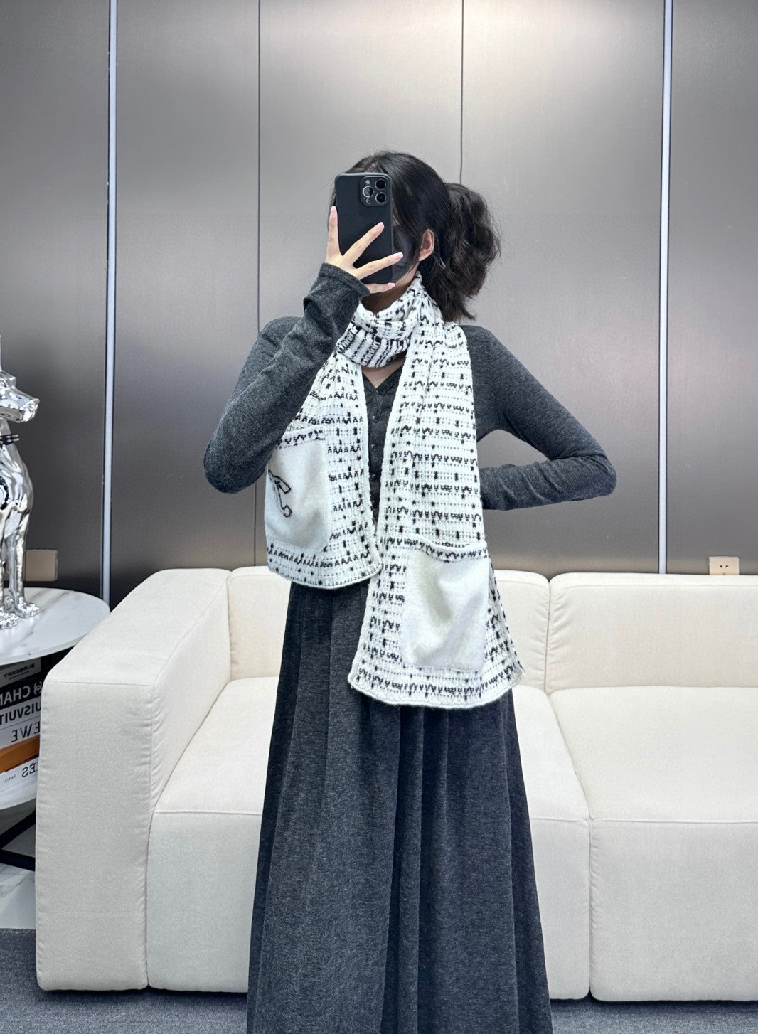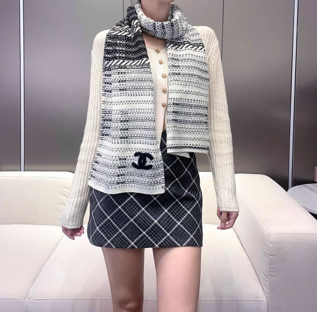 CC Scarf 195 CM White Mix Black Cashmere And Wool 418442