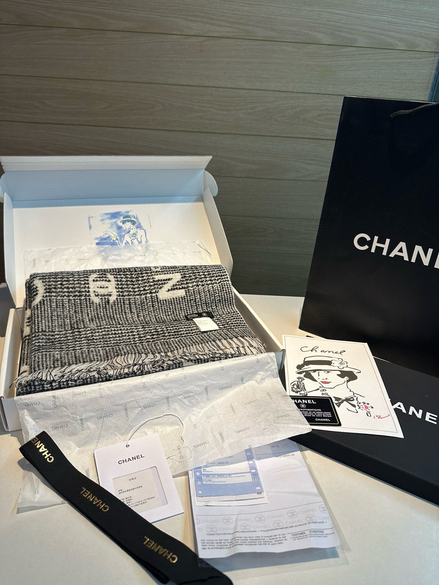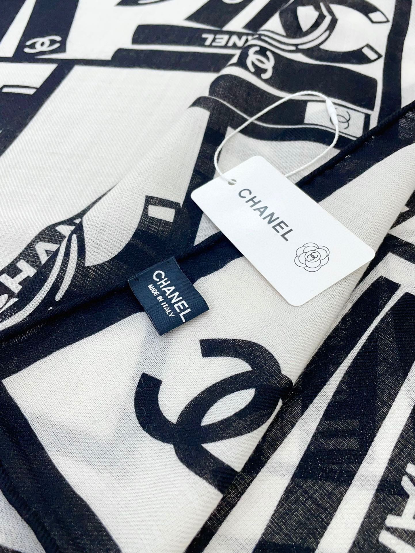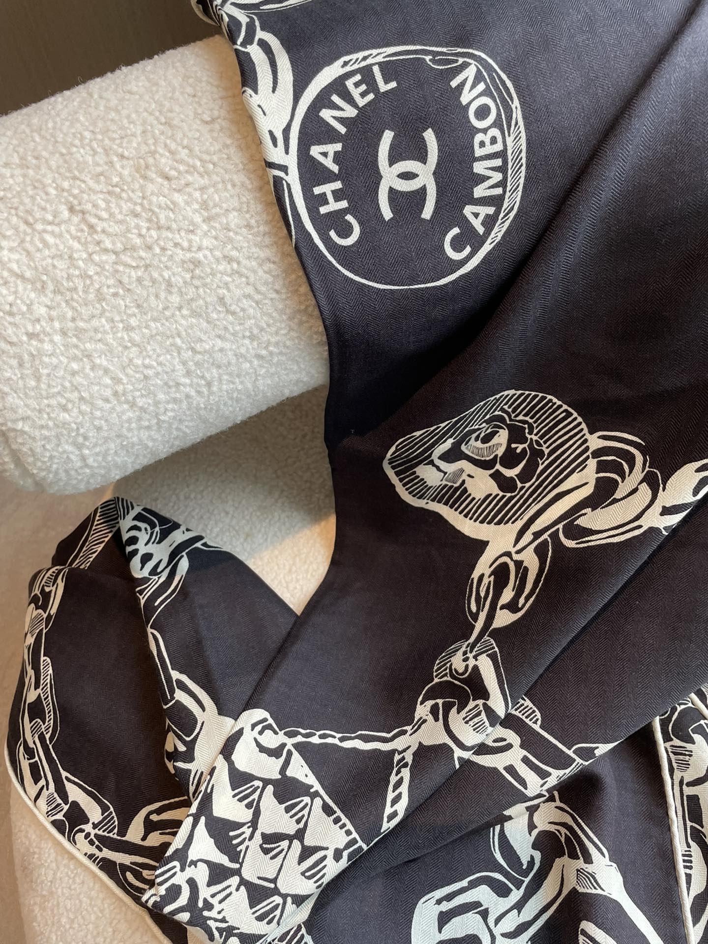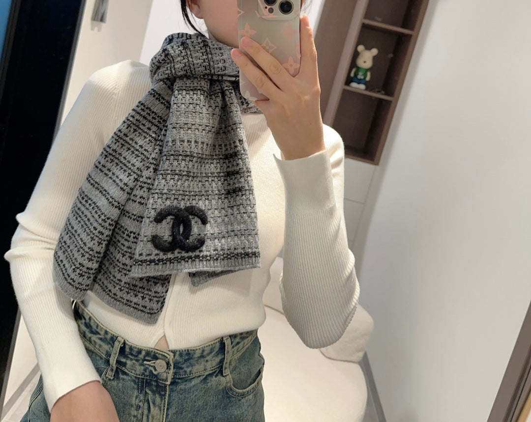 CC Scarf 195 CM White Mix Black Cashmere And Wool 418442