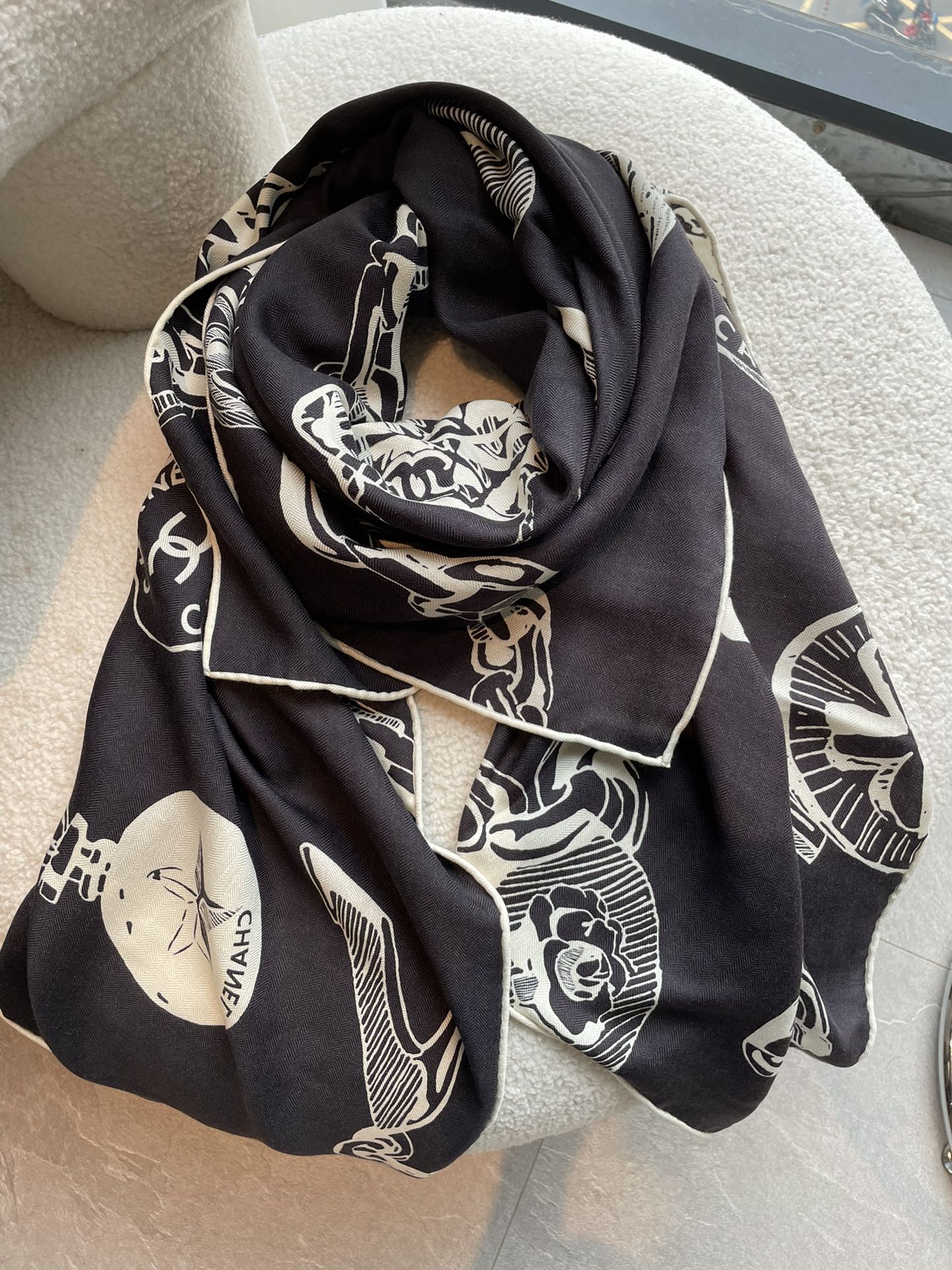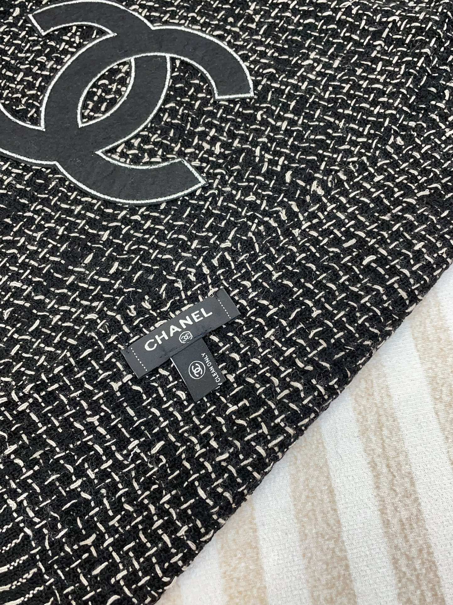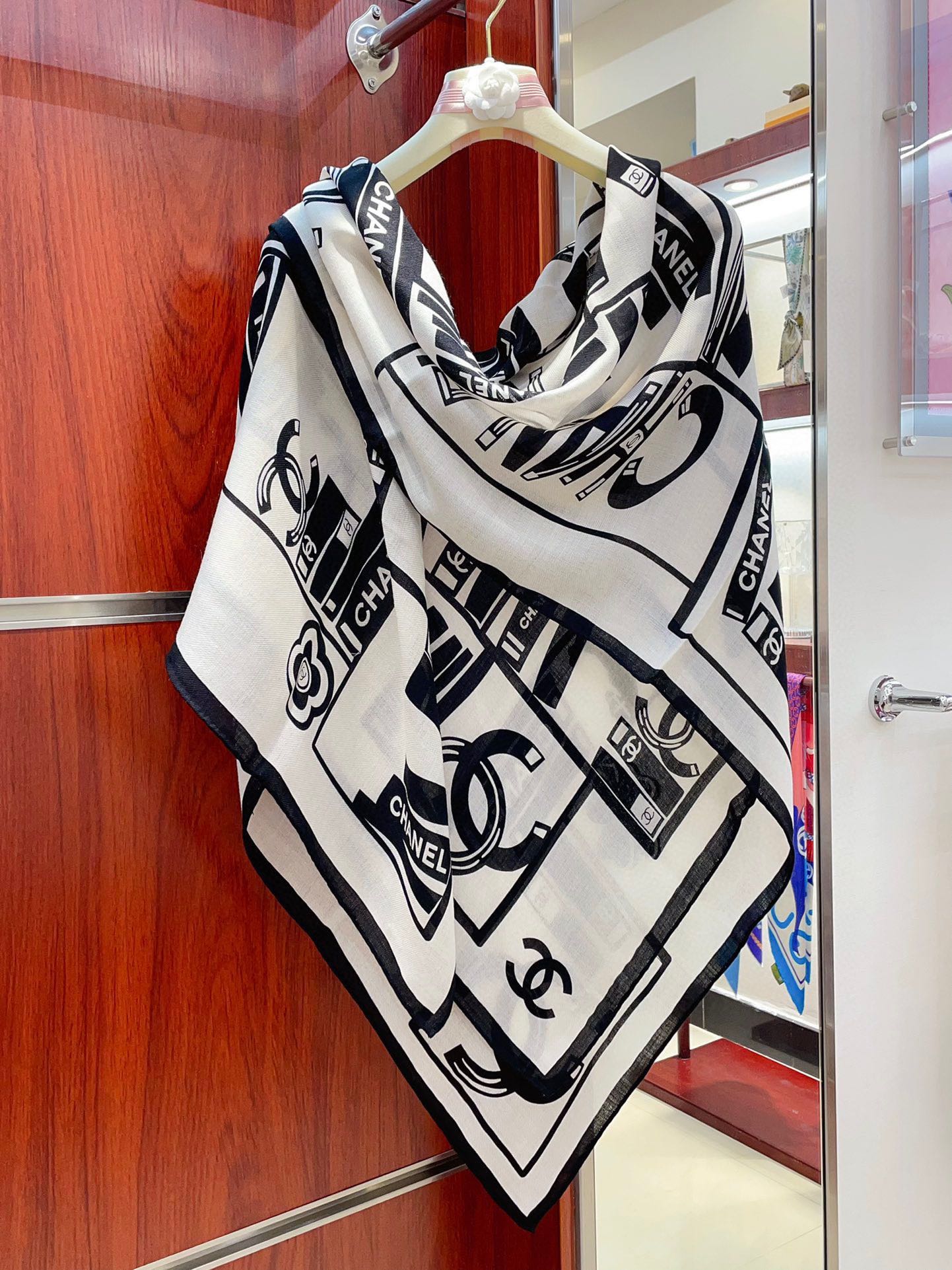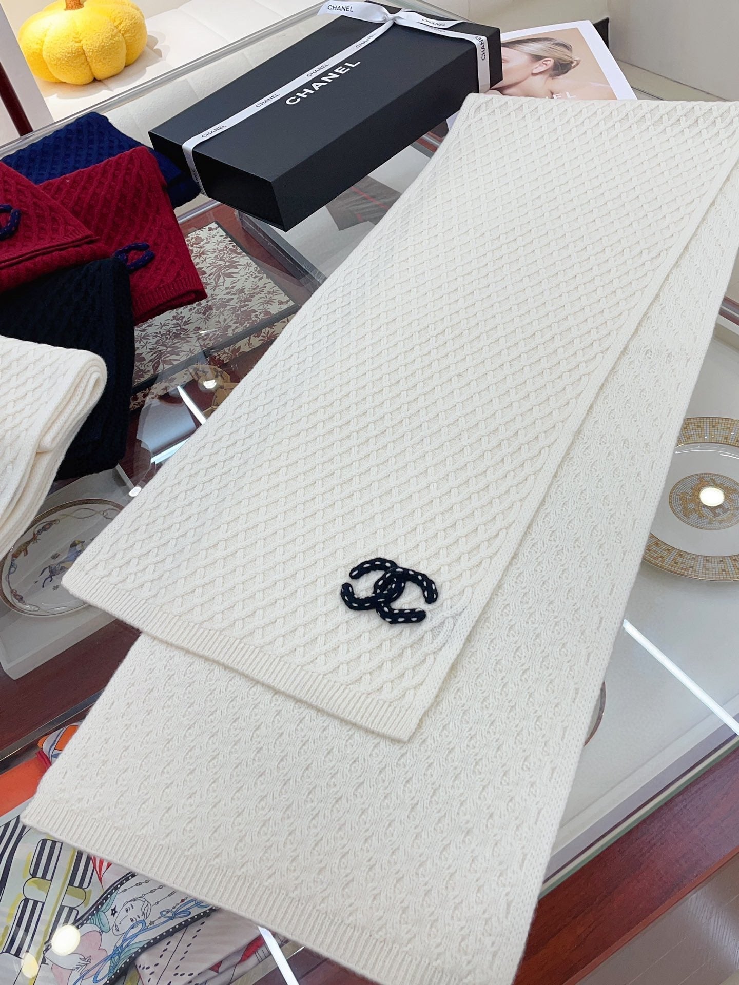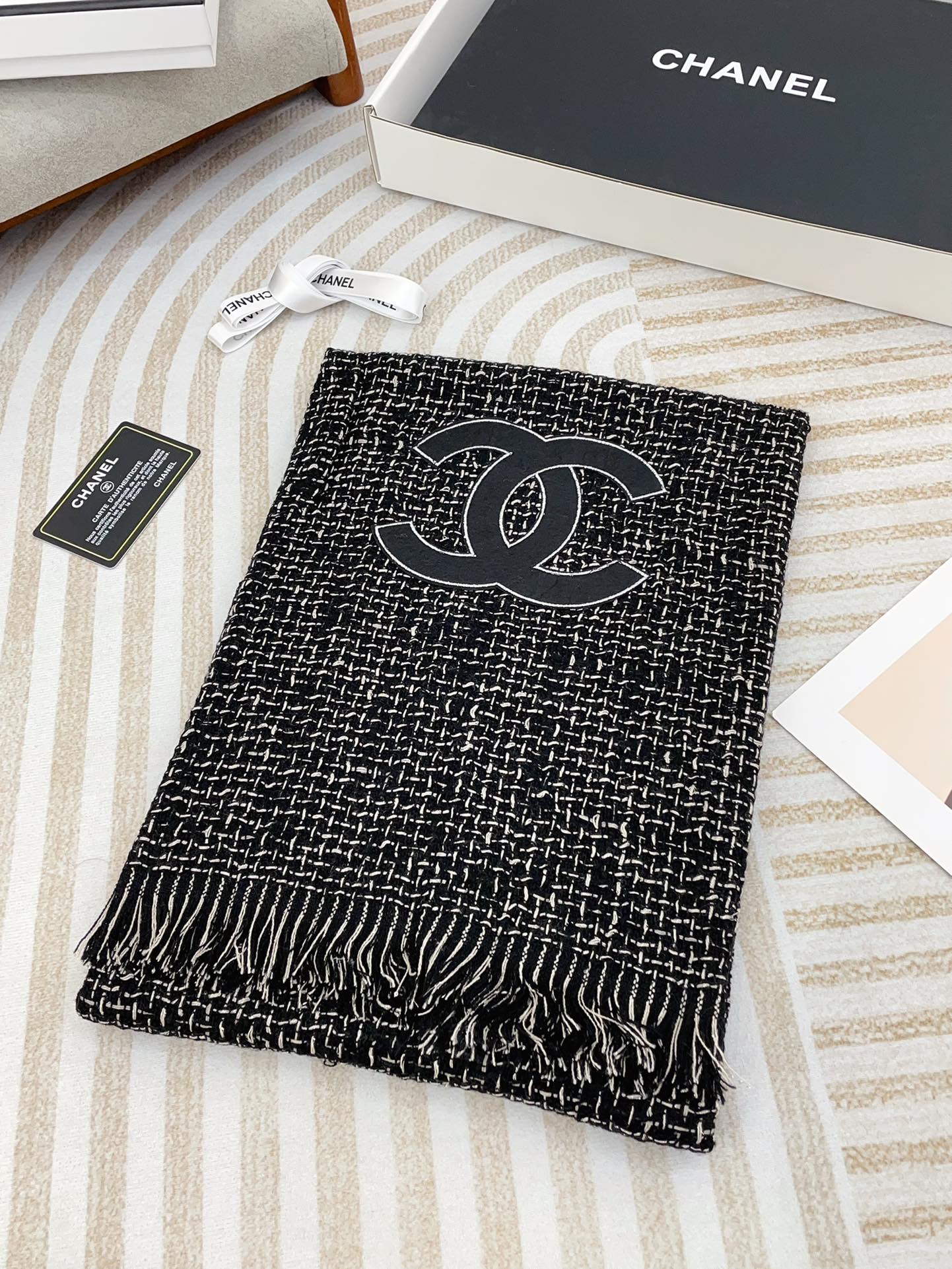 CC Scarf 195 CM White Mix Black Cashmere And Wool 418442