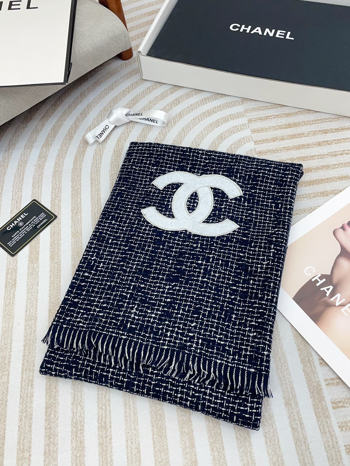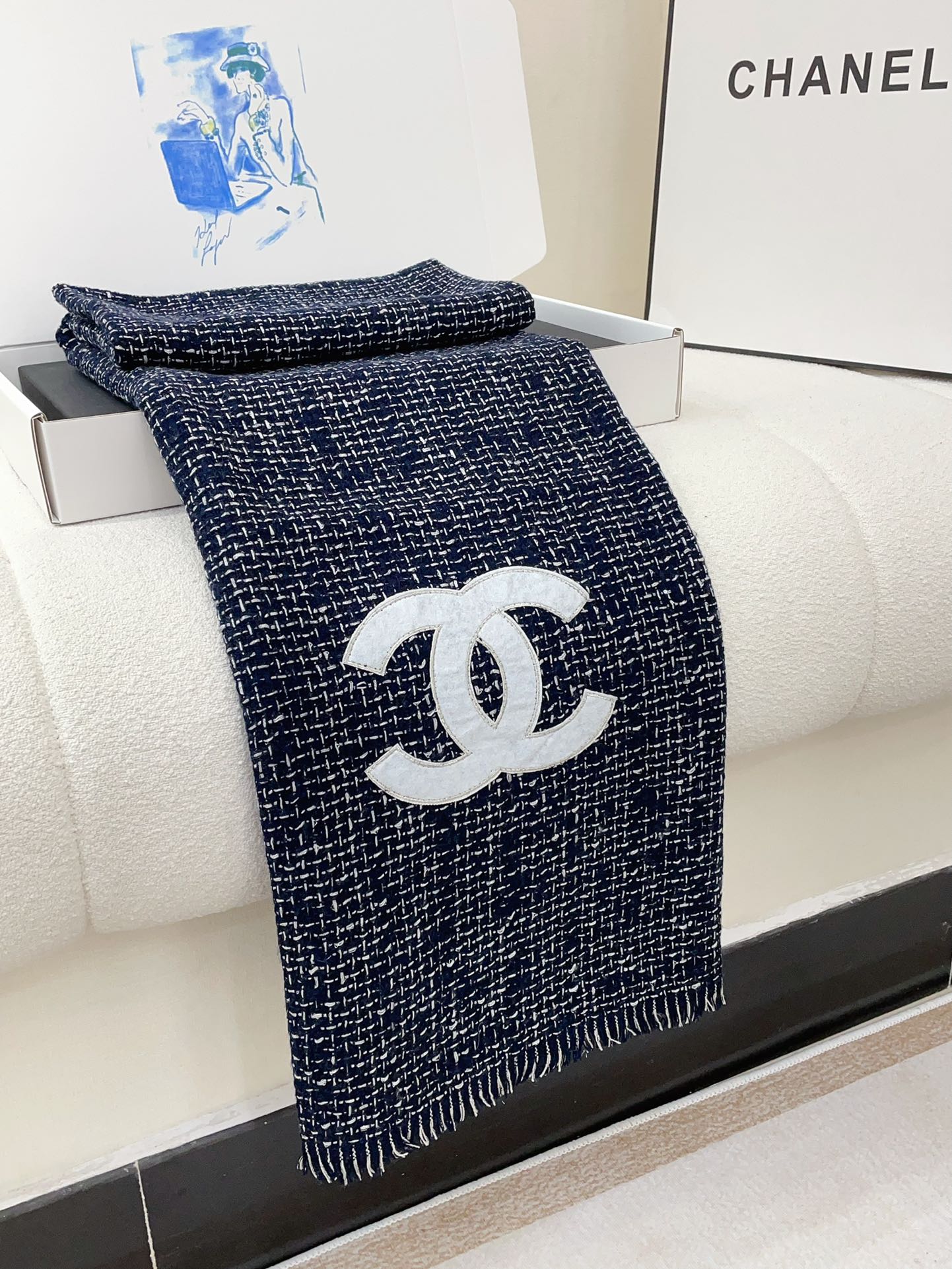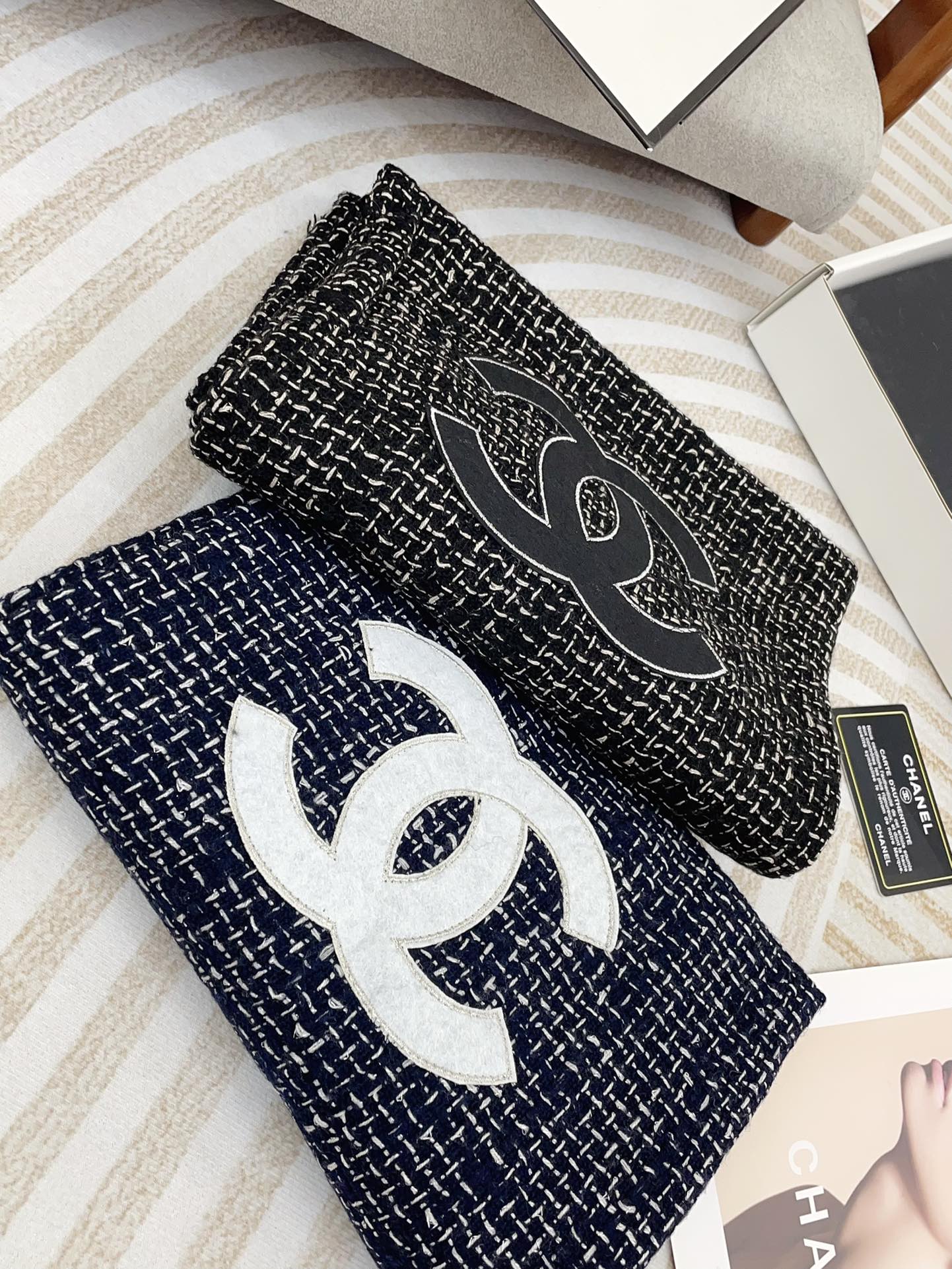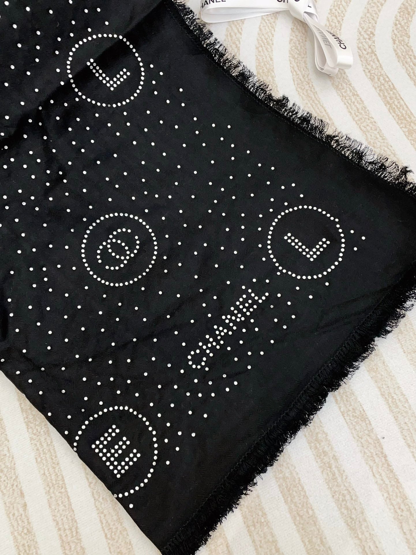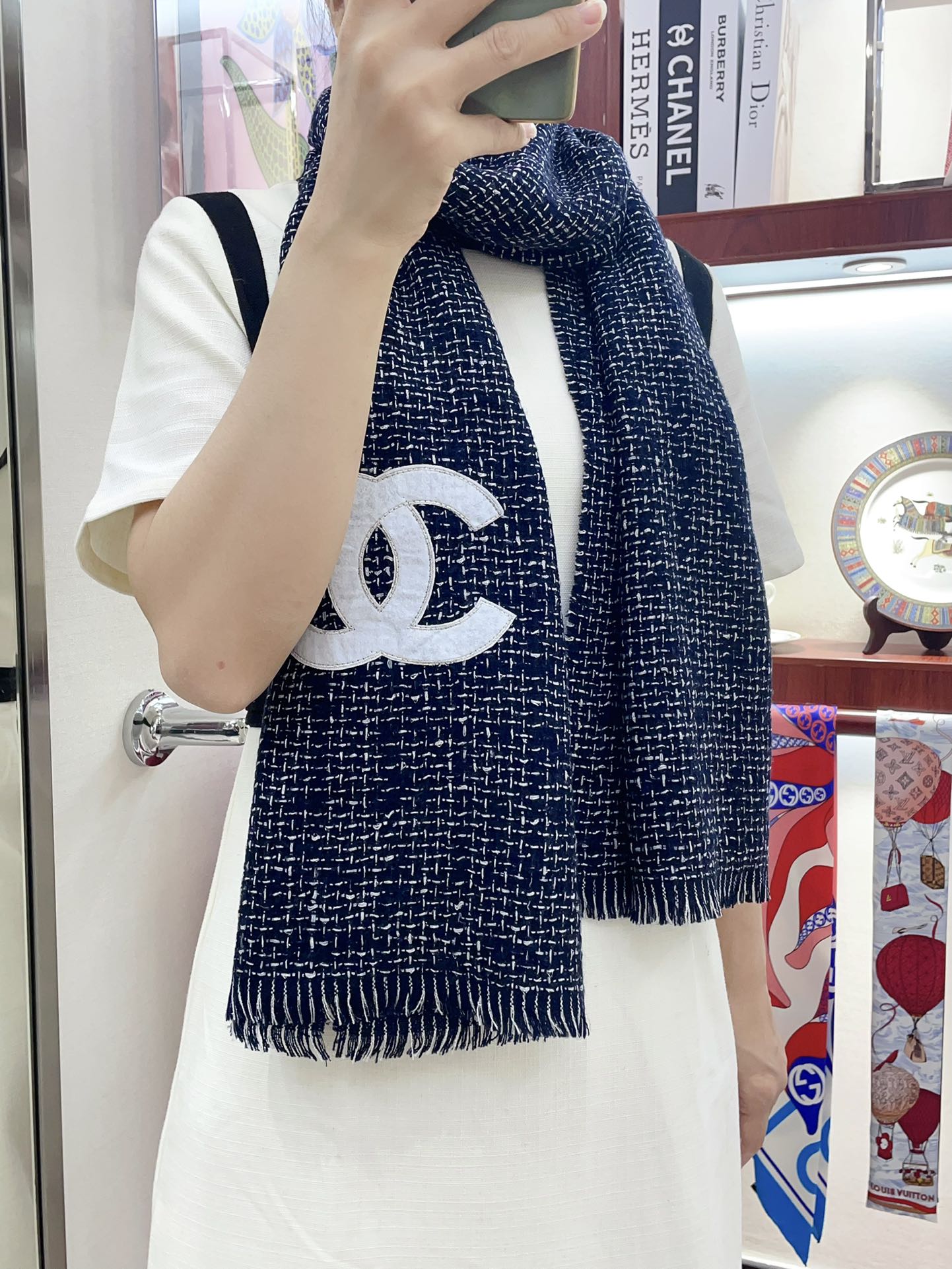 CC Scarf 195 CM White Mix Black Cashmere And Wool 418442