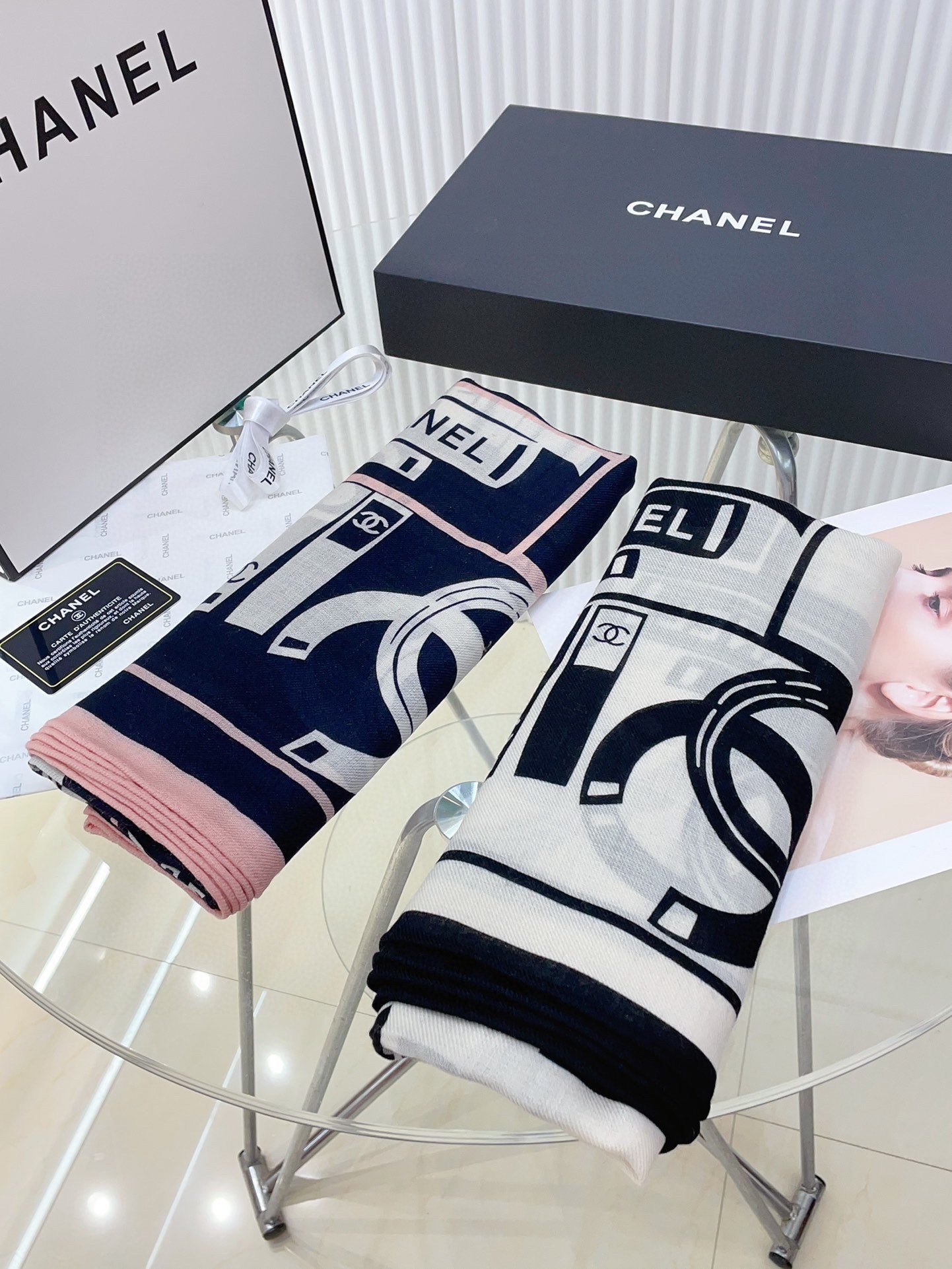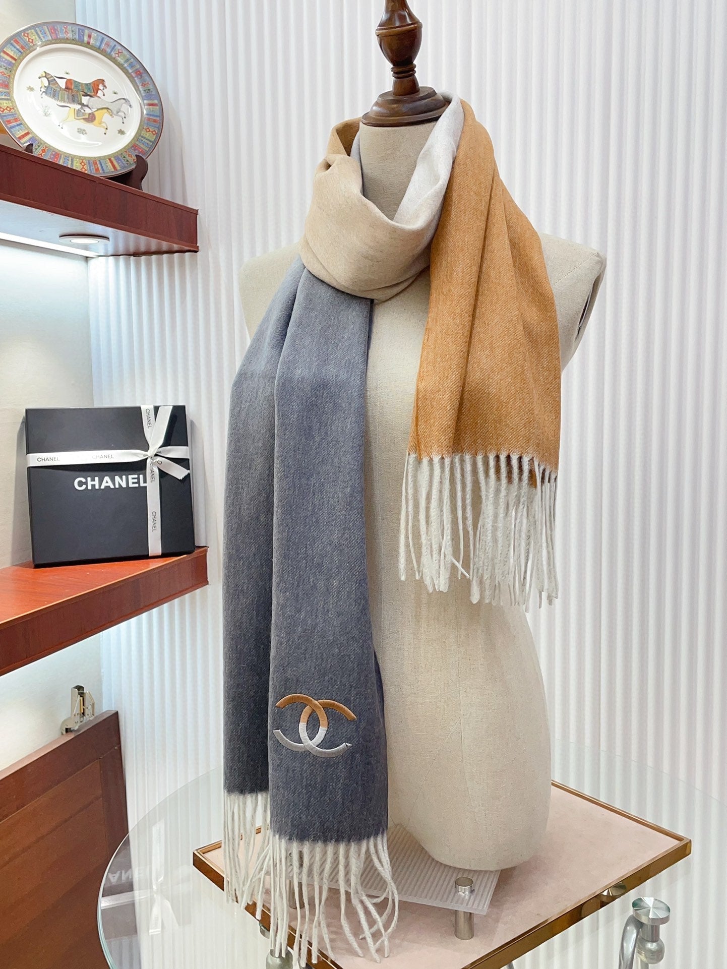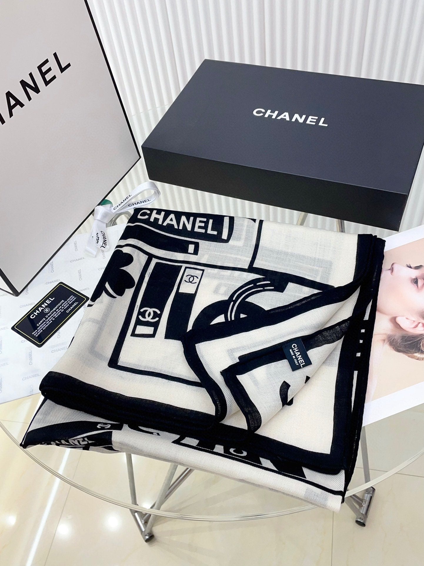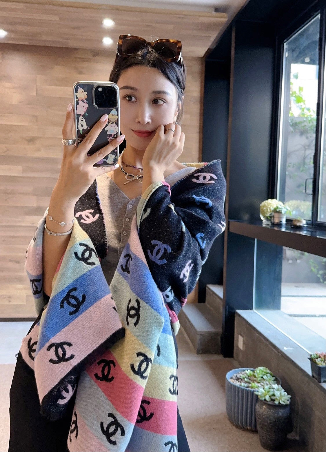 CC Scarf 195 CM White Mix Black Cashmere And Wool 418442