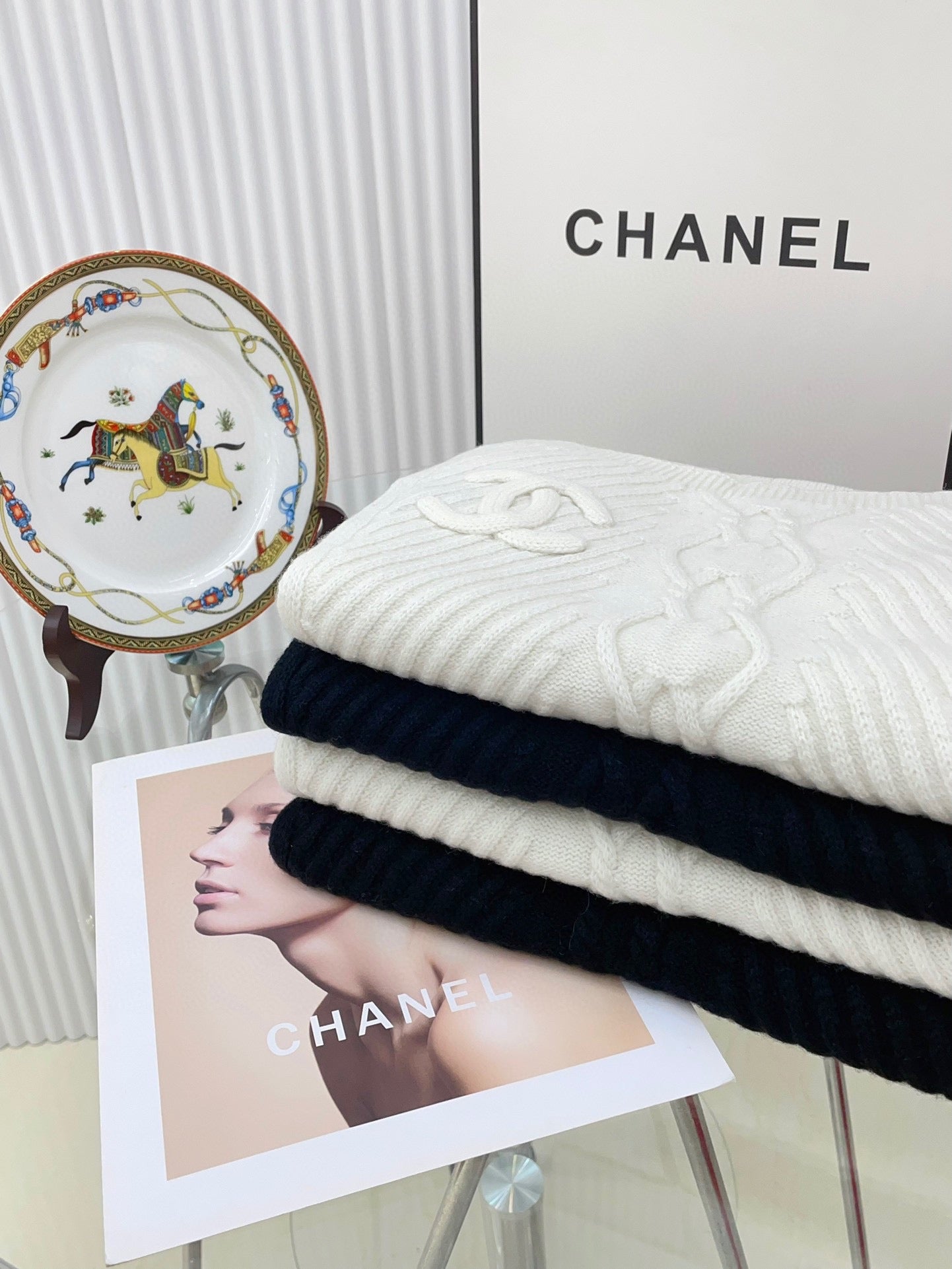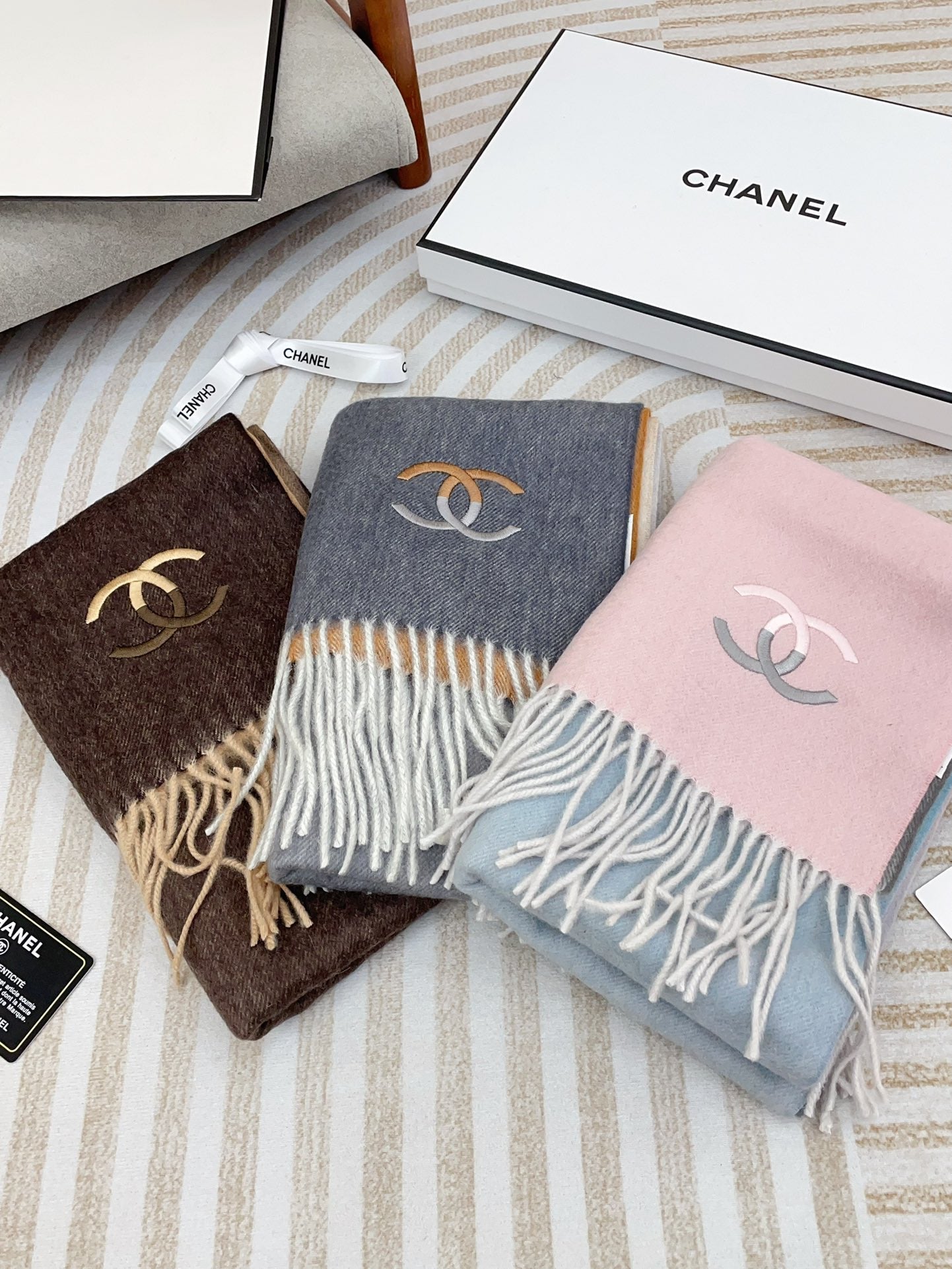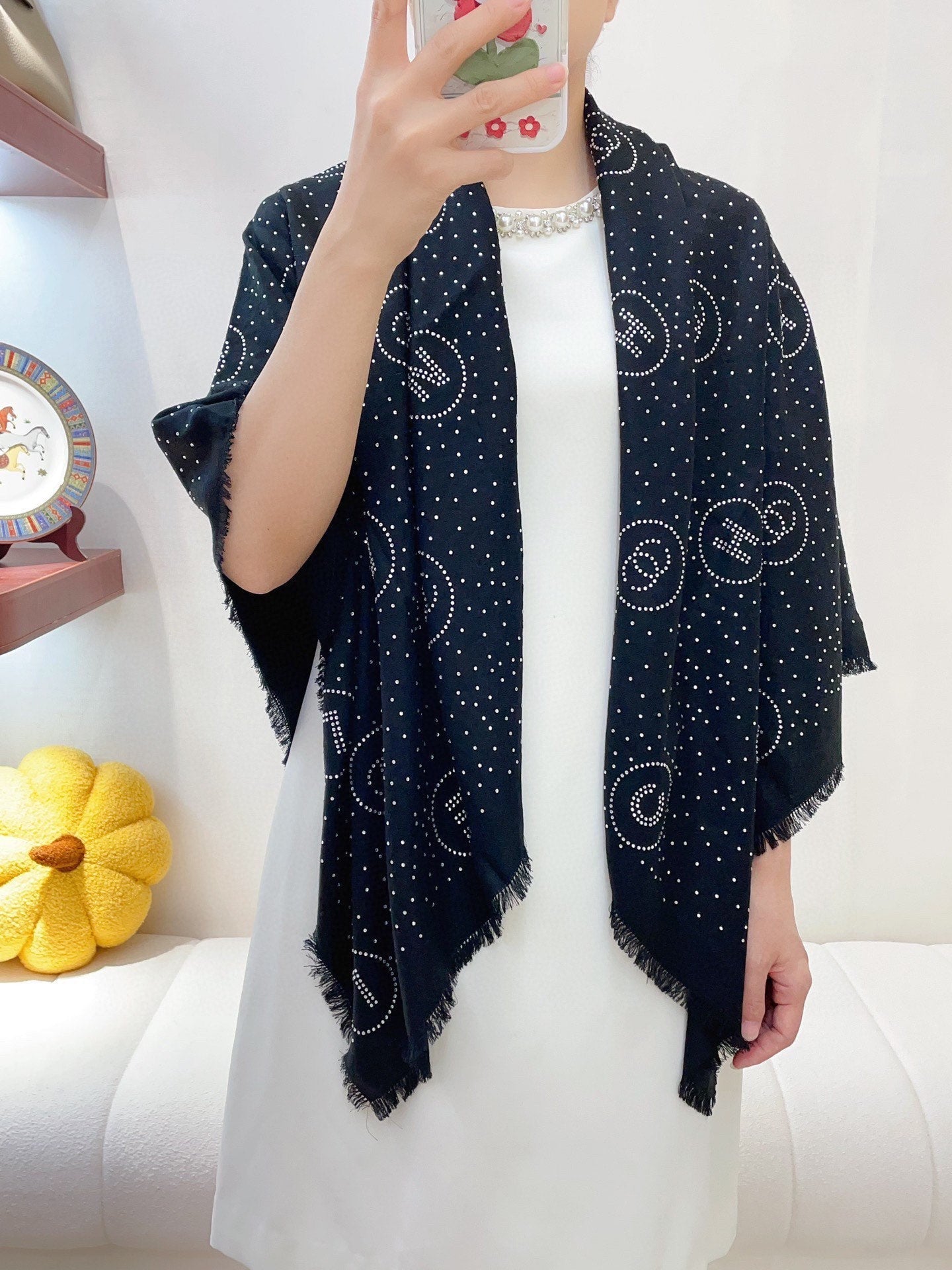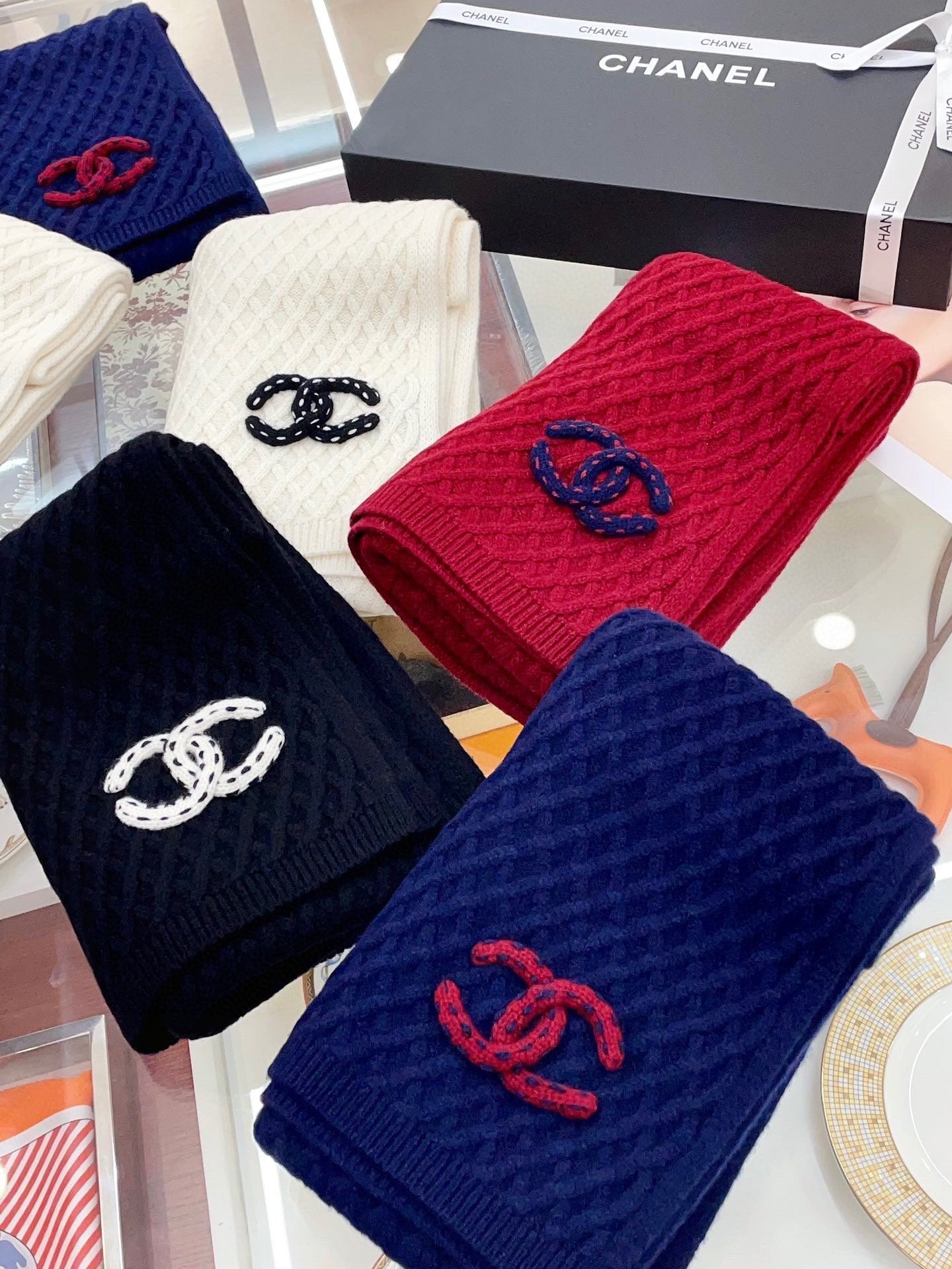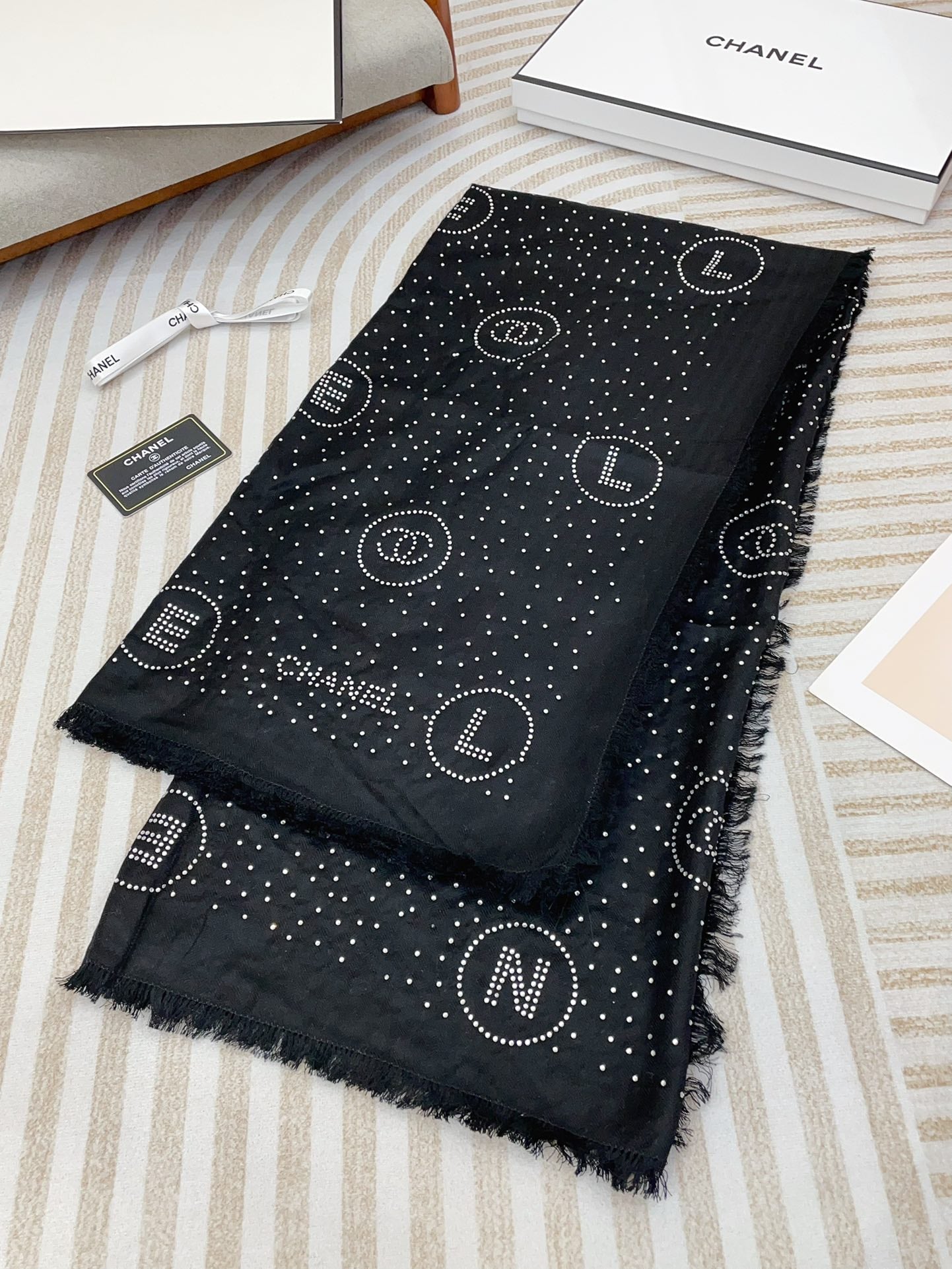 CC Scarf 195 CM White Mix Black Cashmere And Wool 418442