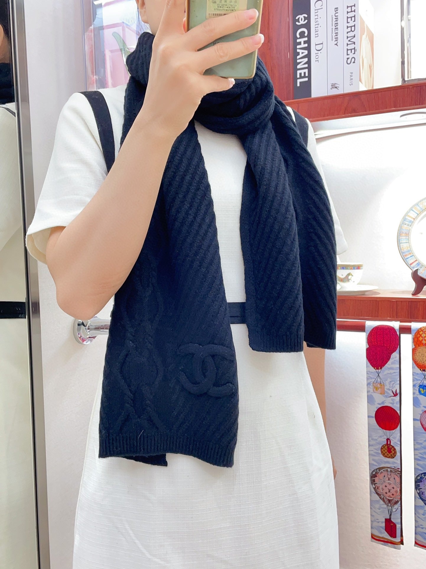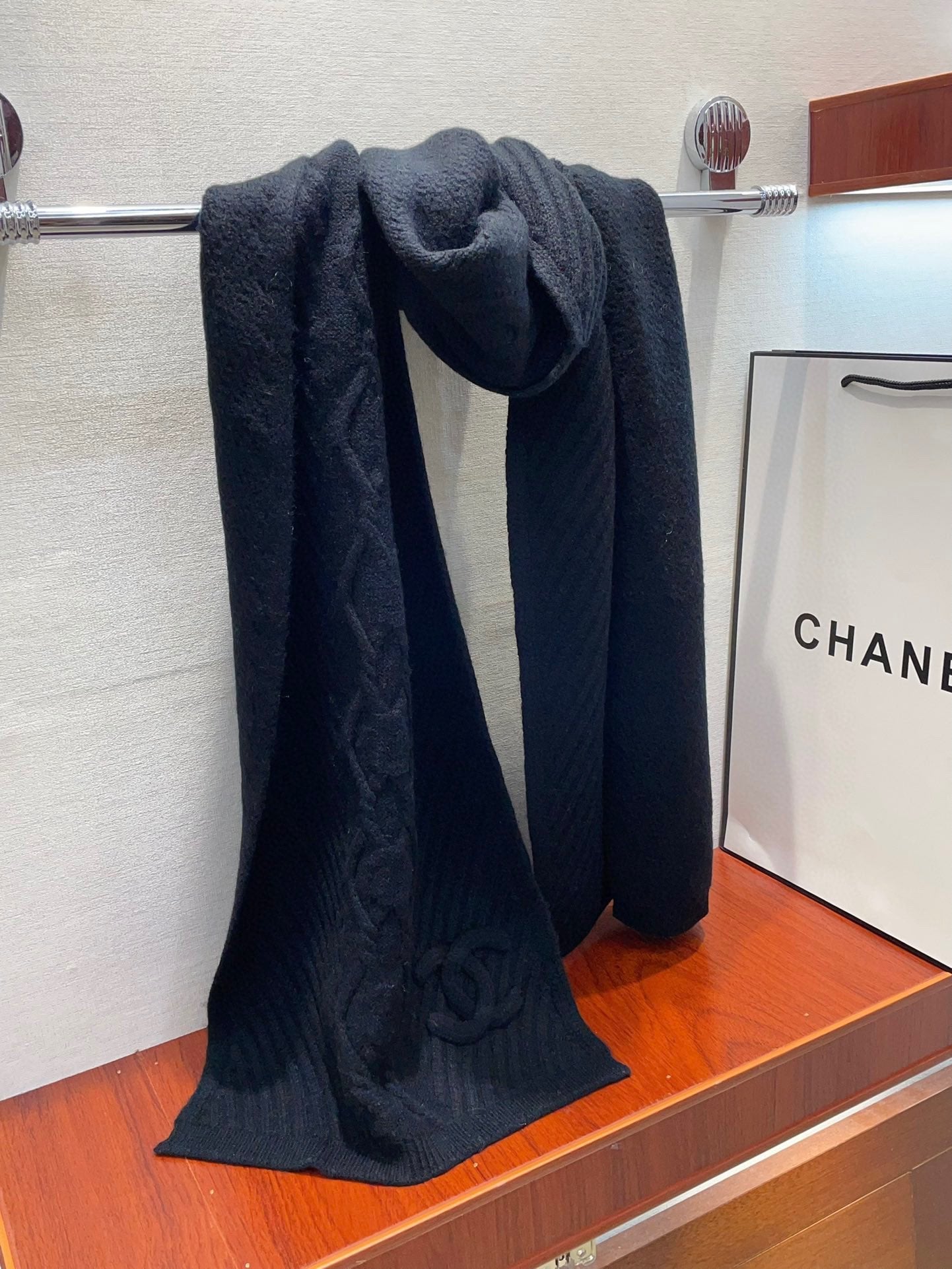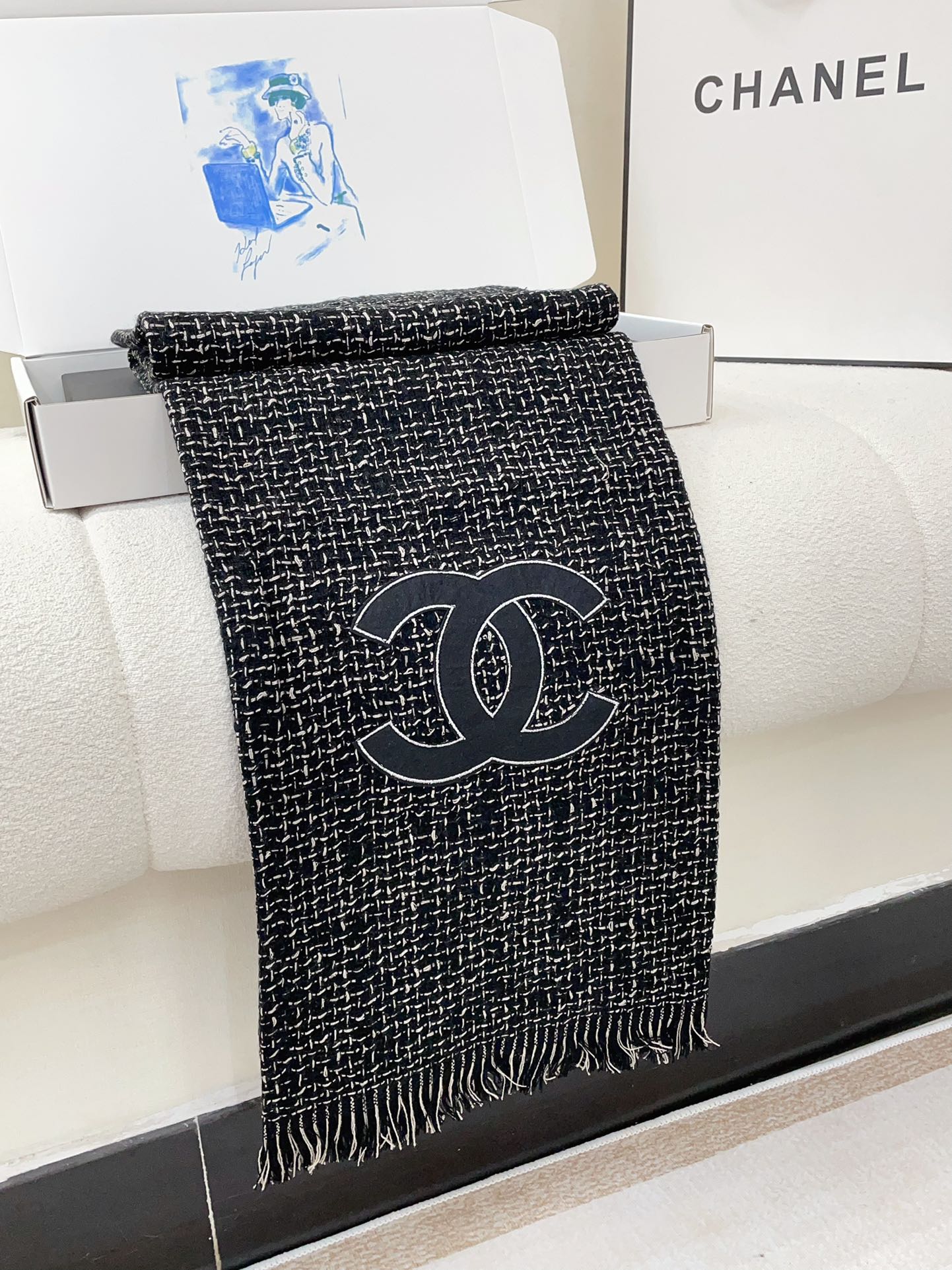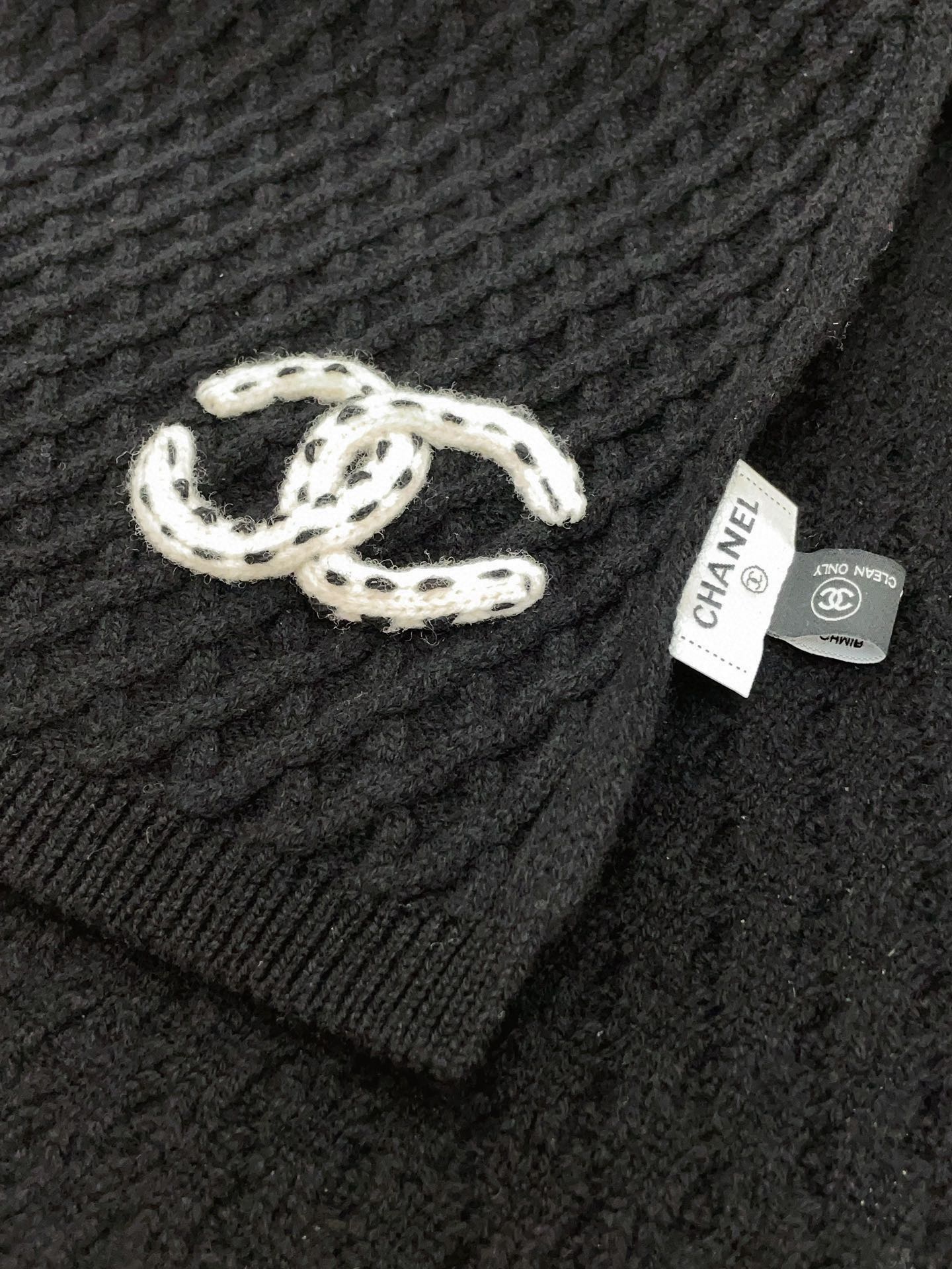 CC Scarf 195 CM Black Mix White Cashmere And Wool 418443