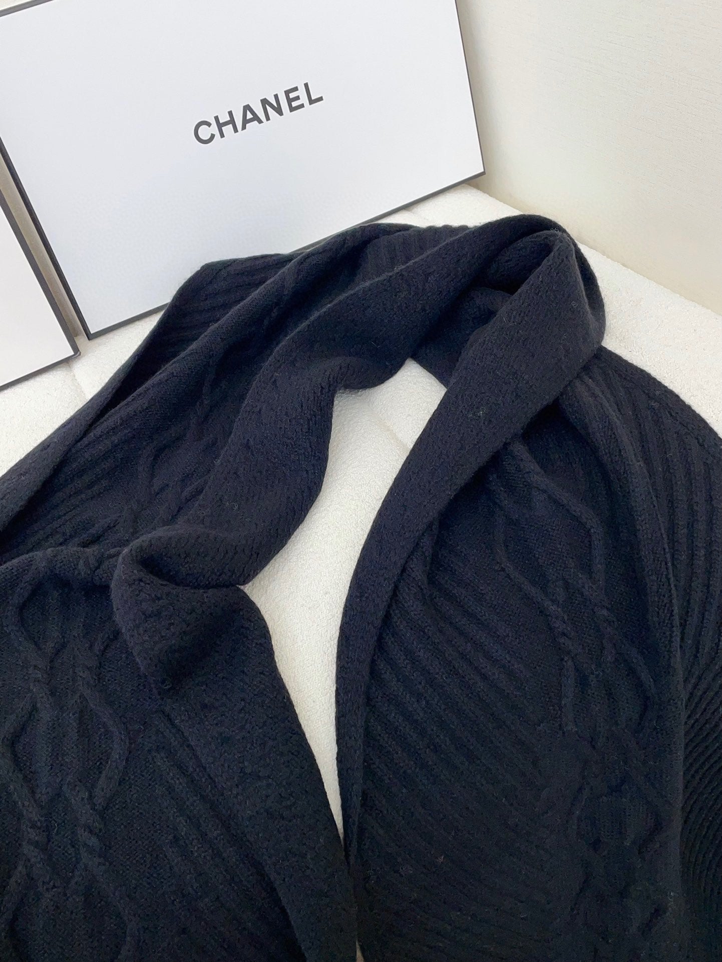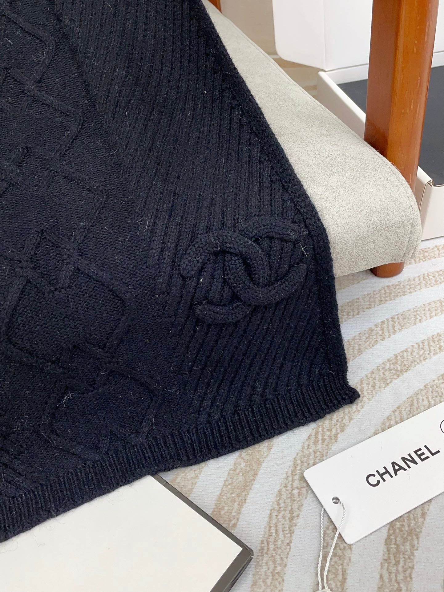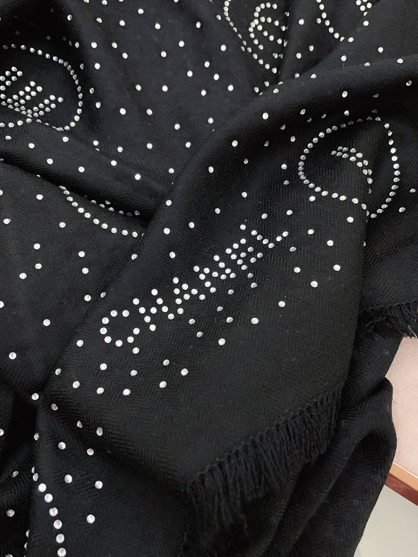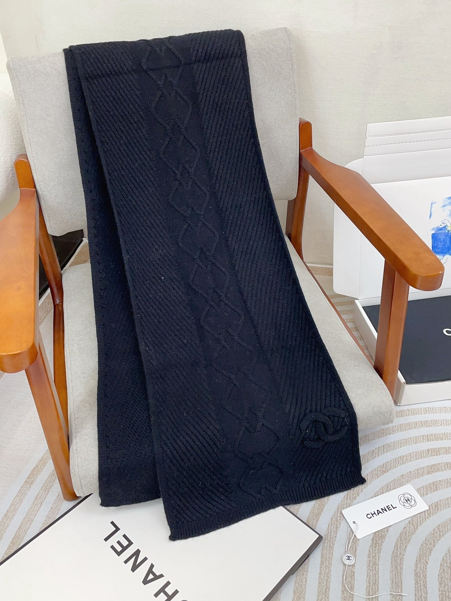 CC Scarf 195 CM Black Mix White Cashmere And Wool 418443