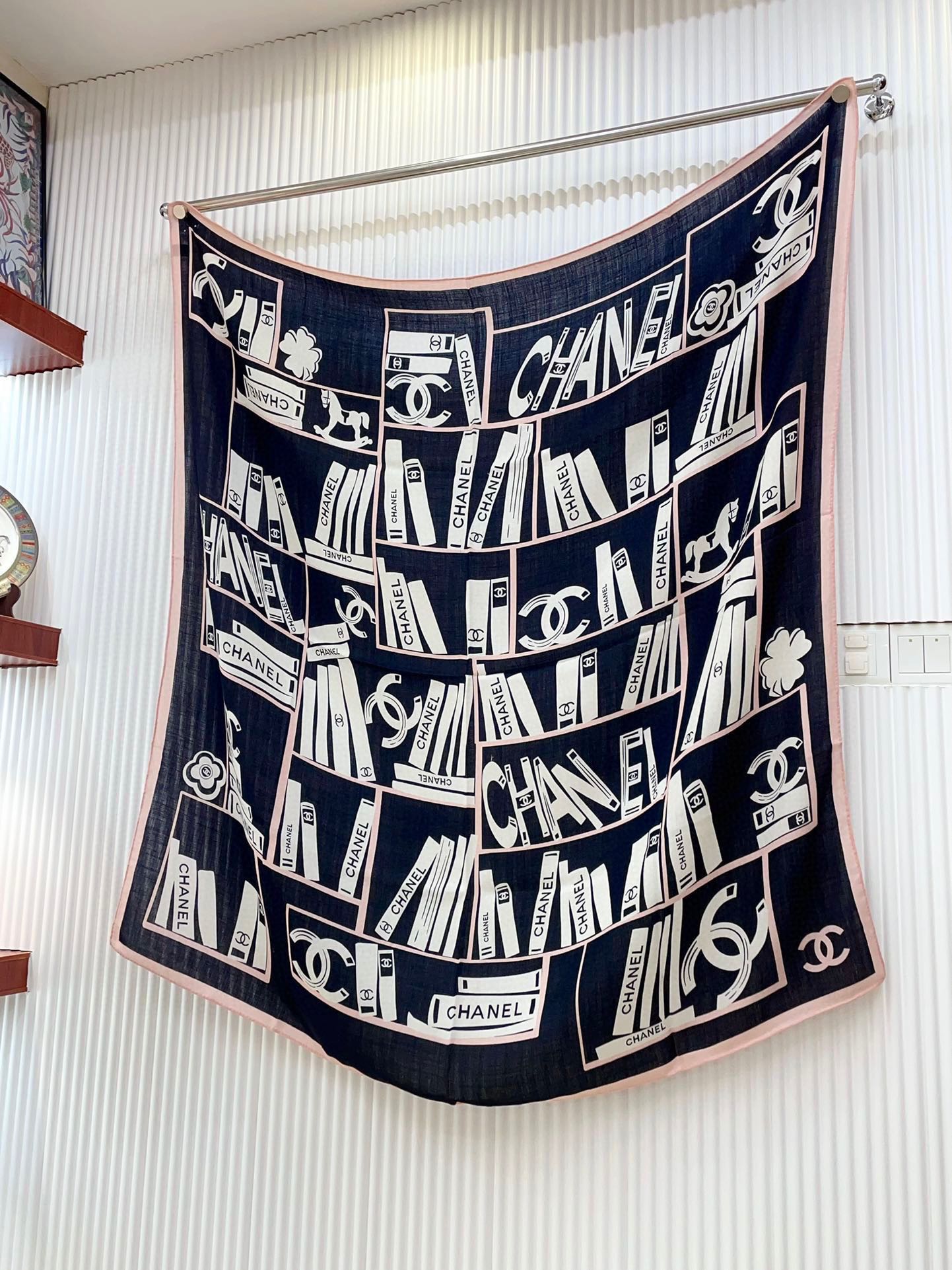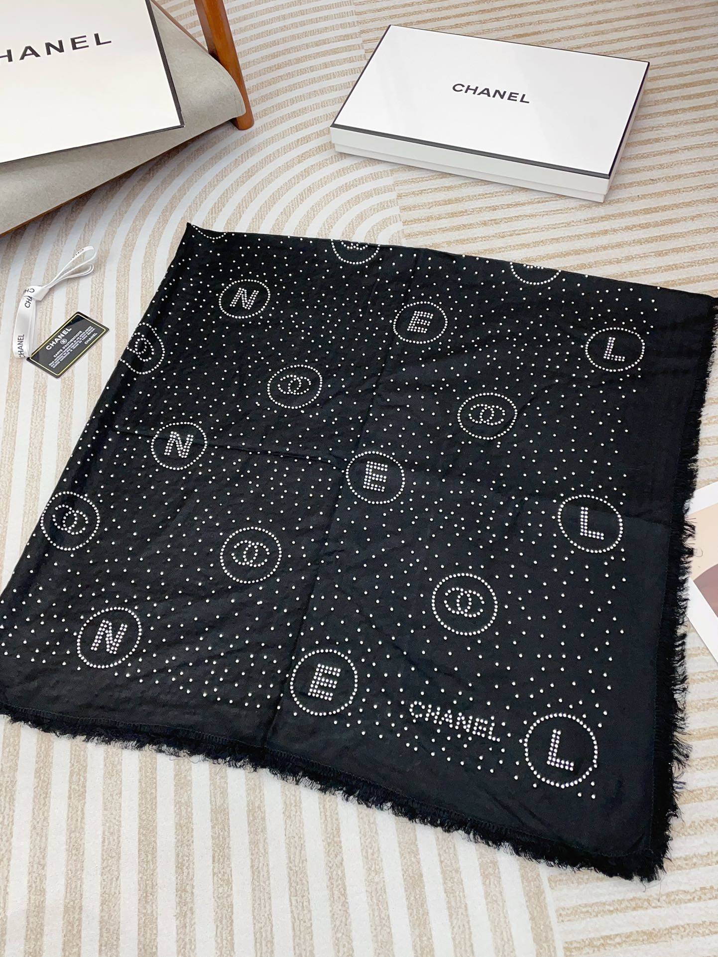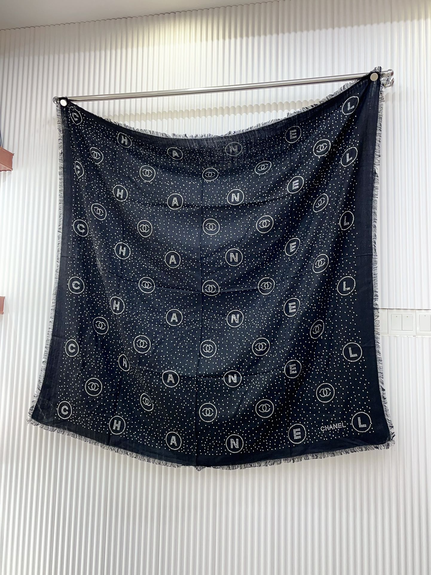CC Square Scarf 140 CM In Black Silk Cashmere 420131
