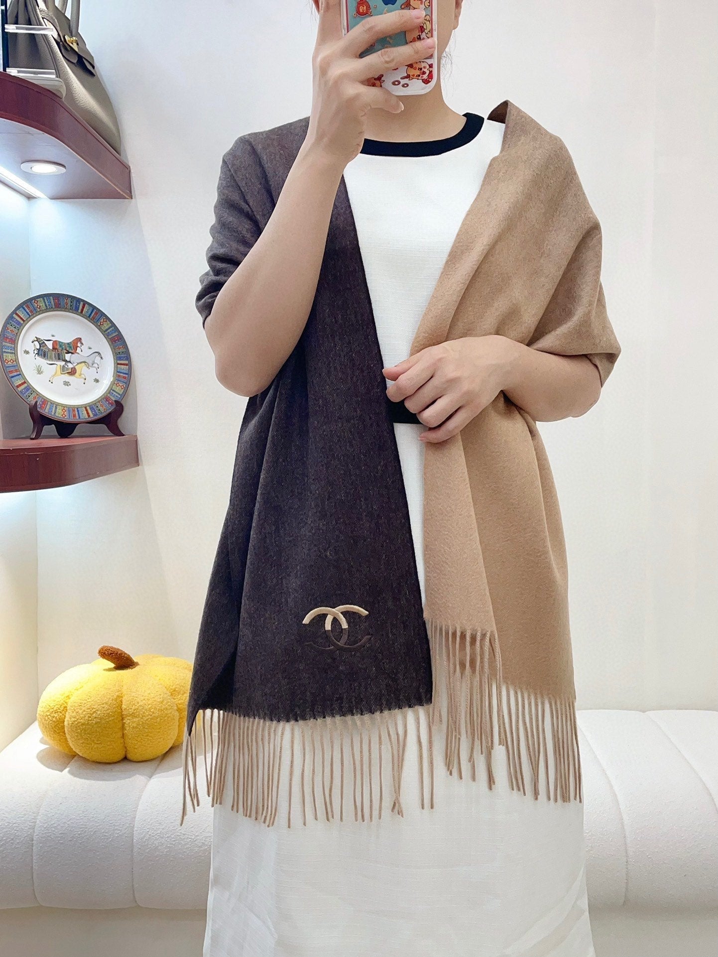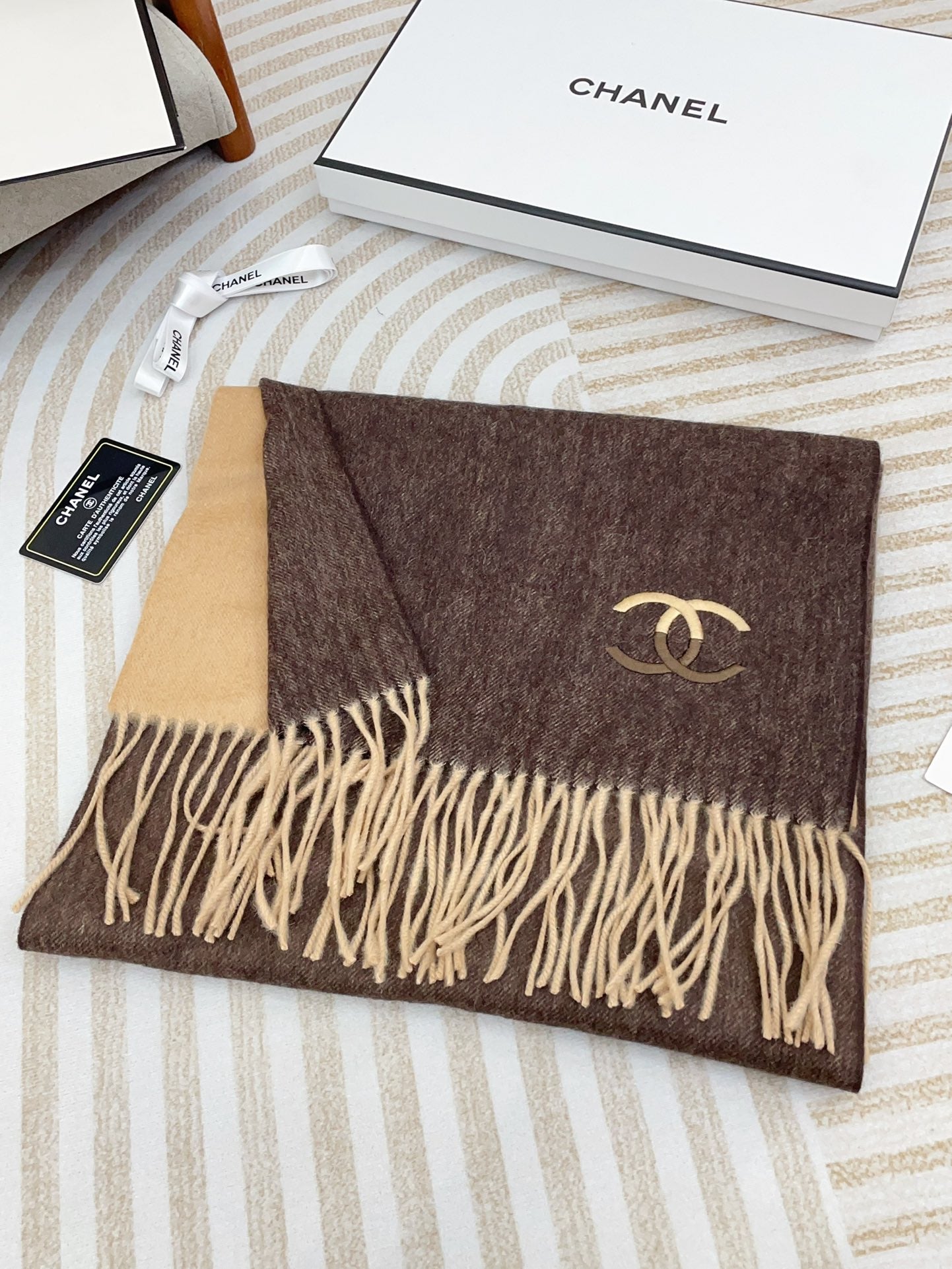 CC Scarf 180 CM In Dark Brown Mix Beige Cashmere 422763