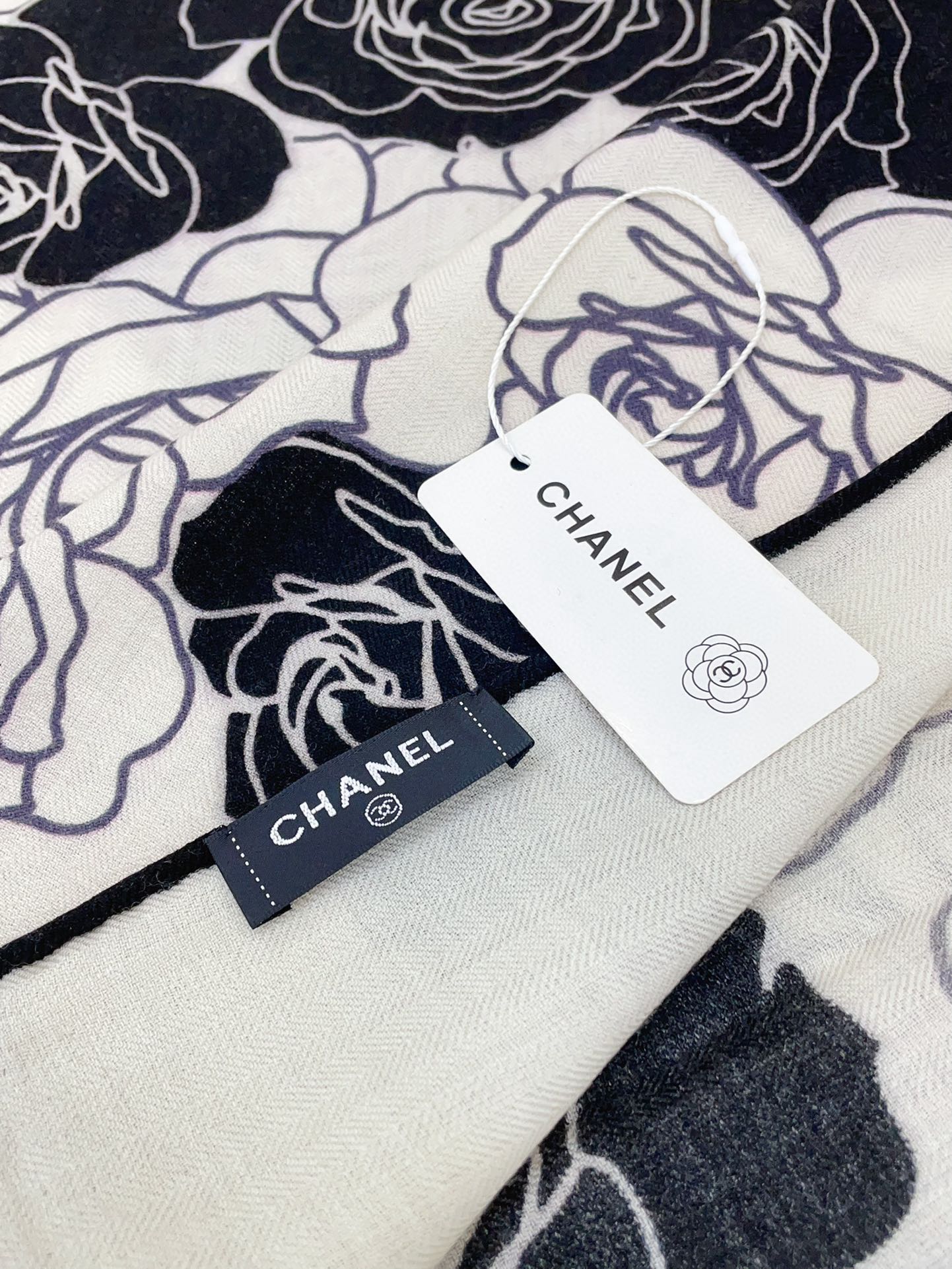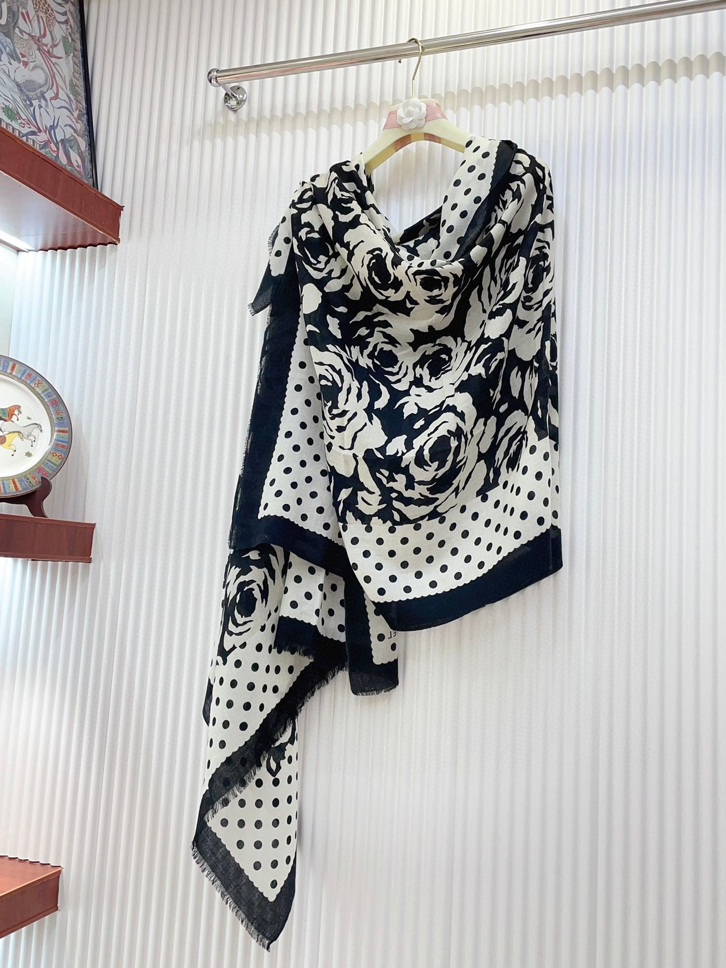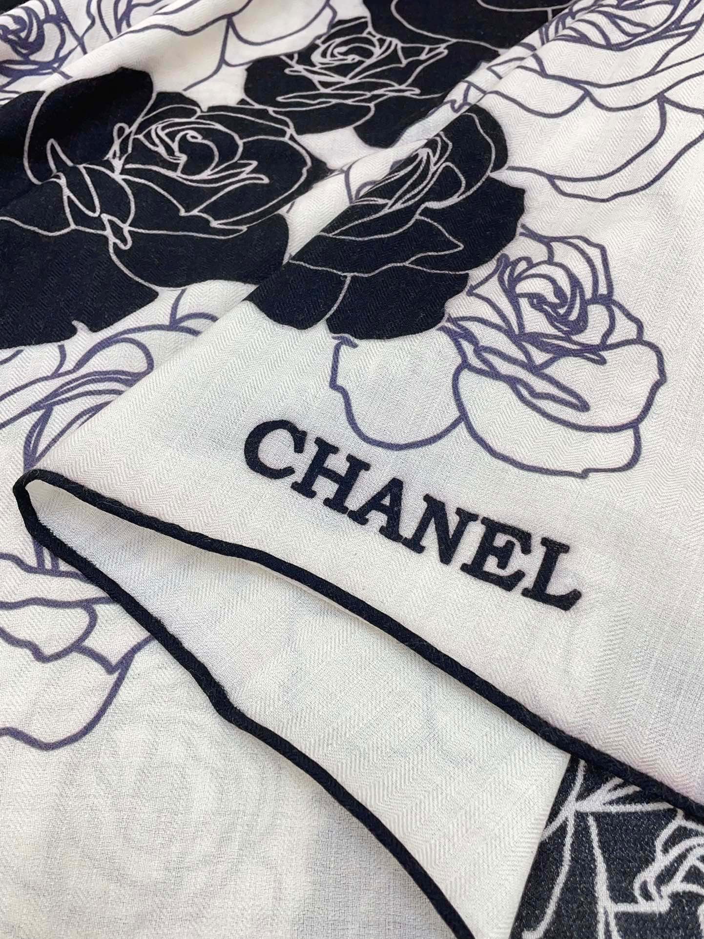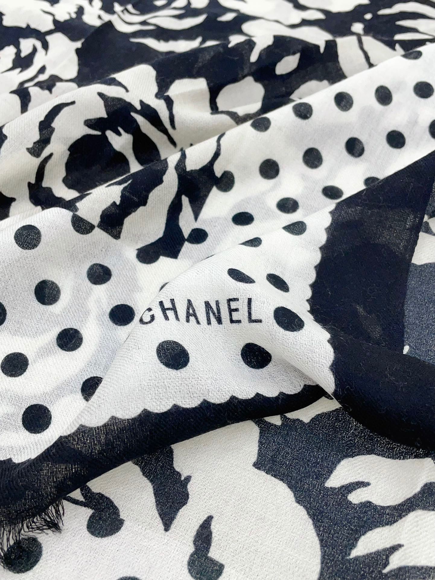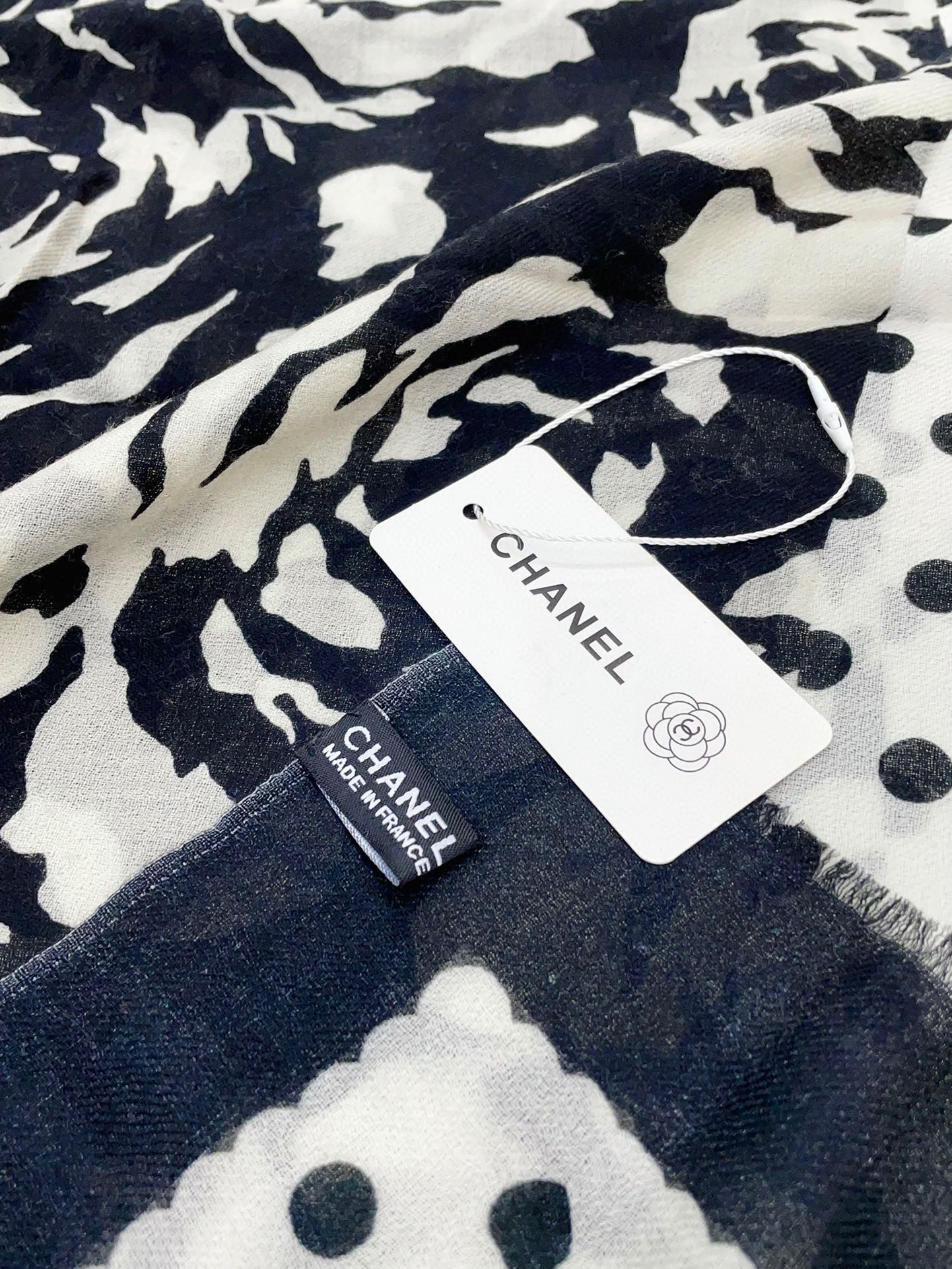 CC 25 Camellia Scarf 140CM Black White Cashmere 293082