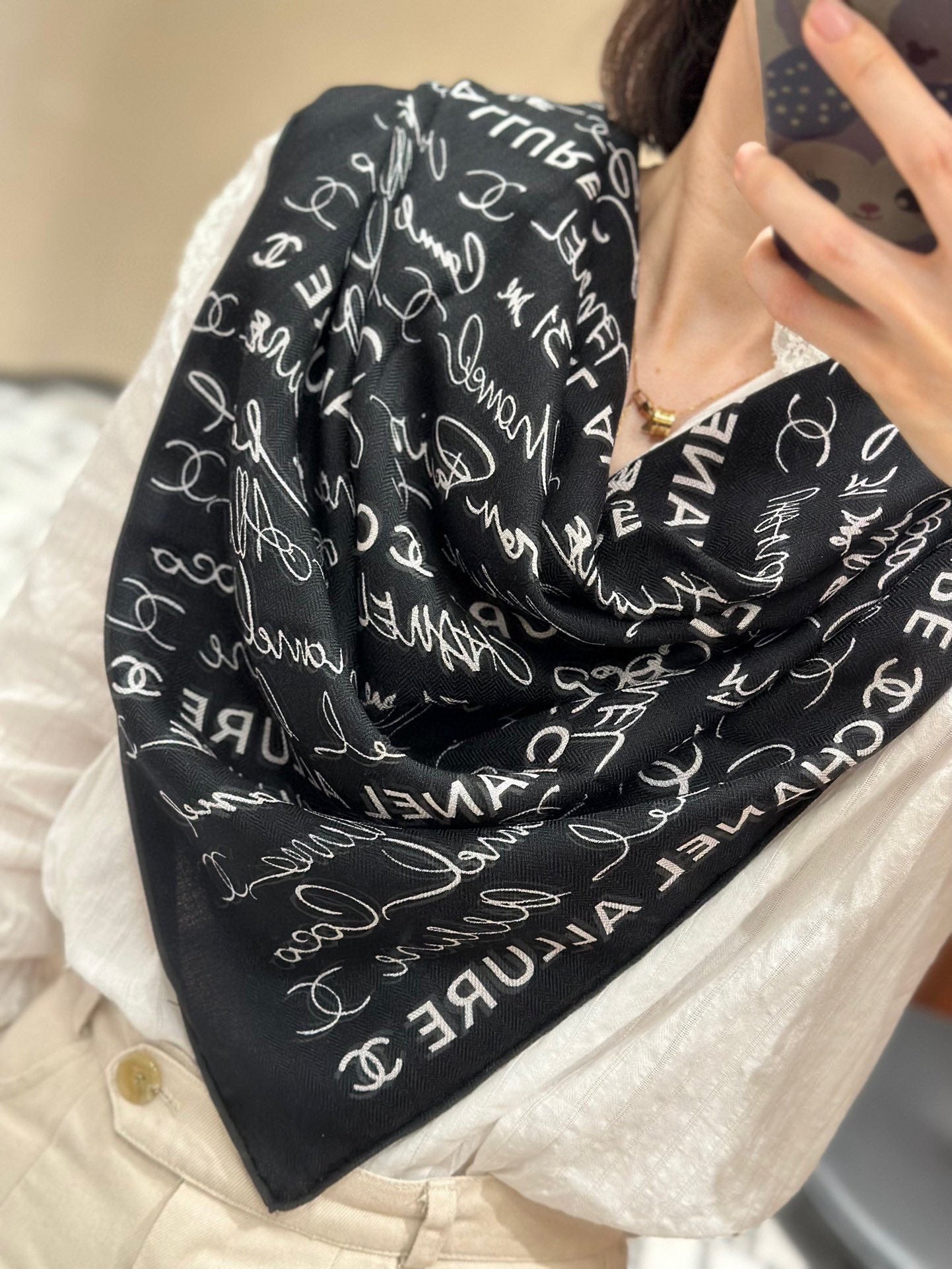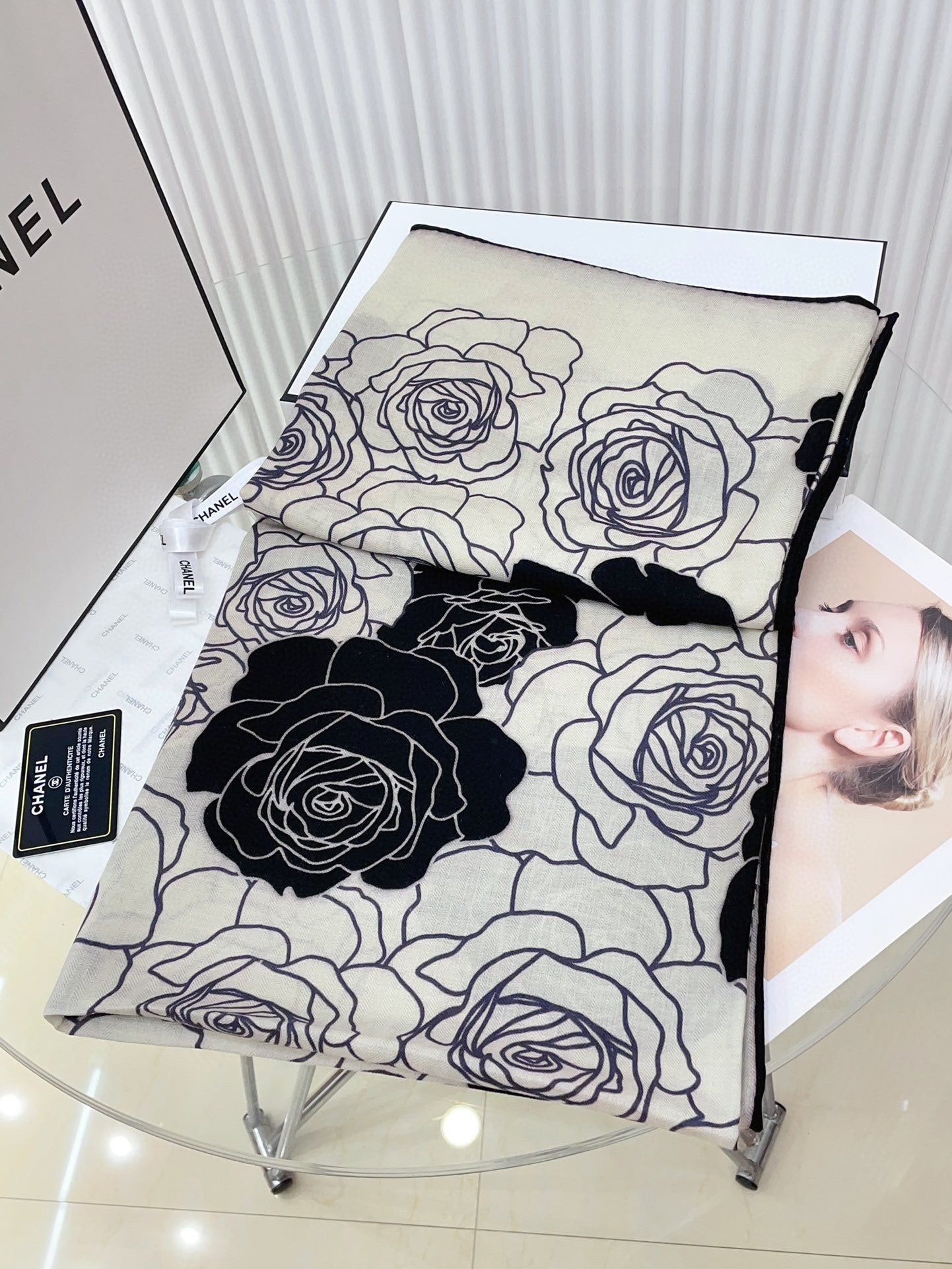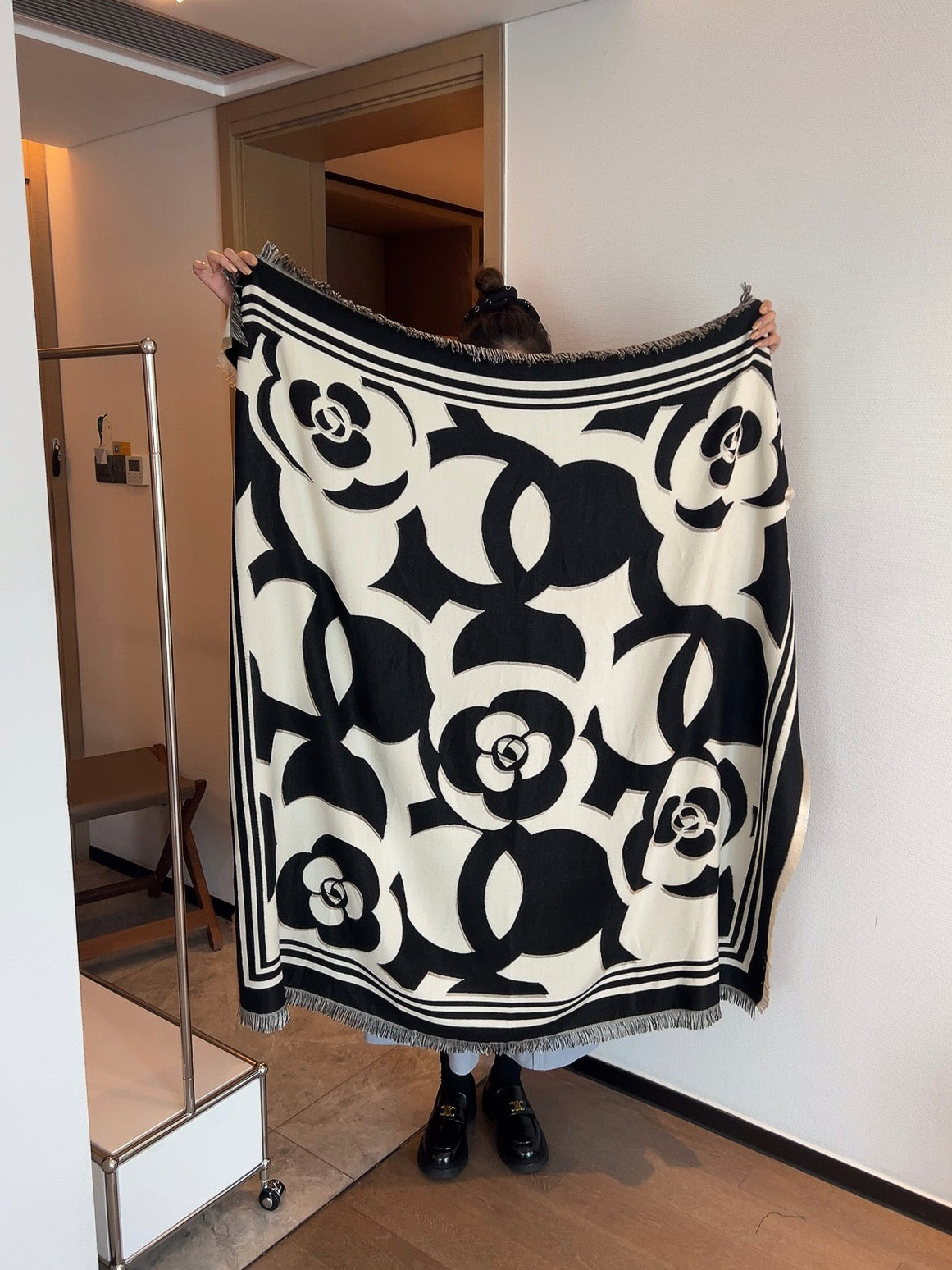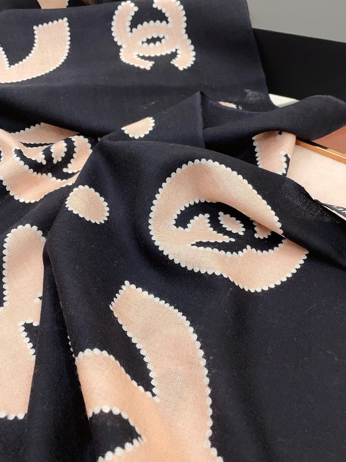 CC 25 Camellia Scarf 140CM Black White Cashmere 293082
