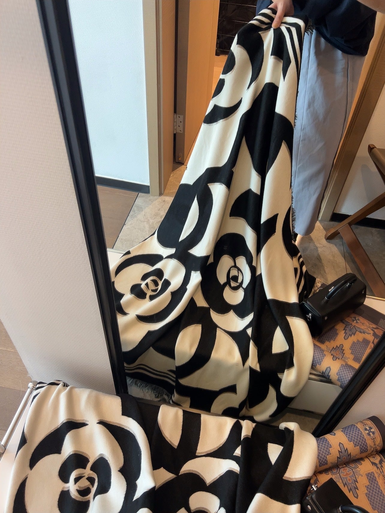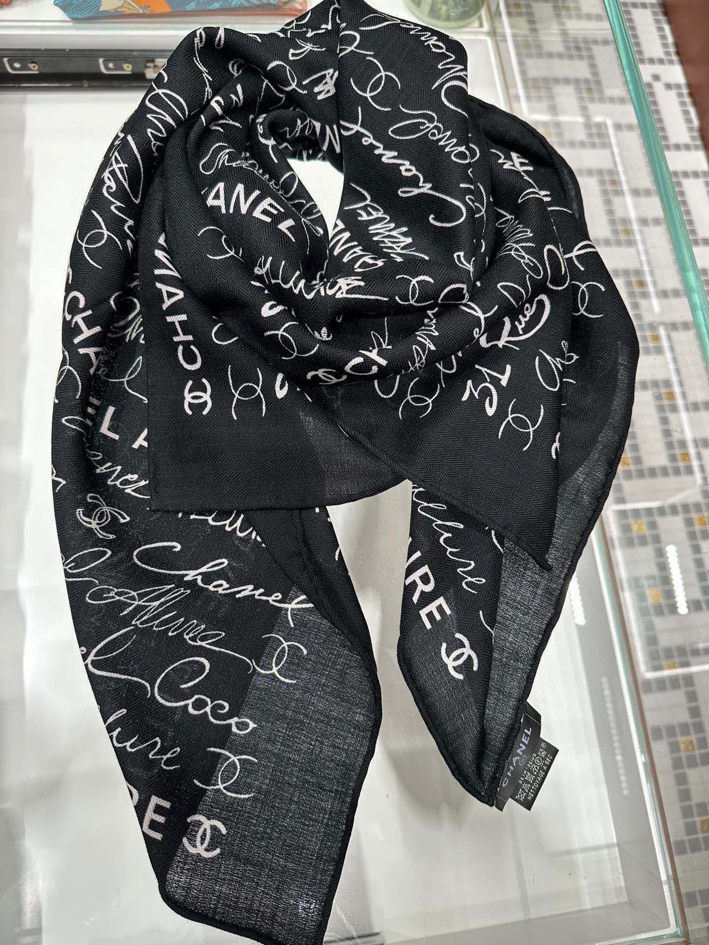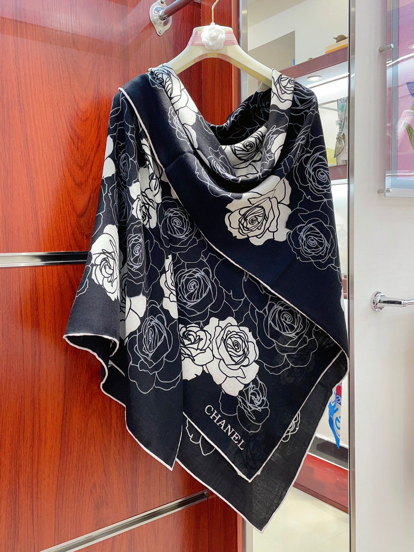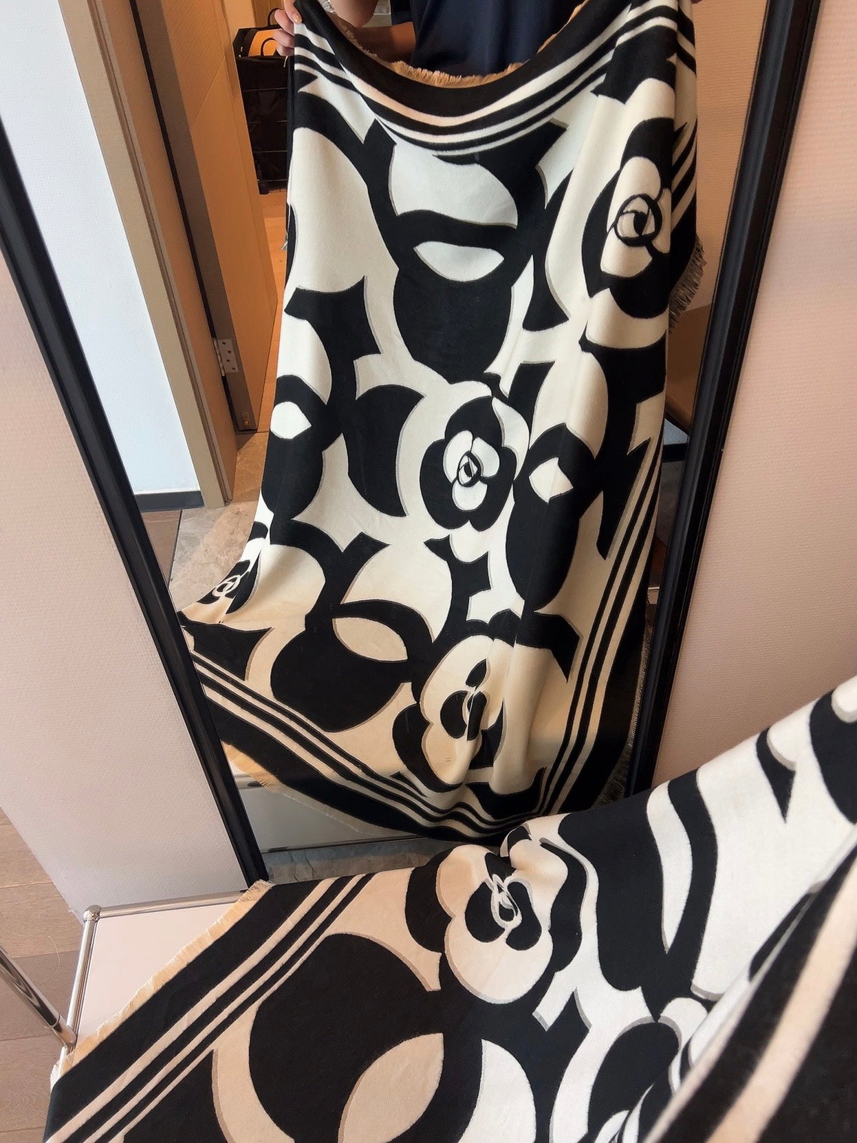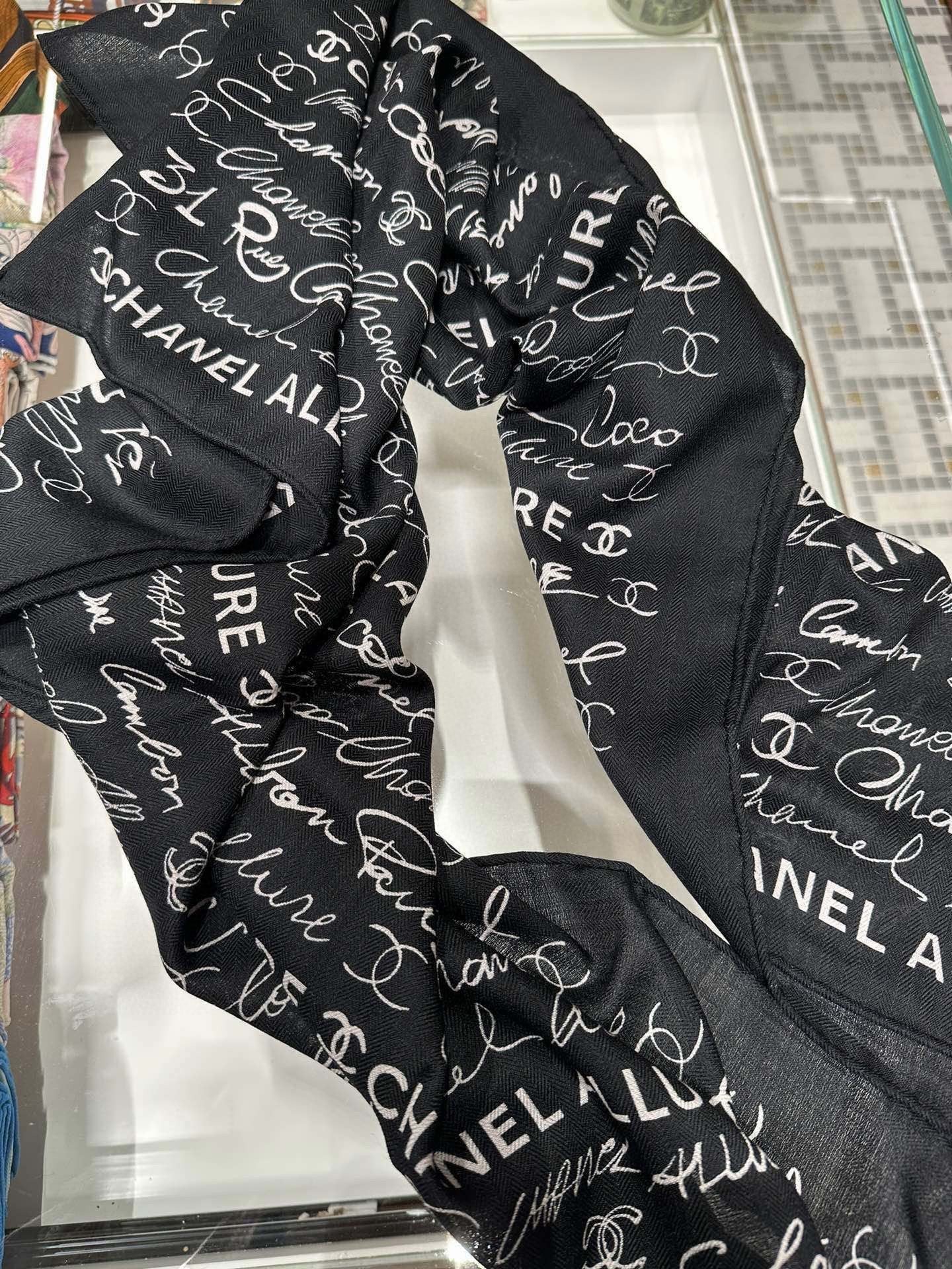 CC 25 Camellia Scarf 140CM Black White Cashmere 293082