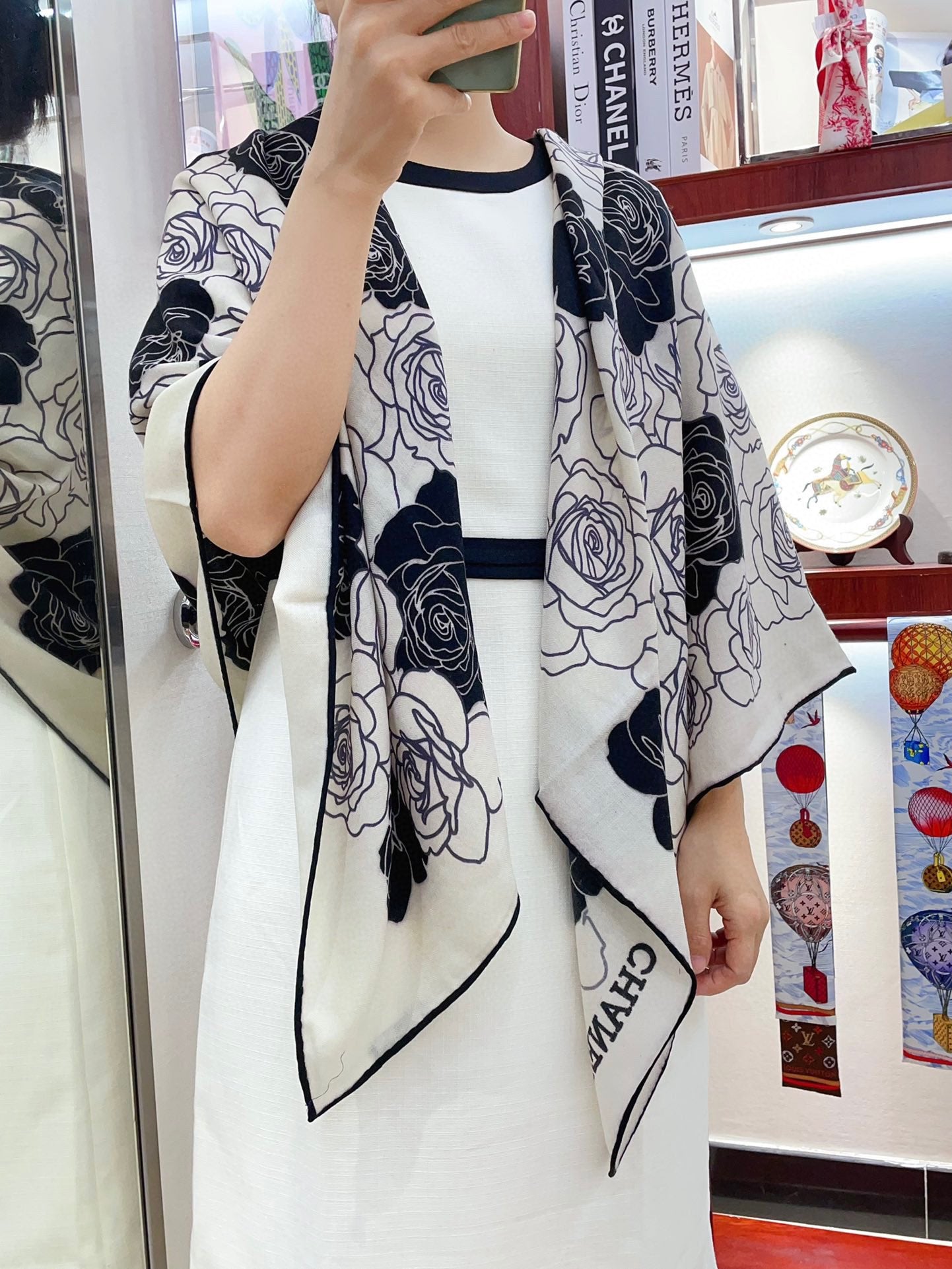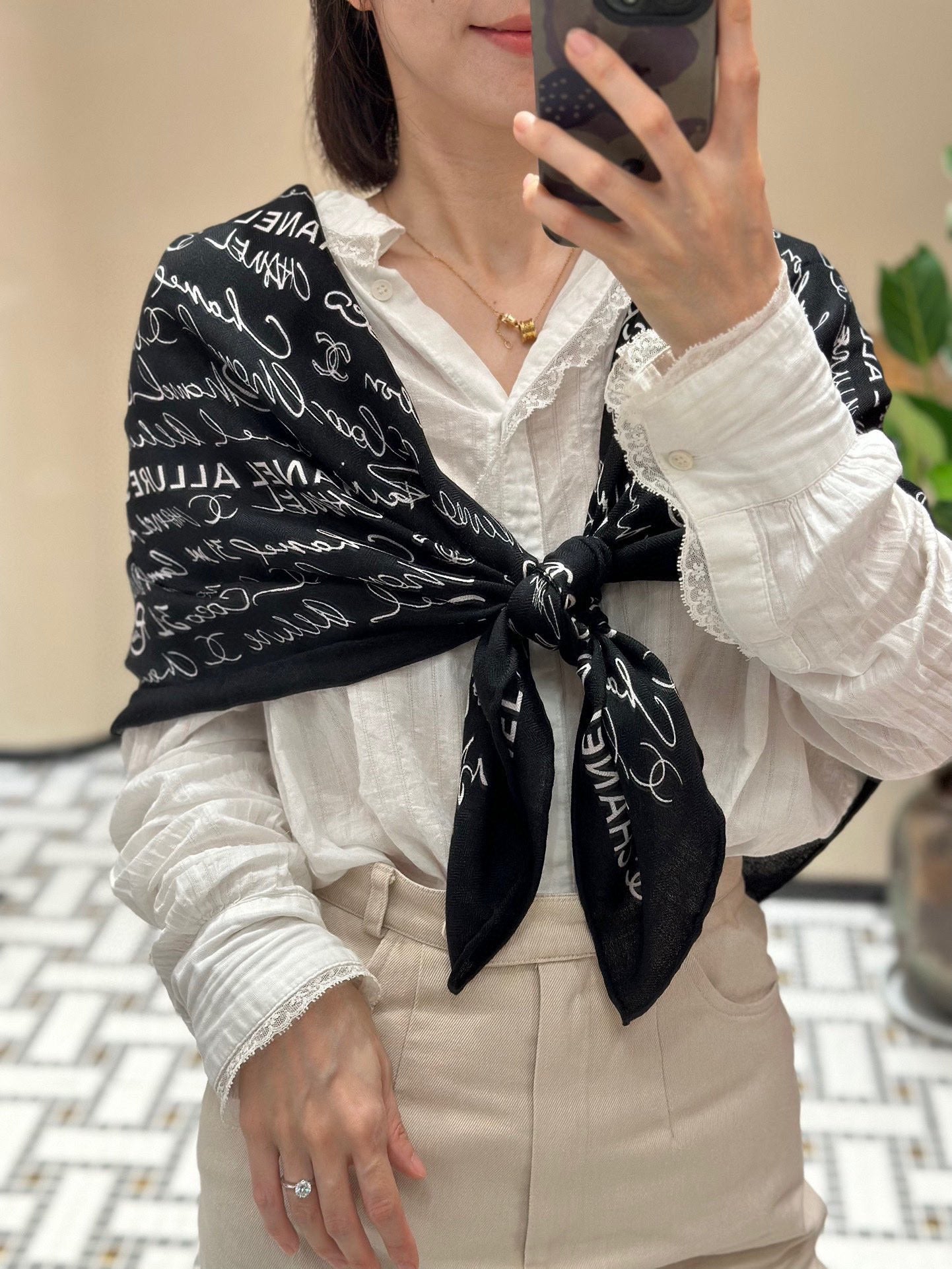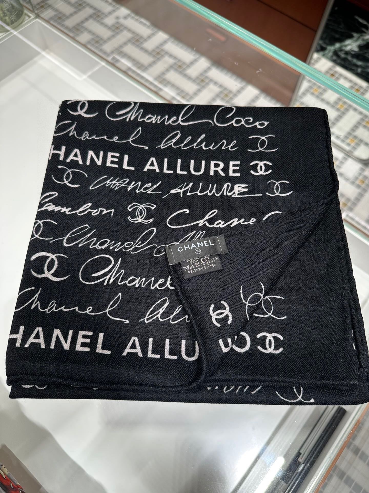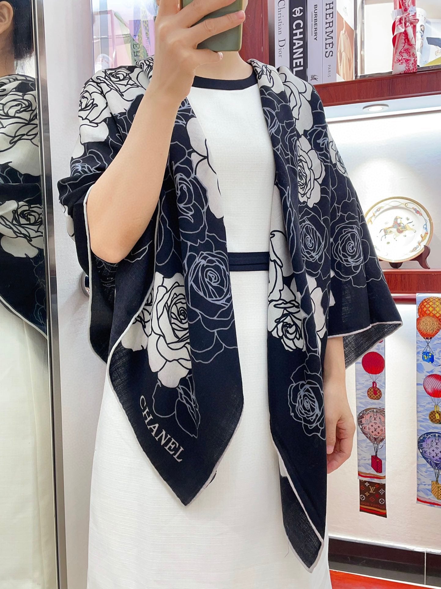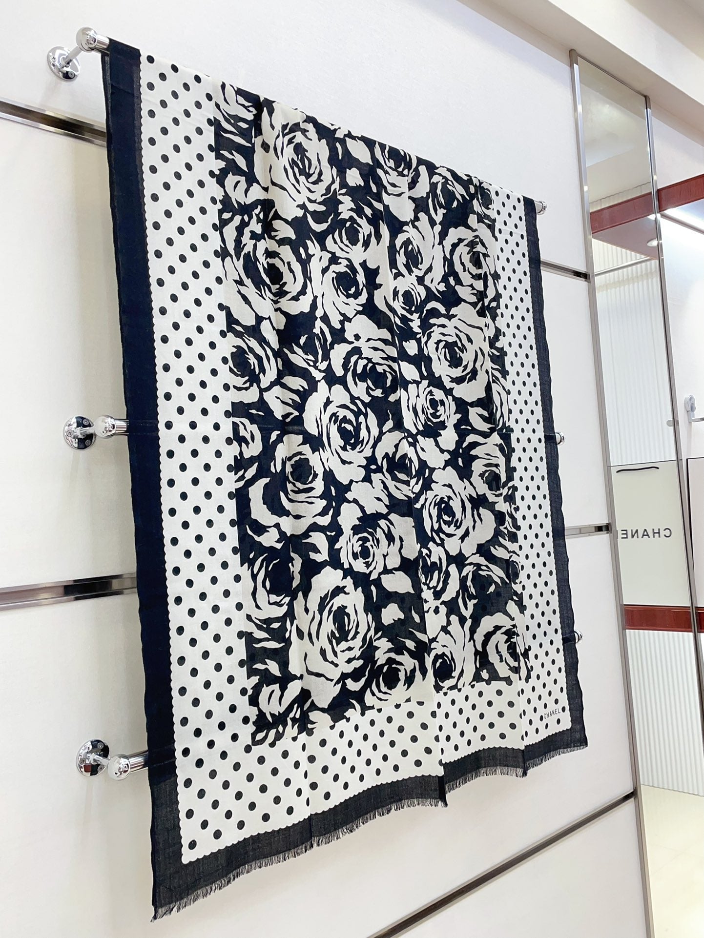 CC 25 Camellia Scarf 140CM Black White Cashmere 293082